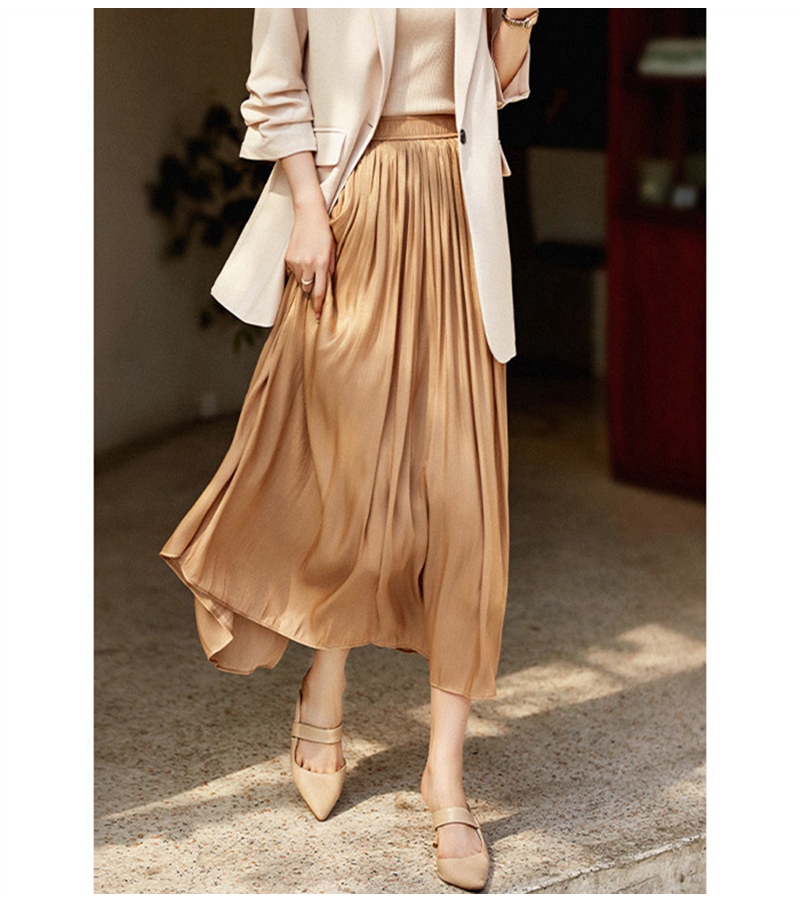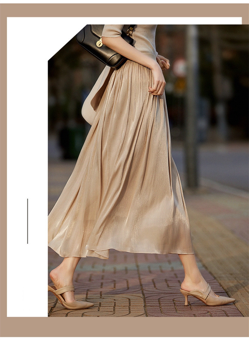 高腰松紧腰立体剪裁大摆百褶半身裙