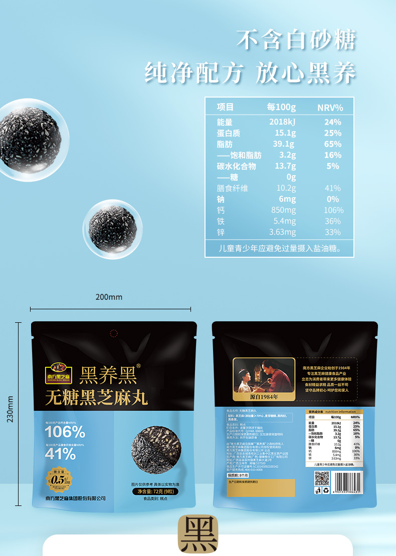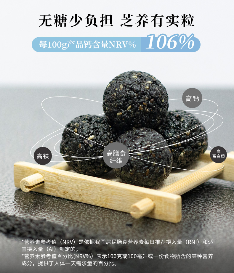 南方黑芝麻黑养黑无糖黑芝麻丸72g 9粒 手工糕点孕妇高钙零食小吃团子