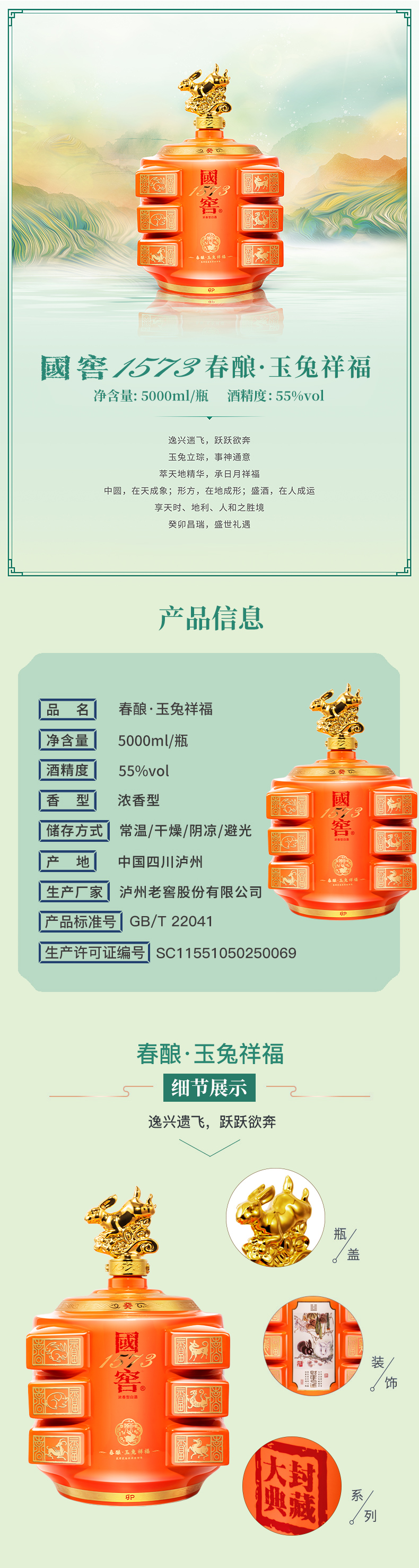 【2023封藏大典】国窖1573 春酿 玉兔祥福 55度5L 泸州老窖官方形象店