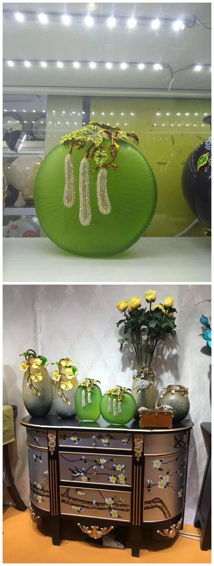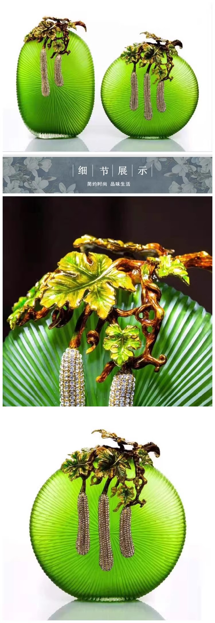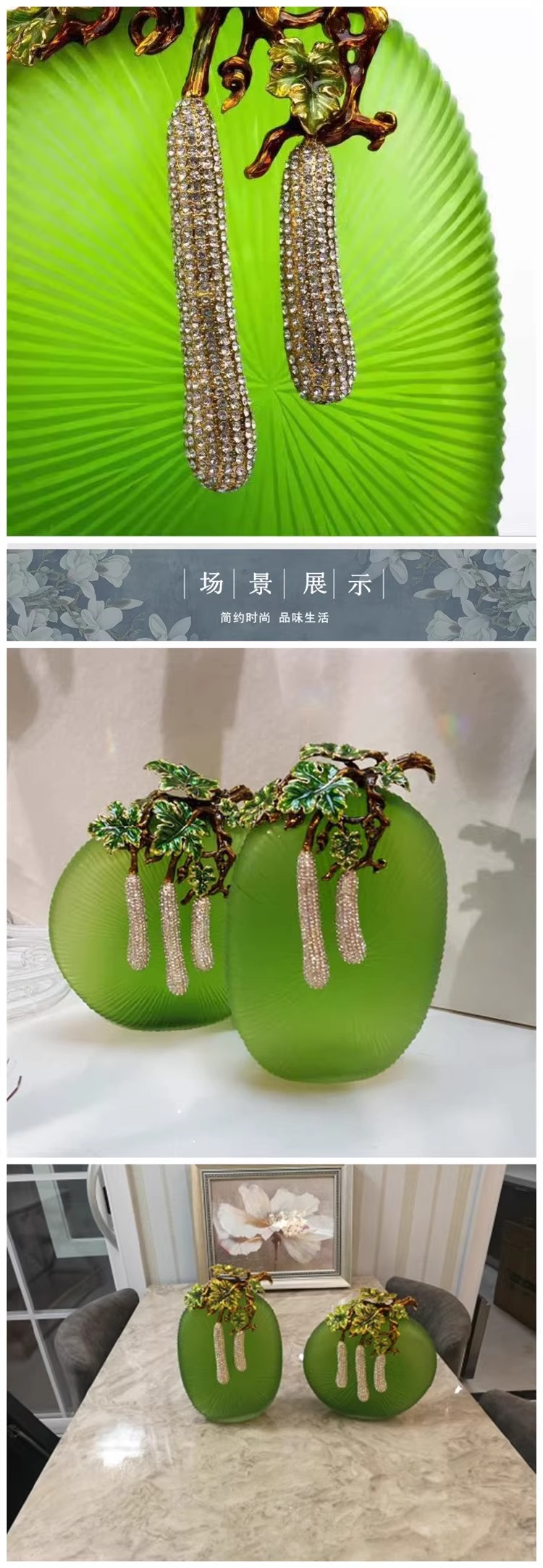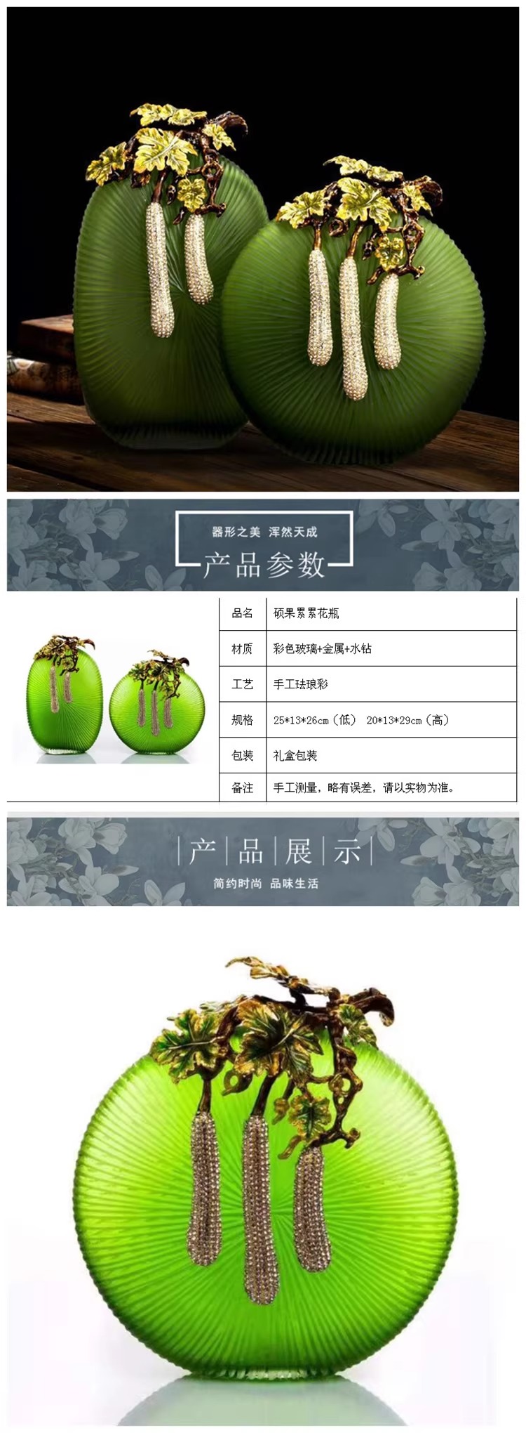 【4折特惠,仅1件,无货退款】新中式轻奢珐琅彩琉璃花瓶摆件高级感客厅玄关边几高端艺术装饰品硕果累累花瓶