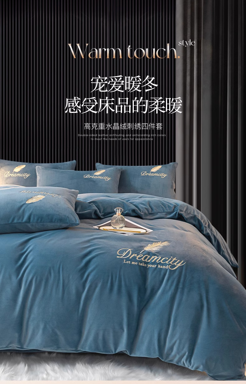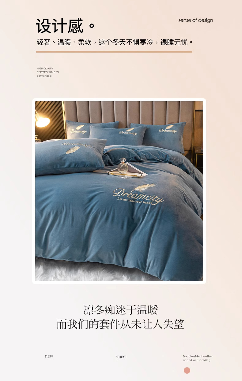 升级加密绒毛 撸猫式柔软体验 冬季加绒牛奶绒床上四件套2025新款高级感珊瑚绒加厚加绒床单被罩