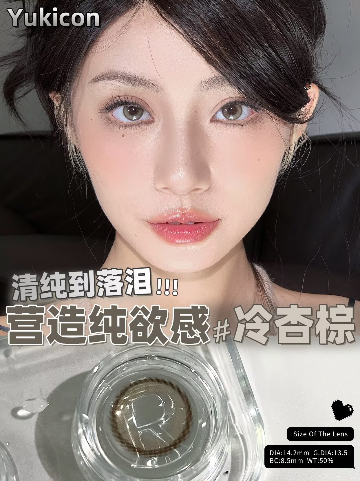 yukicon 冷杏棕 日抛 两片 14.2mm 参考着色13.5mm 基弧8.5 含水50% 新锐国货