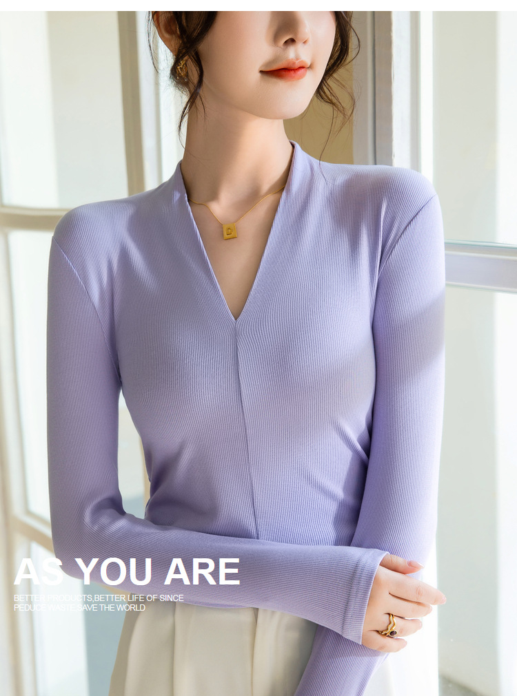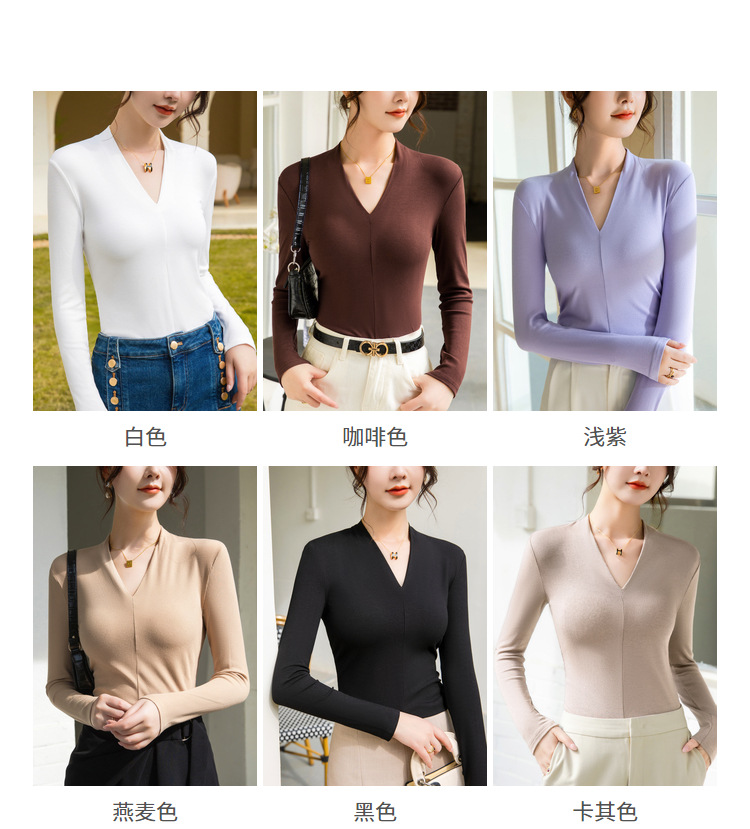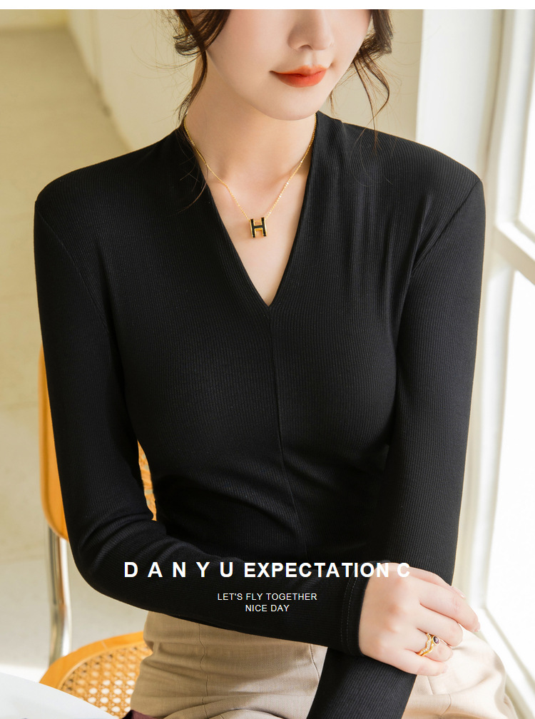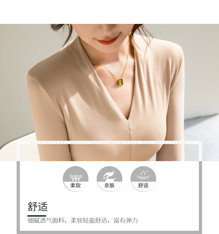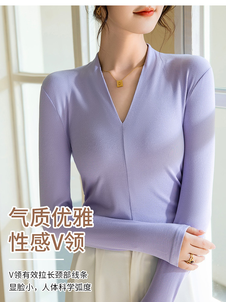 螺纹打底衫女2025新款女装性感深V洋气小衫弹力内搭紧身长袖上衣