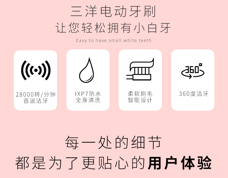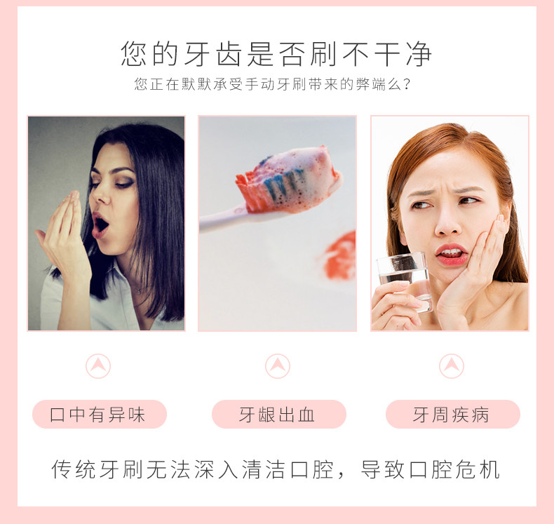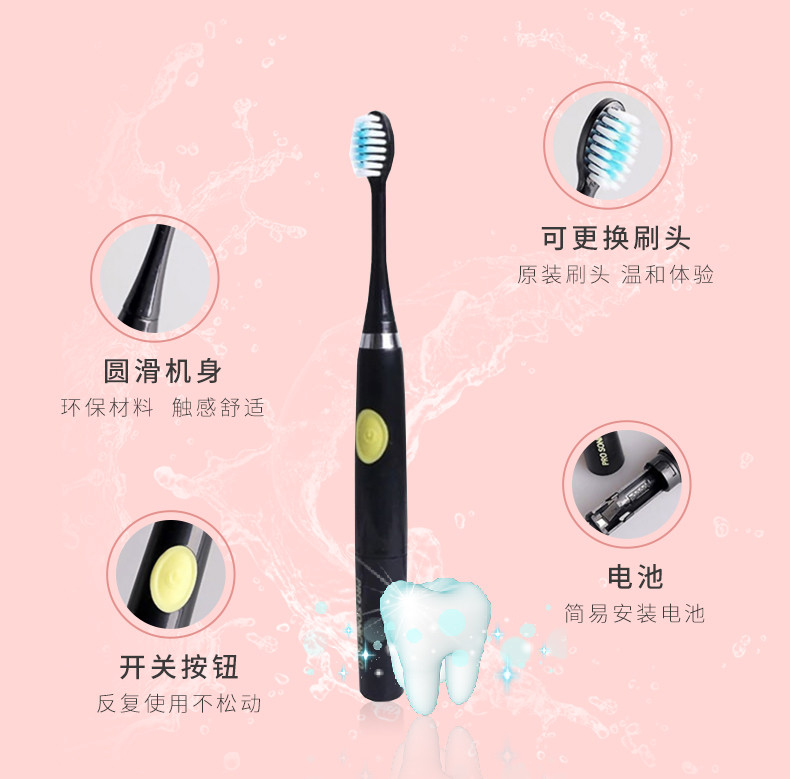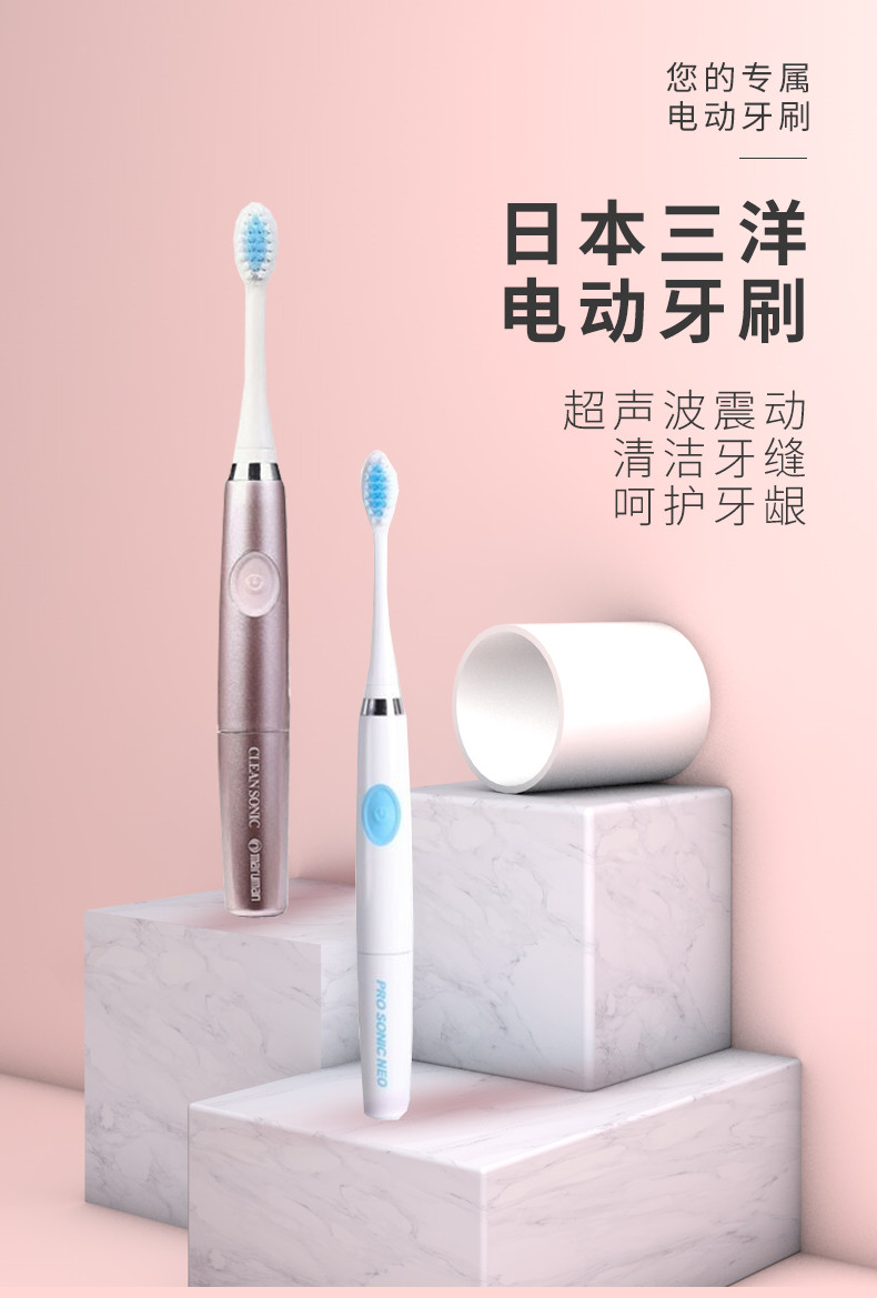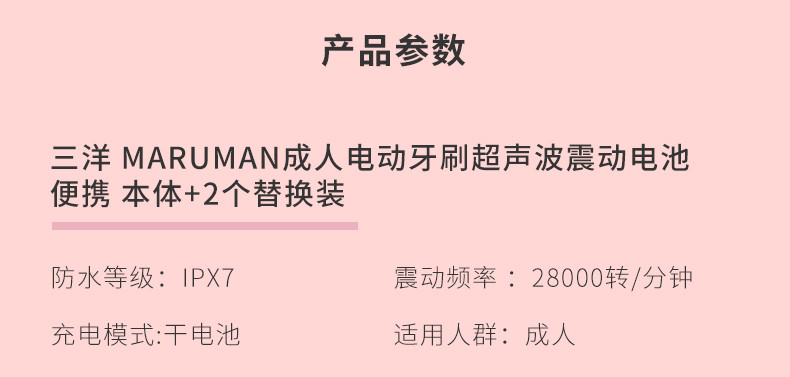 MARUMAN 三洋 成人电动牙刷超声波震动电池便携 本体+2个替换装 玫瑰金 日本