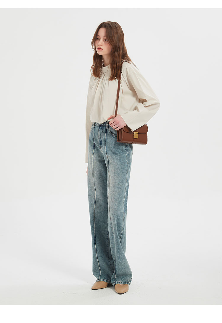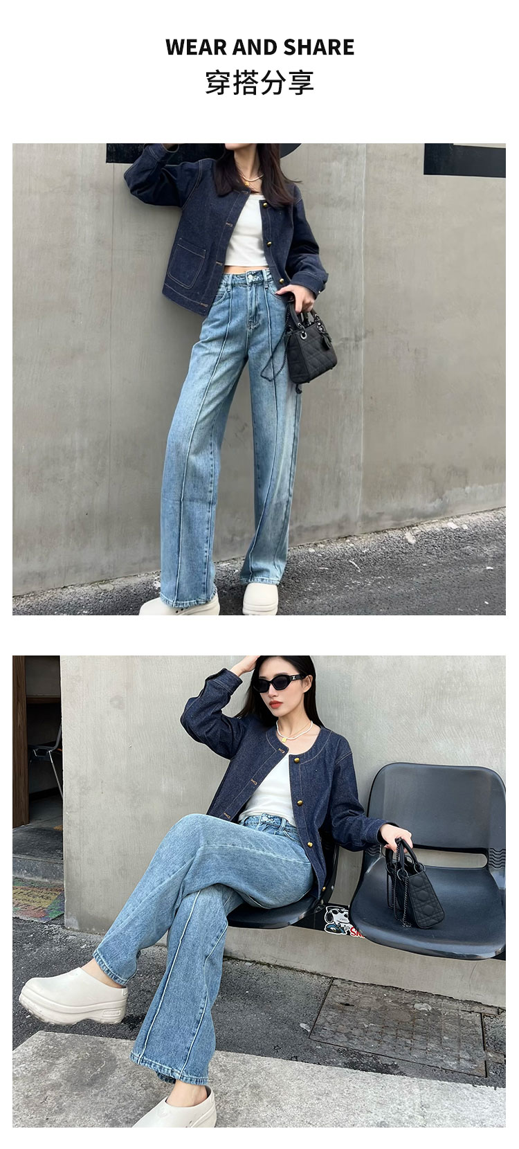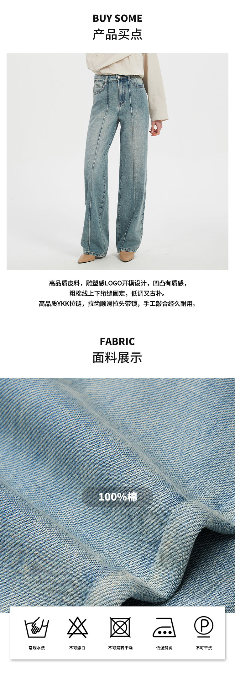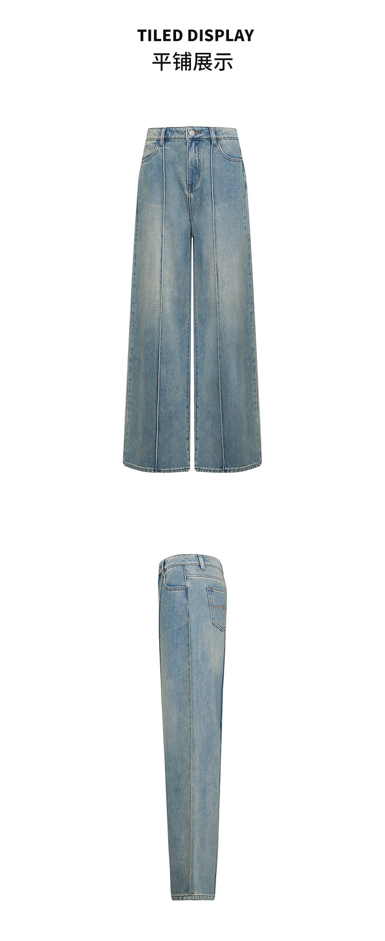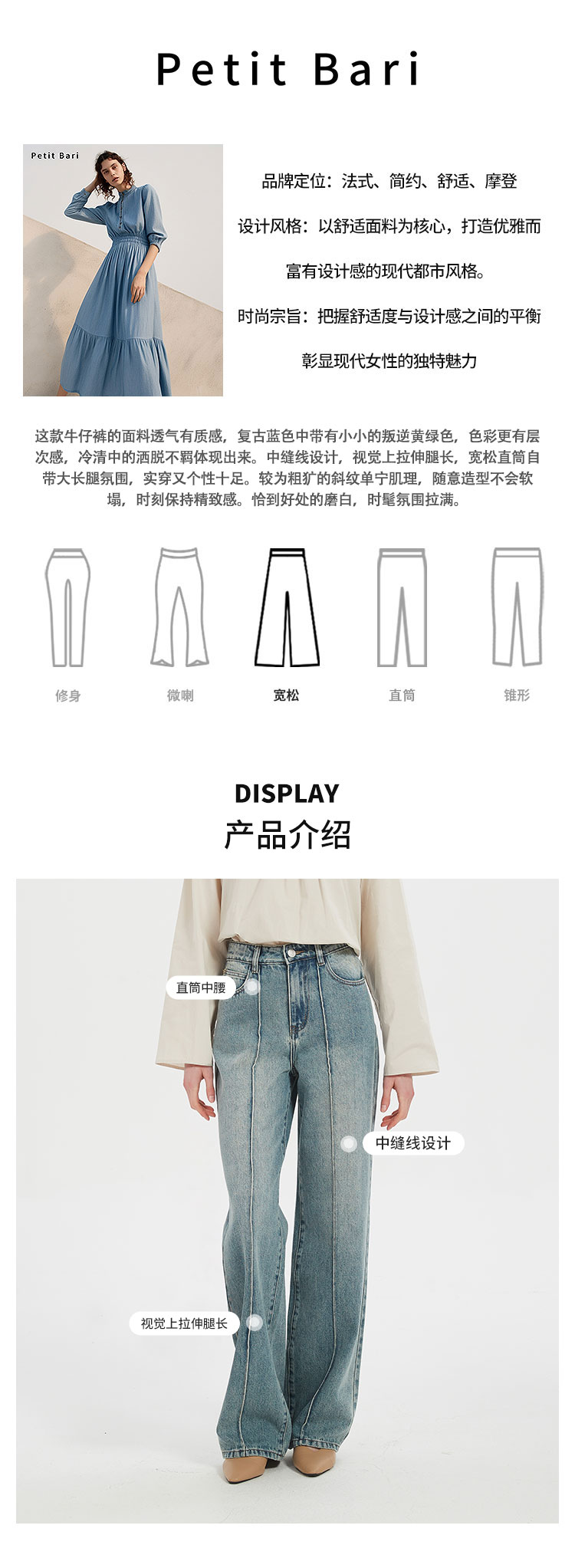 【2件9折】【Petit Bari】设计感线条水洗女士牛仔长裤设计感水洗浅色