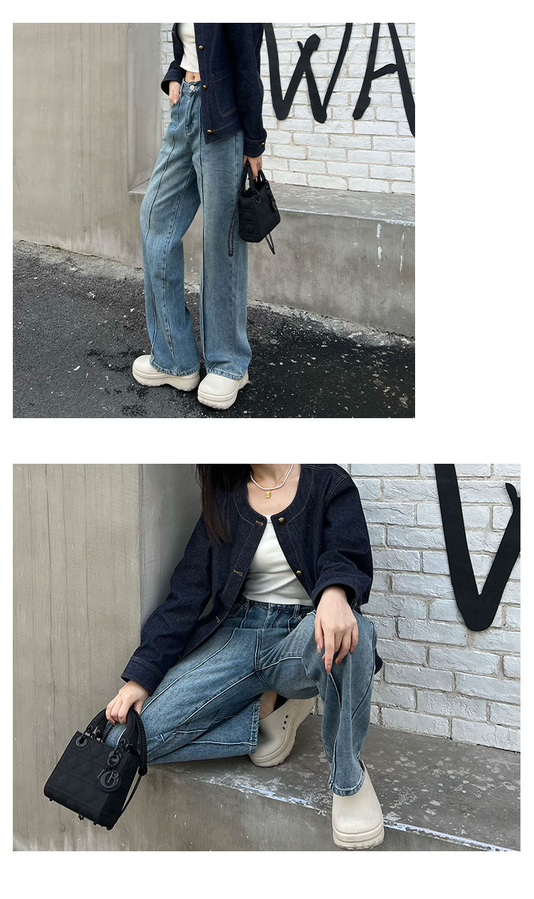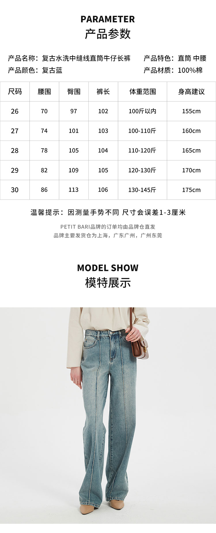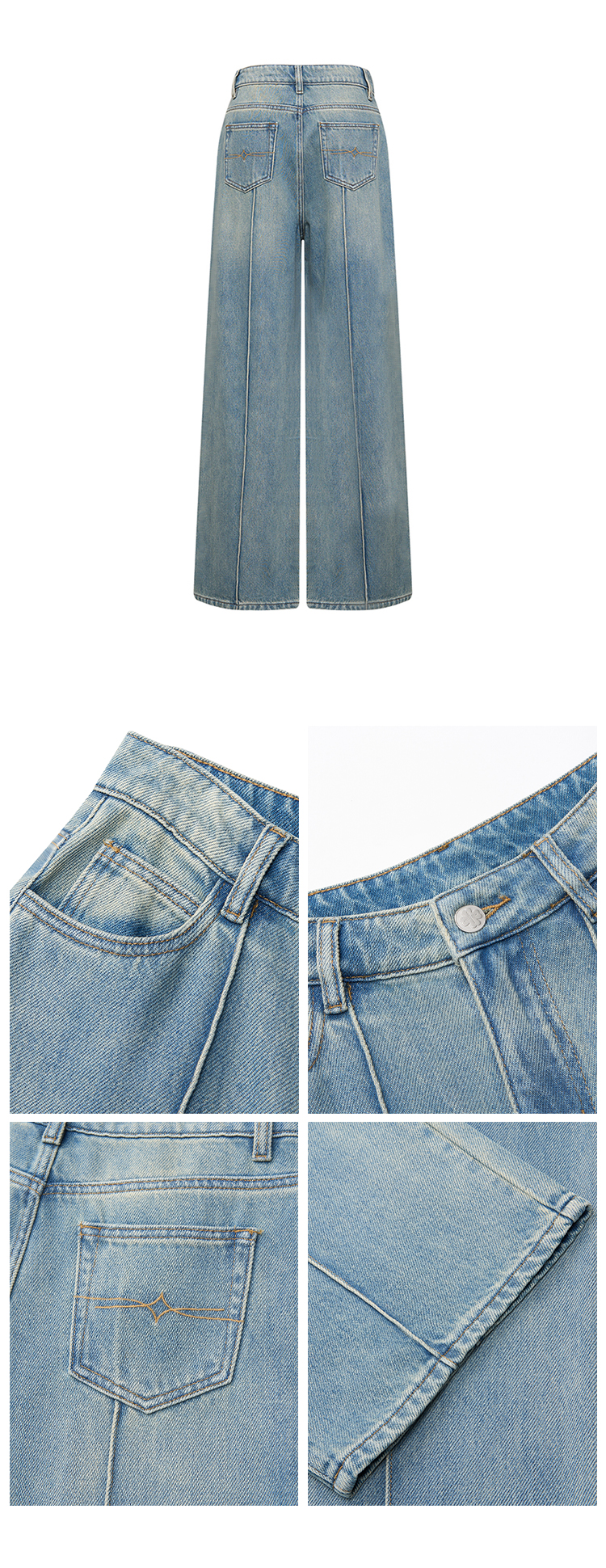 【2件9折】【Petit Bari】复古水洗中缝线直筒牛仔长裤(水洗产品)