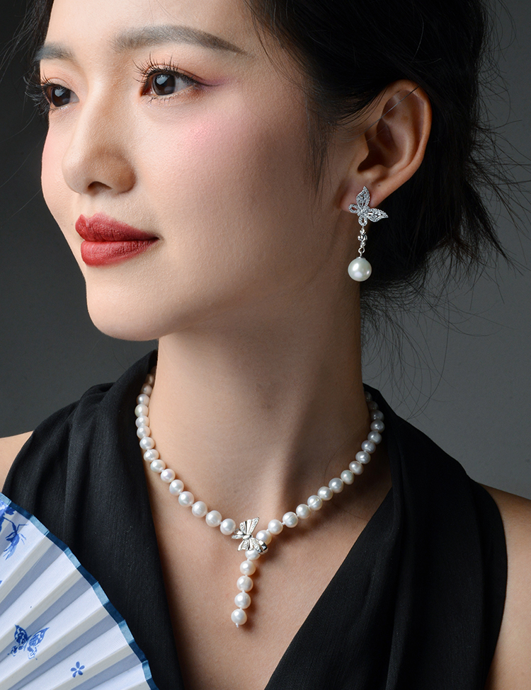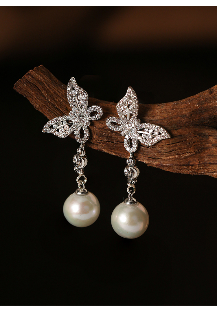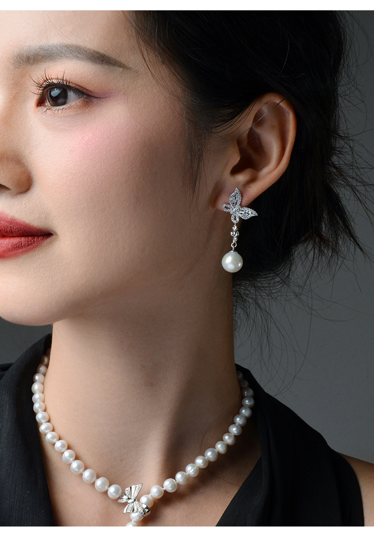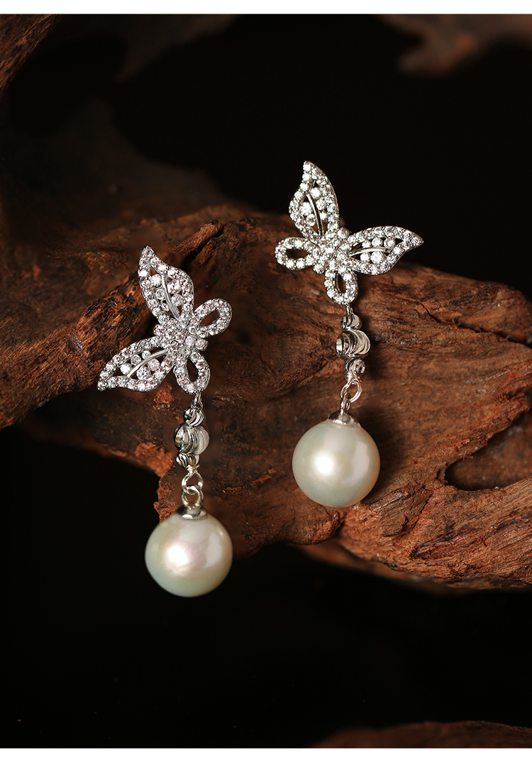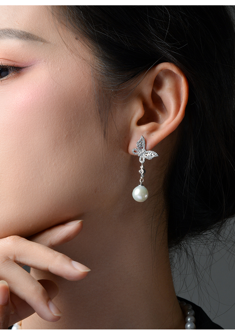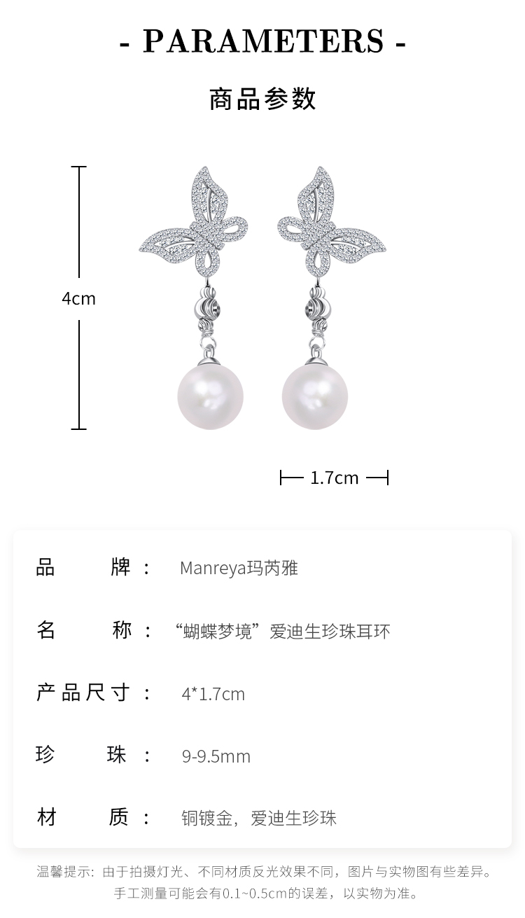 Manreya玛芮雅蝴蝶梦境爱迪生珍珠耳环气质简约百搭珍珠耳钉