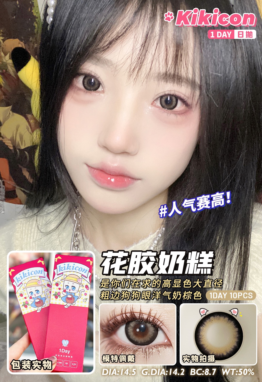 【大直径日抛和半年抛双版本】花胶奶糕 KikiCon | 大直径14.5,着色14.2 |【一盒10片,多盒购买更划算,选款色板在详情页!】,粗黑边混血美瞳、梦玲同款、半年抛是doriscon品牌