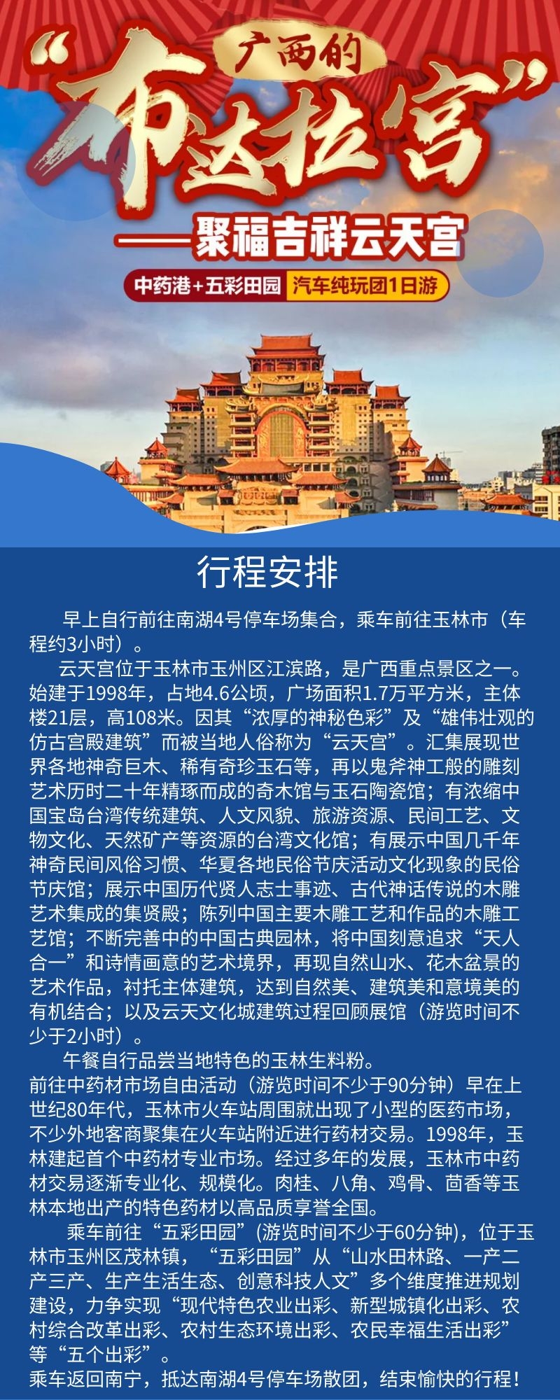 广西玉林云天宫、中药港、五彩田园一日游 南宁出发 纯玩团 含门票