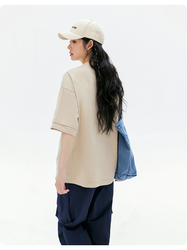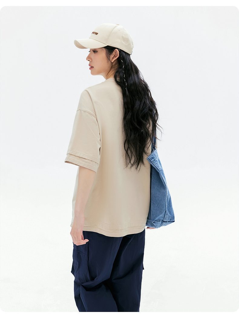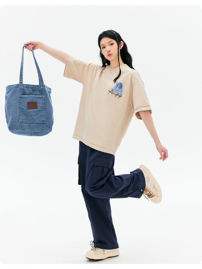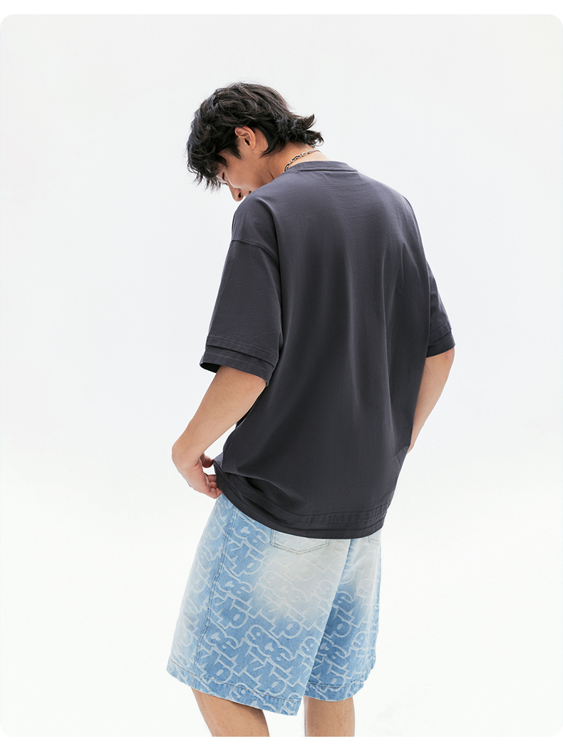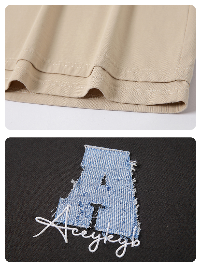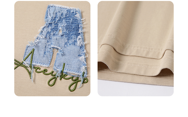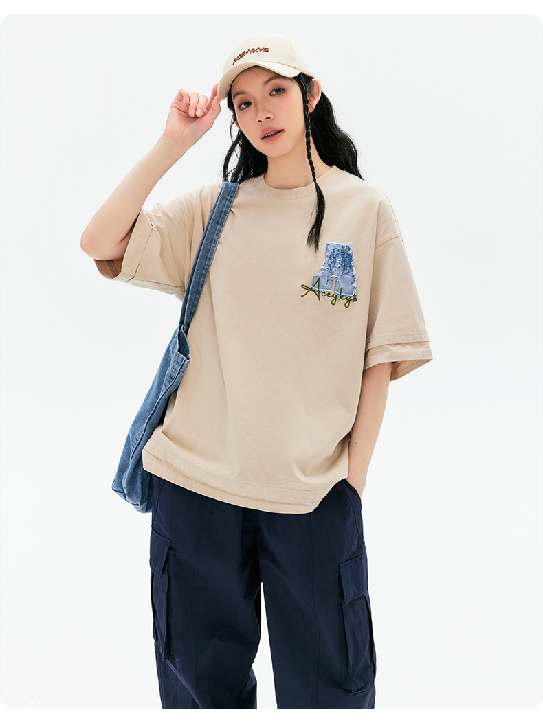 ACEYKYB黄子韬假两件T恤男女2025夏季新款复古牛仔贴布绣短袖中性