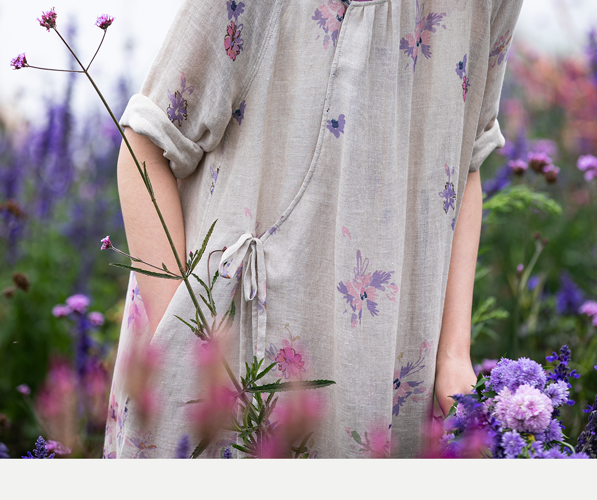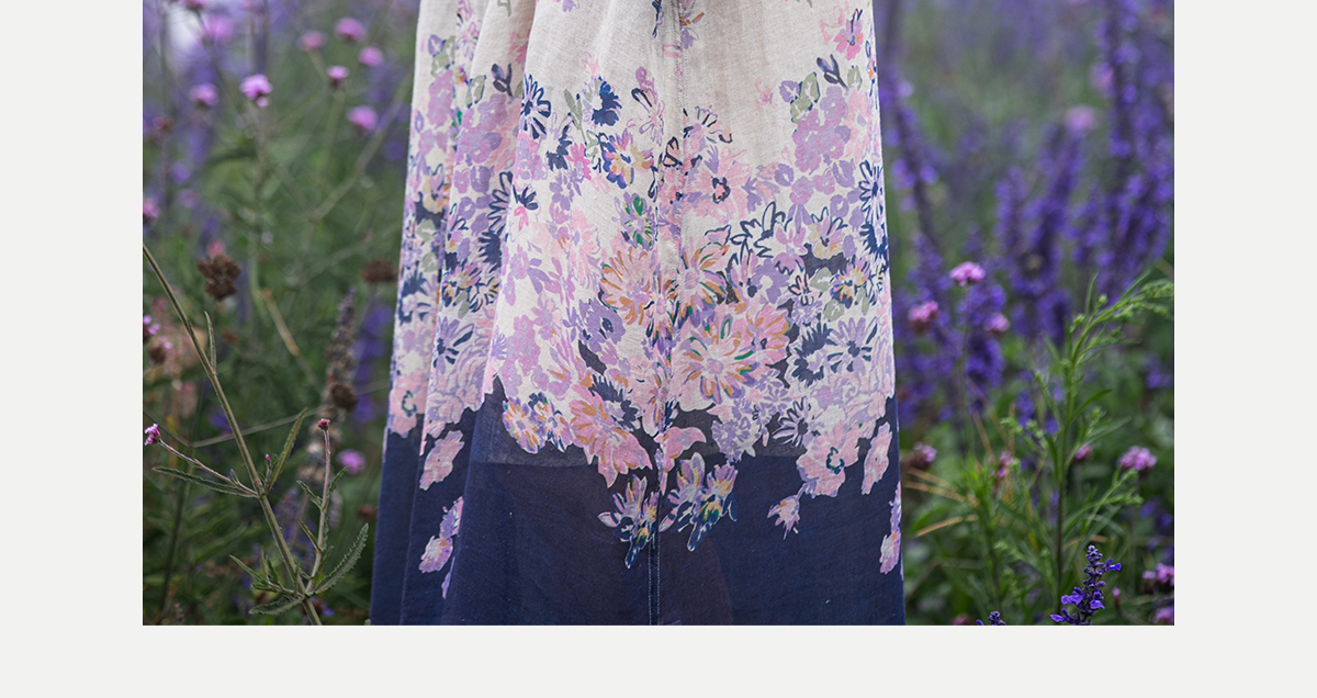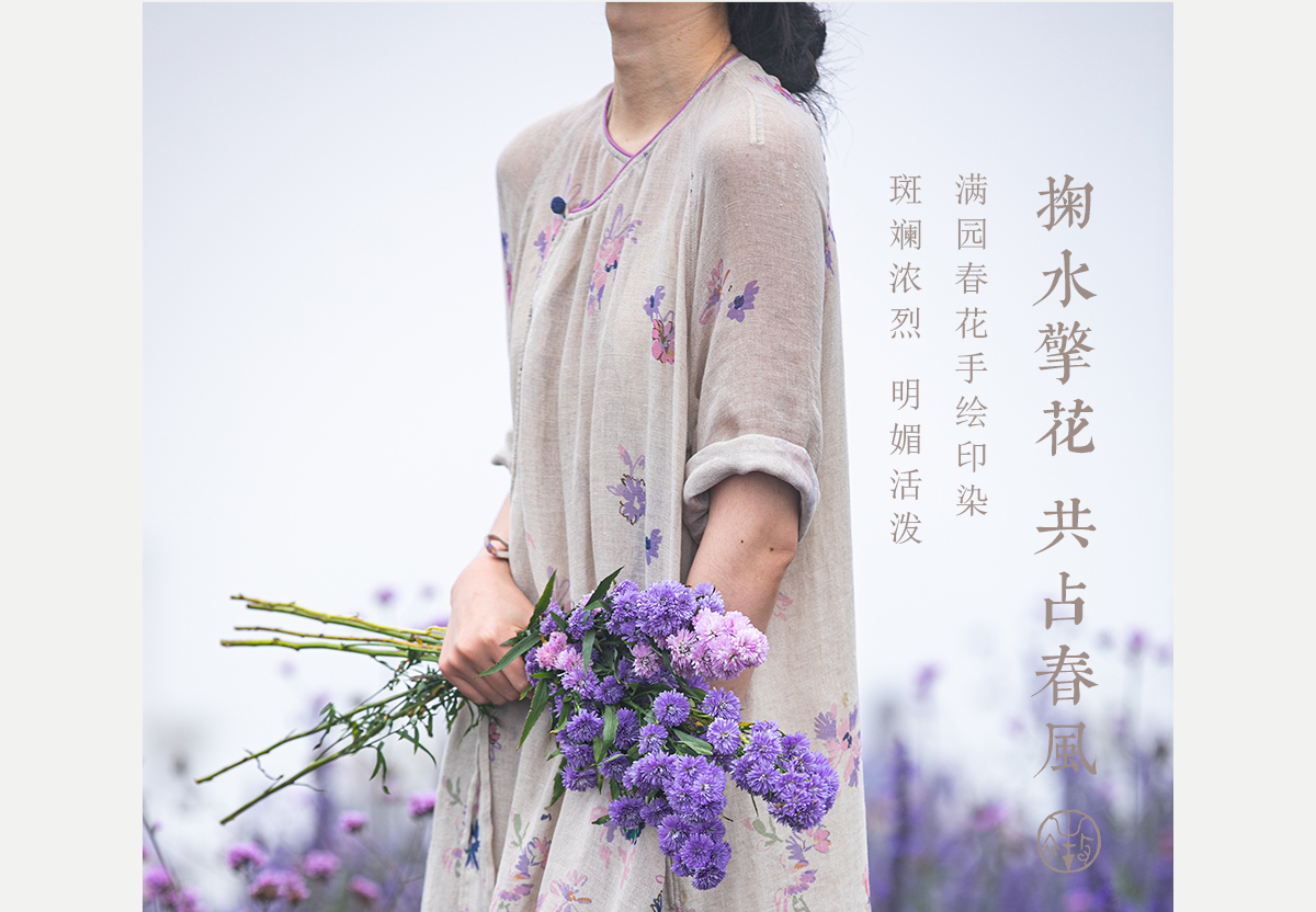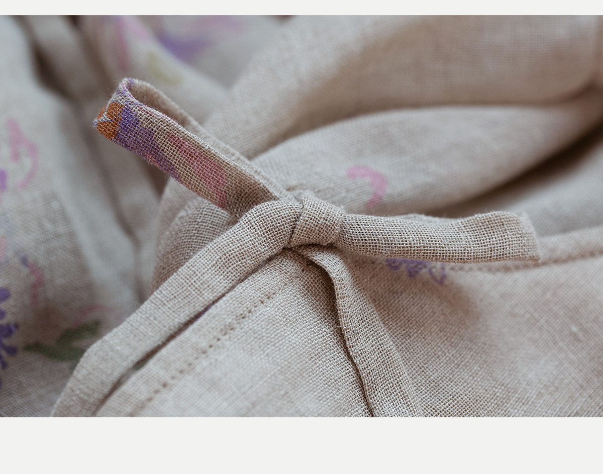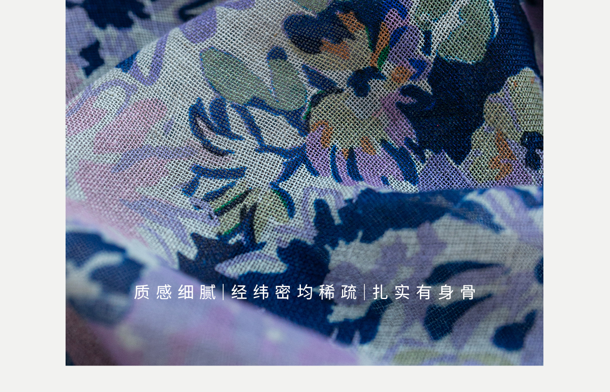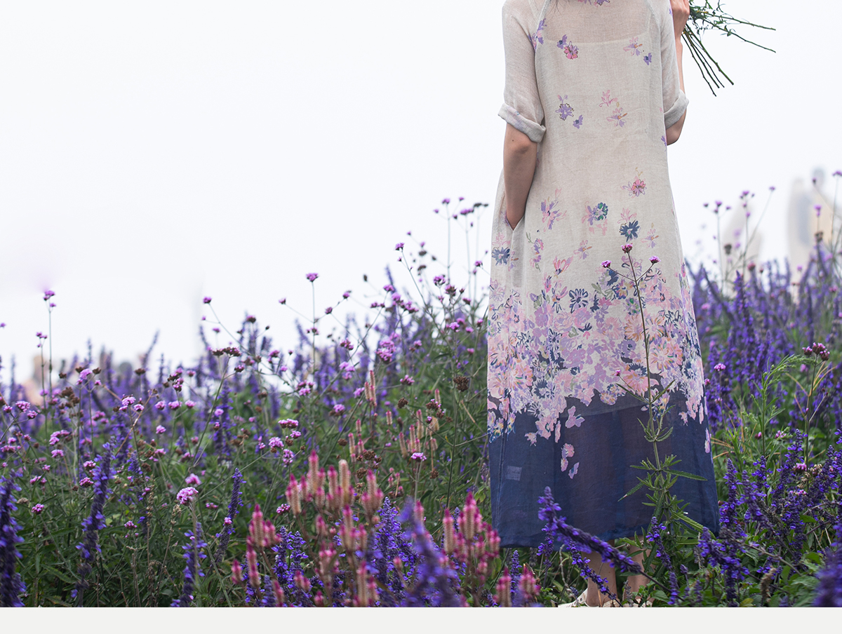 牧衣游原创 印花进口麻连衣裙女春季新款禅意复古新中式长裙 前雪