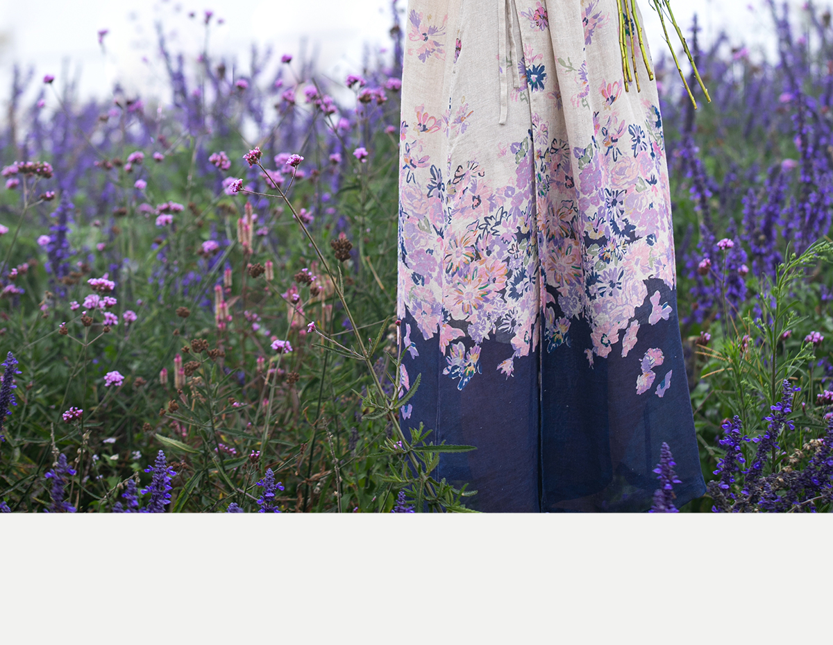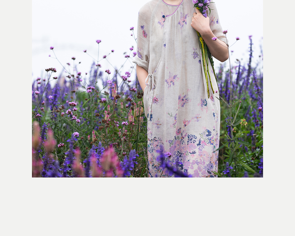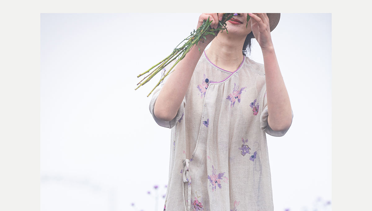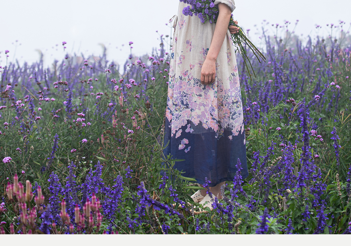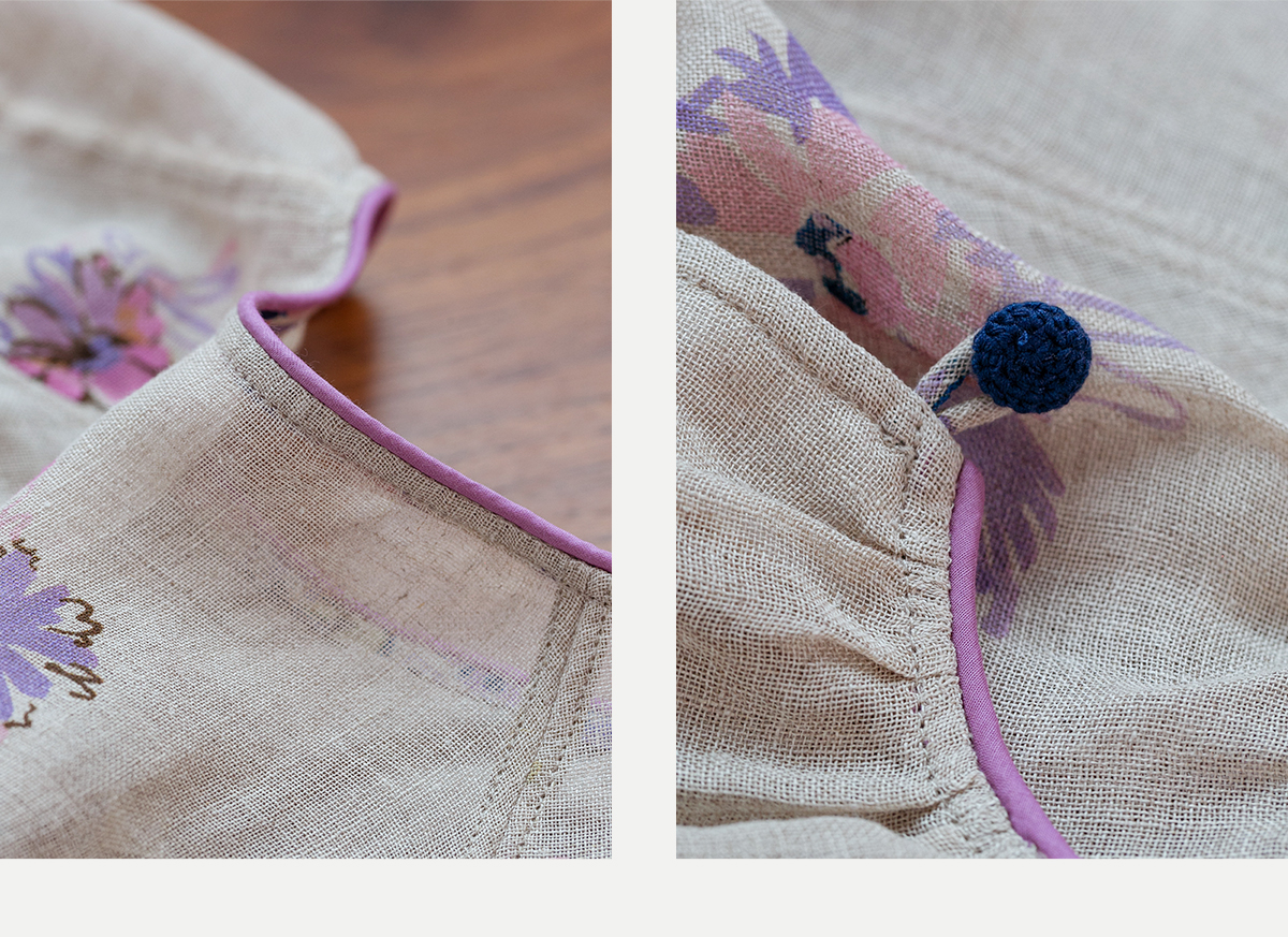 牧衣游原创 印花进口麻连衣裙女春季新款禅意复古新中式长裙 前雪