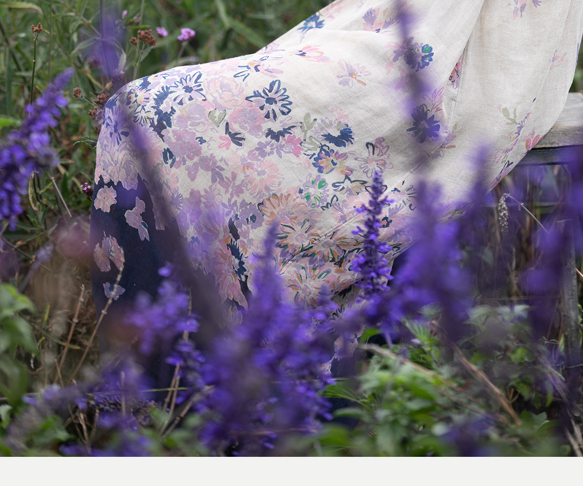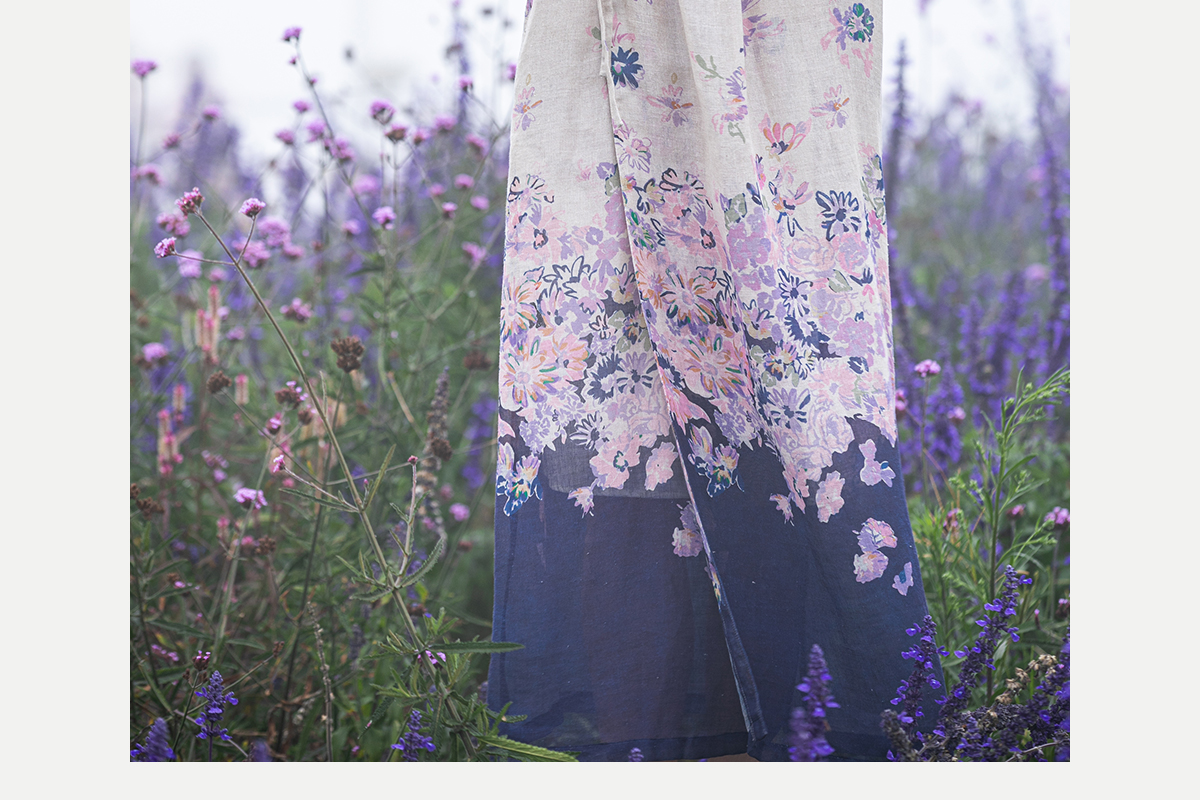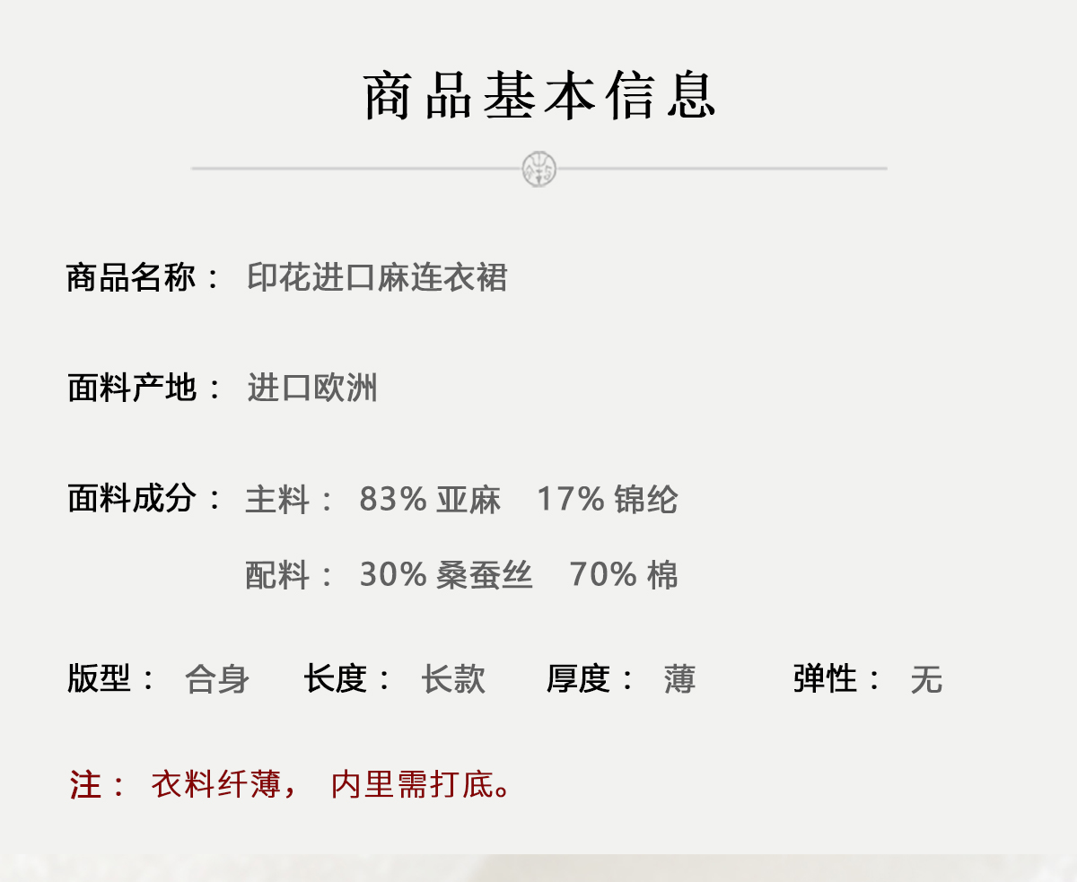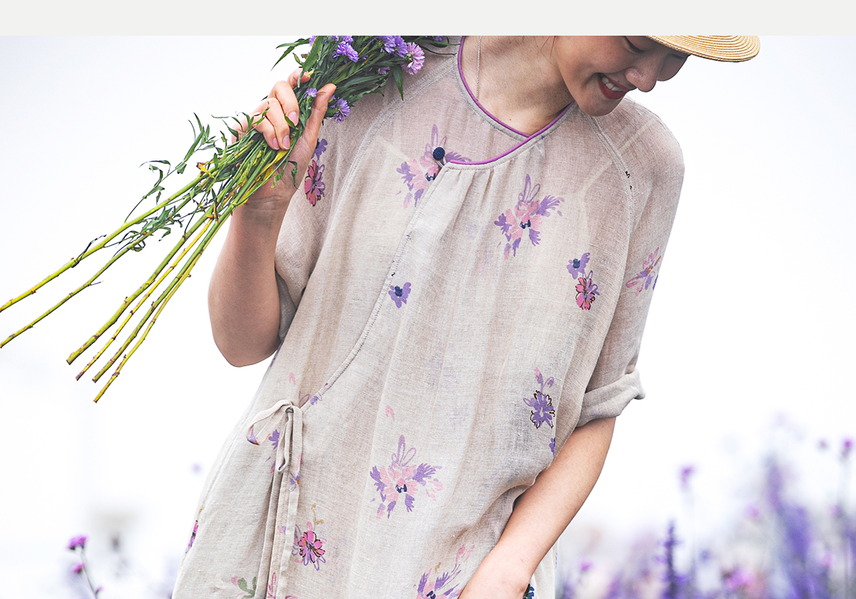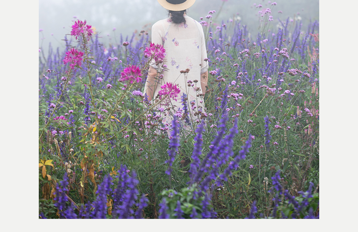 牧衣游原创 印花进口麻连衣裙女春季新款禅意复古新中式长裙 前雪
