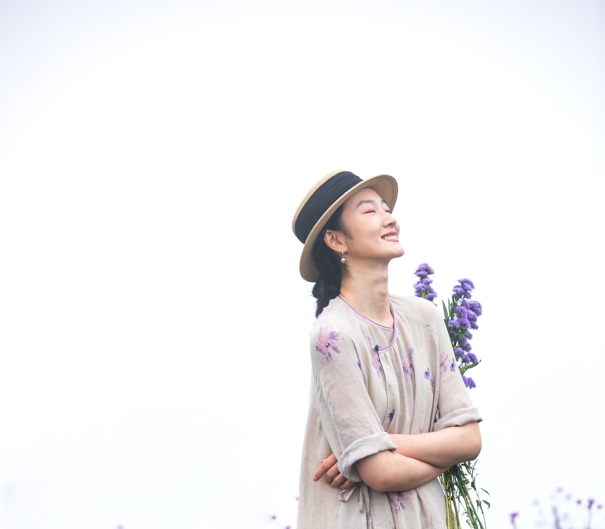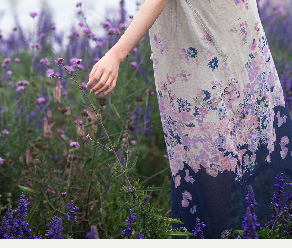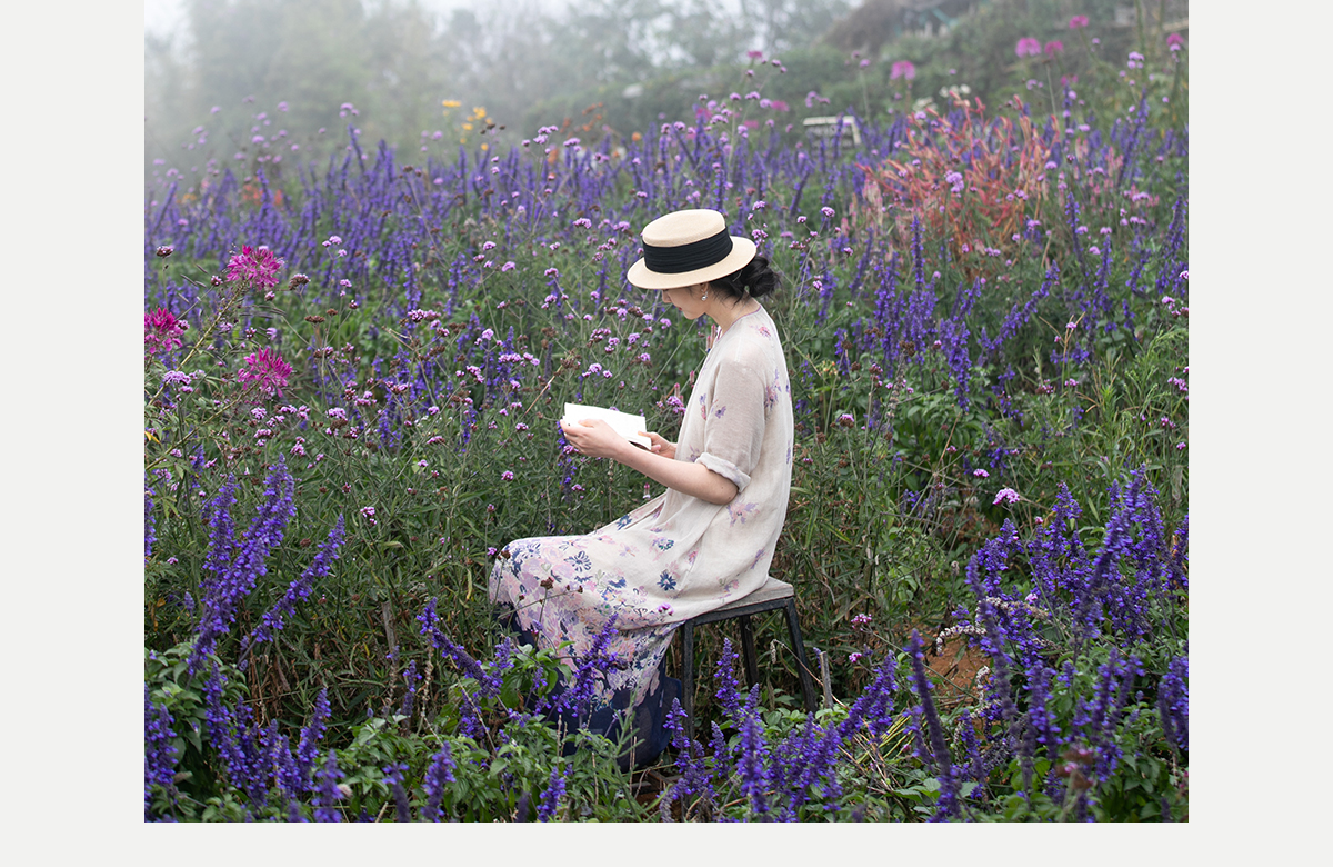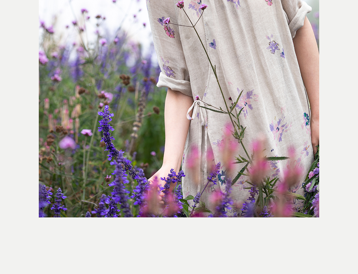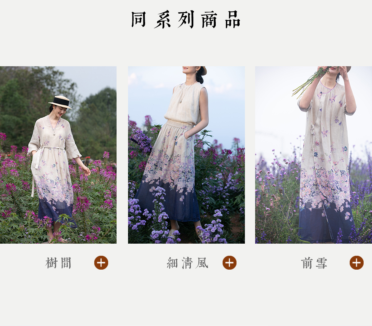 牧衣游原创 印花进口麻连衣裙女春季新款禅意复古新中式长裙 前雪