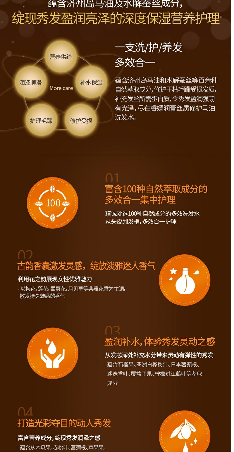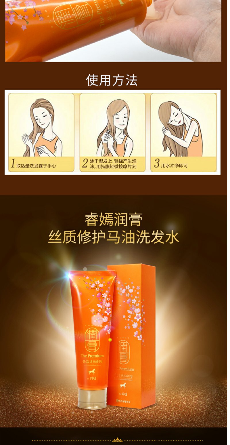睿嫣润膏丝质马油洗发水250ml洗护二合一修护干枯受损韩国正品