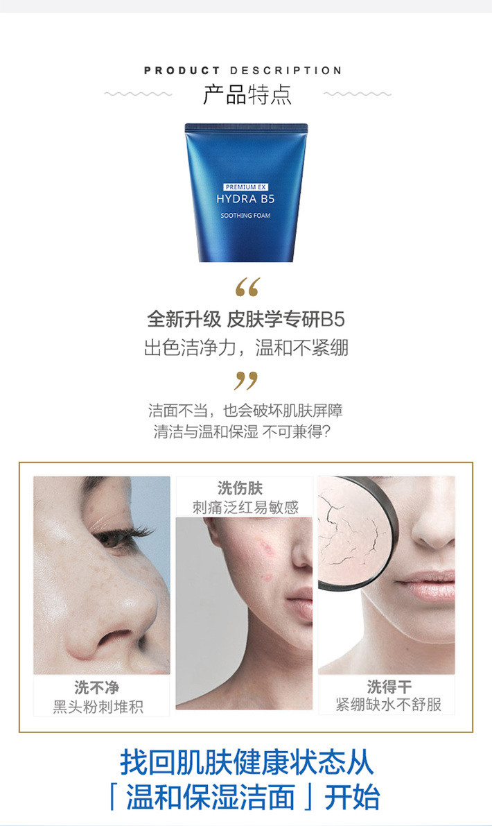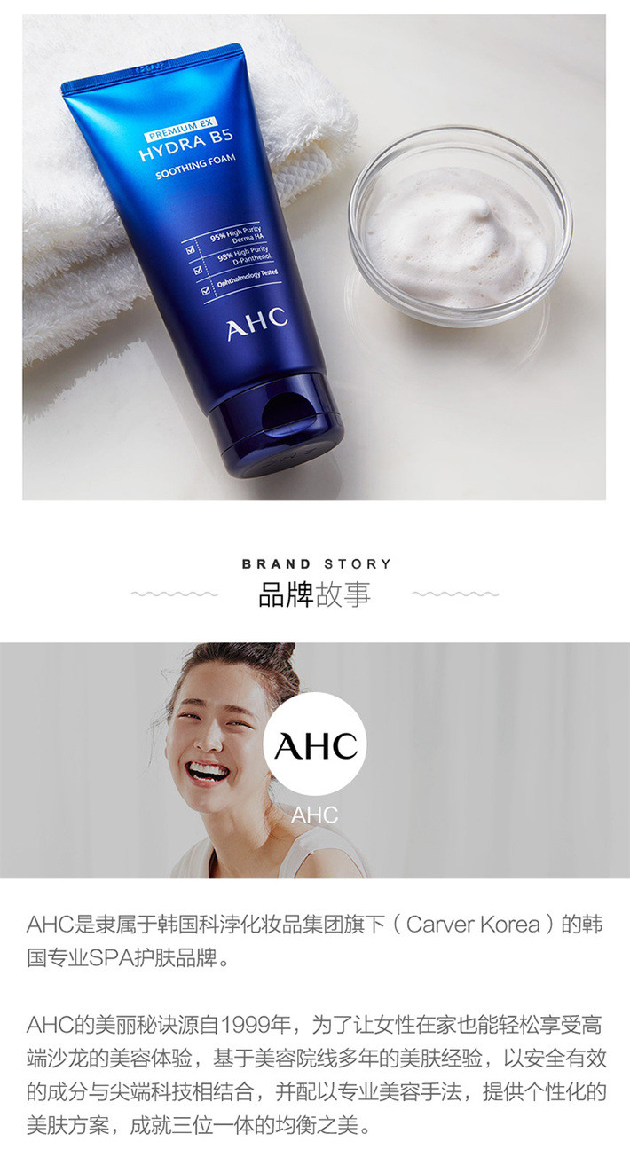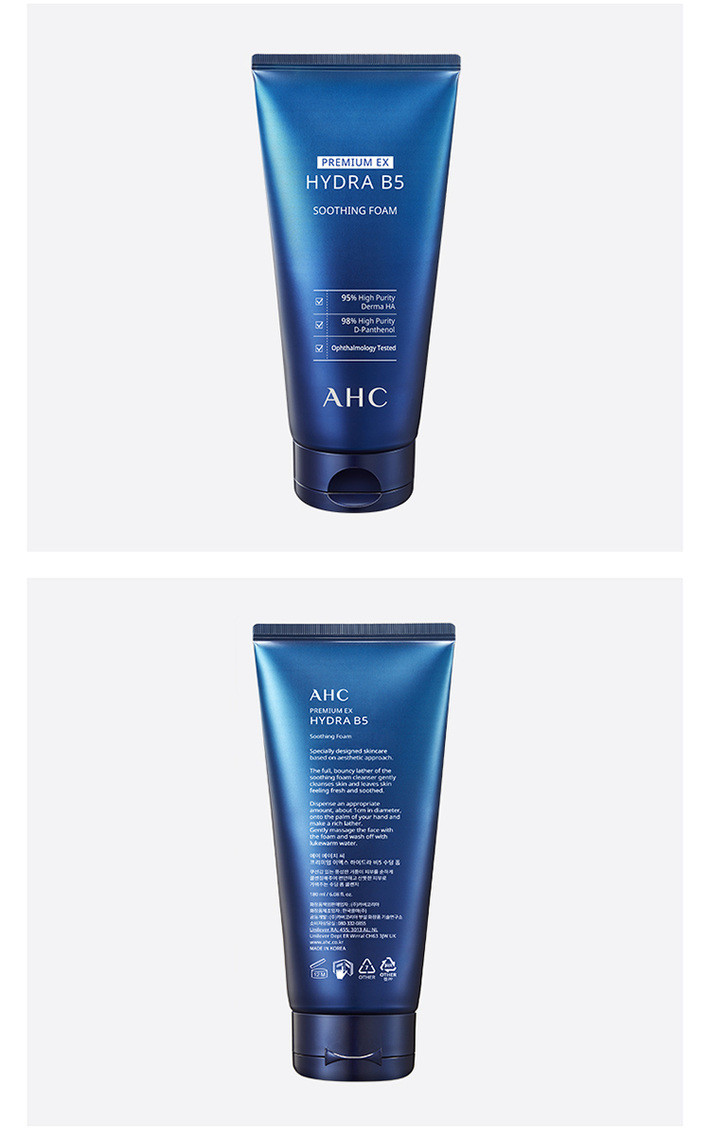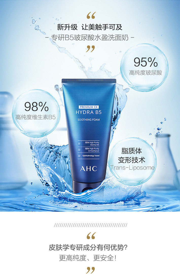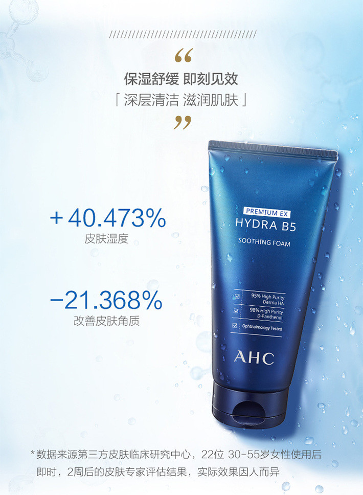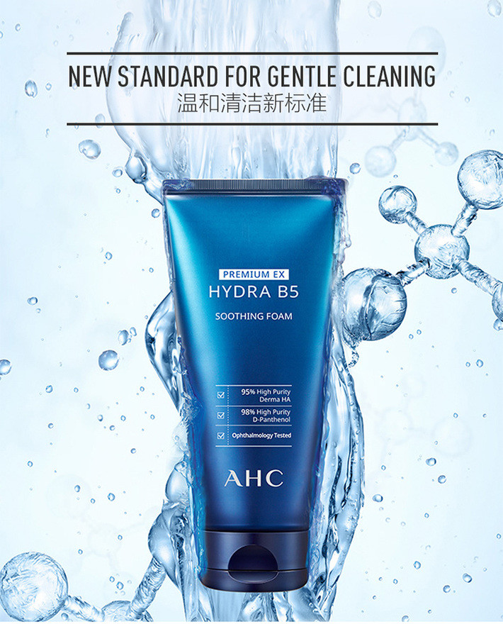 AHC B5EX蓝啵啵玻尿酸水盈洗面奶洁面乳 180毫升 卓越清洁力温和不紧绷