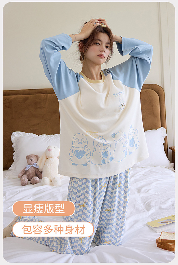 2025新款带胸垫睡衣女士套头长袖卡通可爱春秋季两件套装冬家居服 商品图4