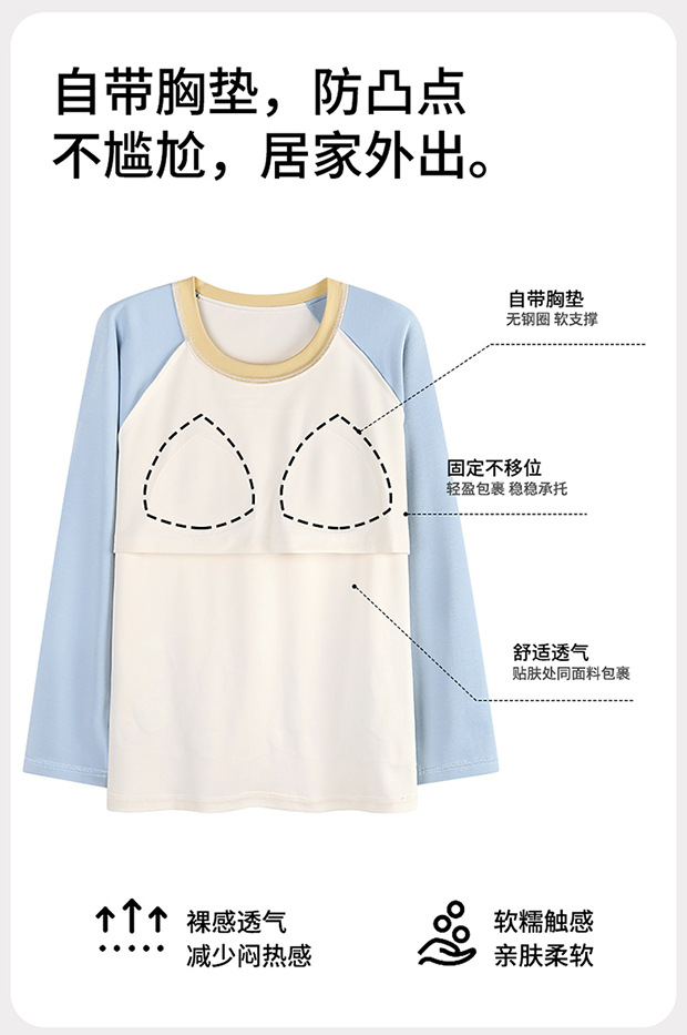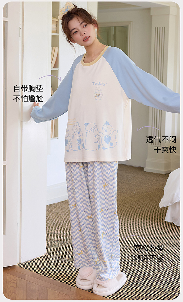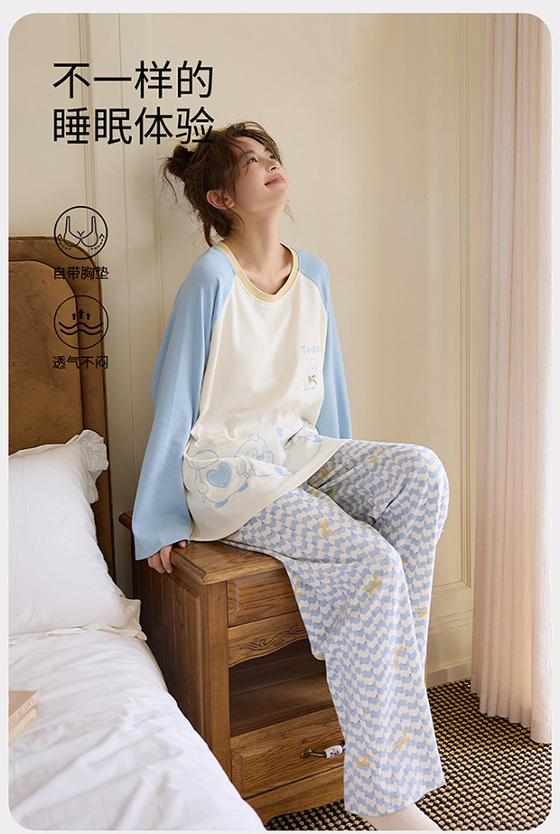 2025新款带胸垫睡衣女士套头长袖卡通可爱春秋季两件套装冬家居服 商品图0