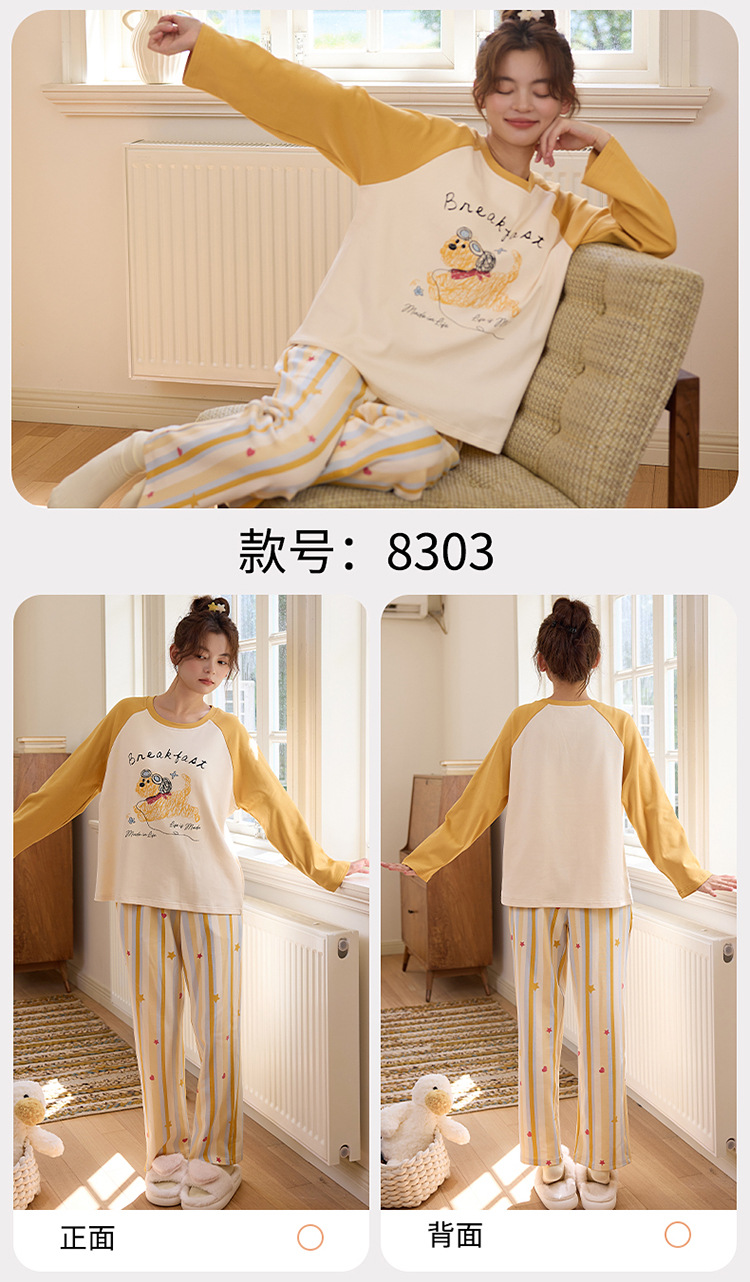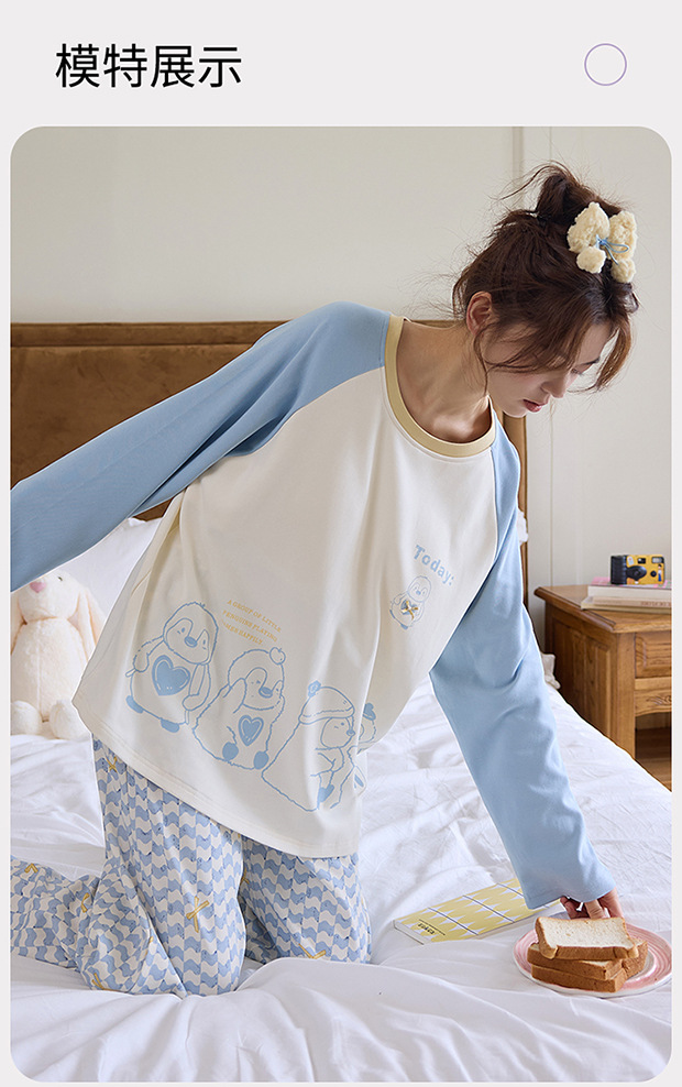 2025新款带胸垫睡衣女士套头长袖卡通可爱春秋季两件套装冬家居服 商品图7