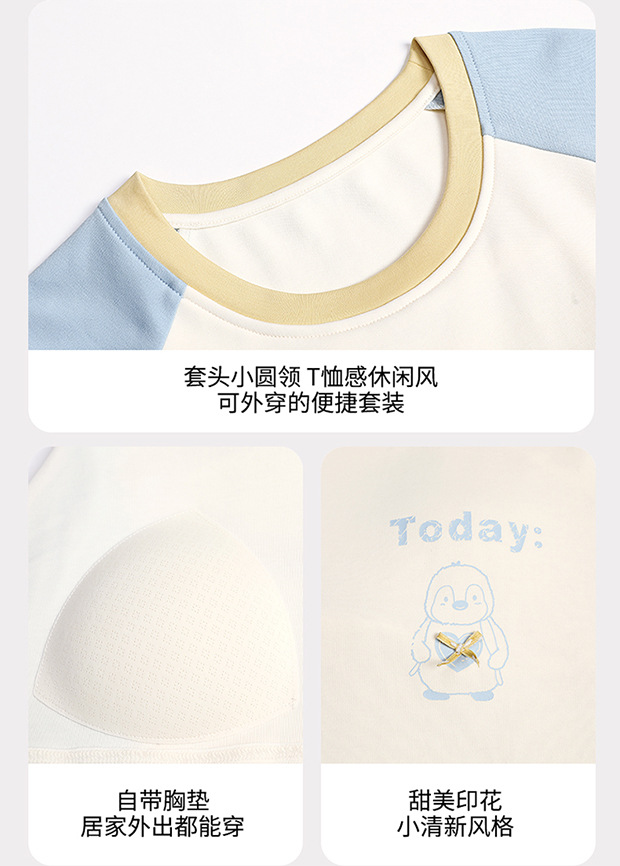 2025新款带胸垫睡衣女士套头长袖卡通可爱春秋季两件套装冬家居服 商品图2