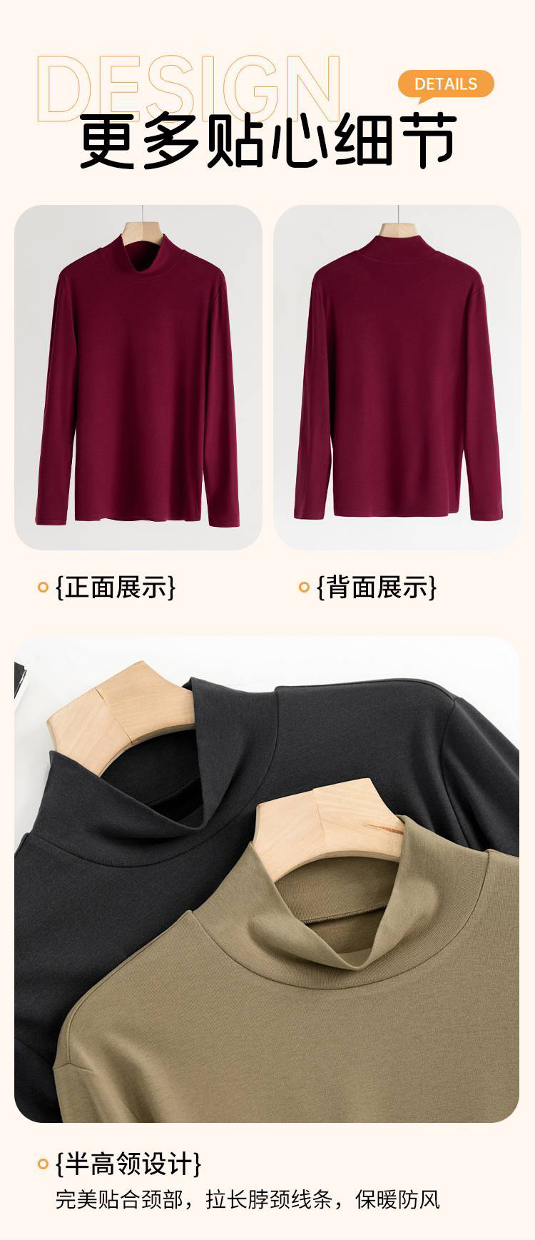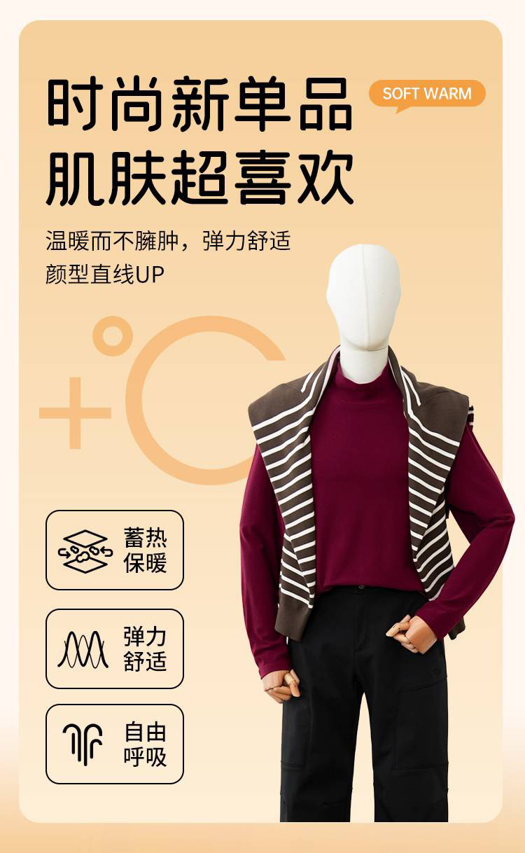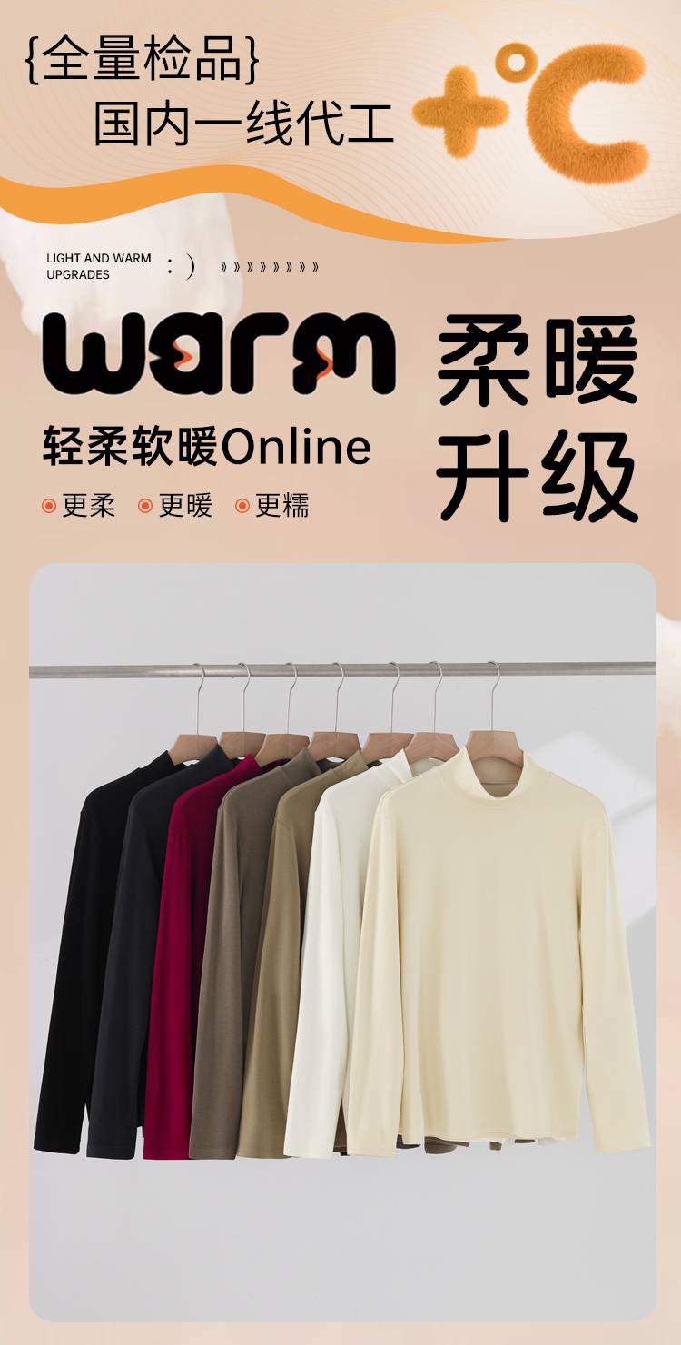 德绒男士6.0版软糯亲肤保暖高弹半高领长袖打底衫