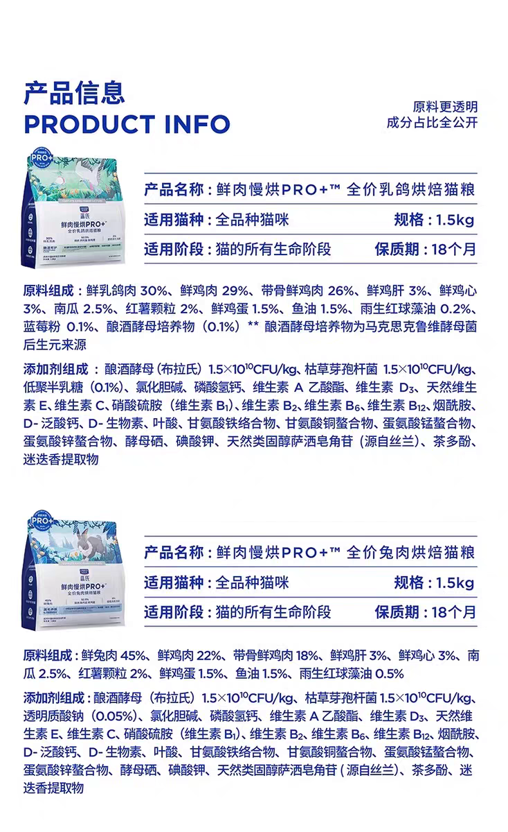蓝氏 烘焙猫粮pro+ 乳鸽口味1.5kg/包