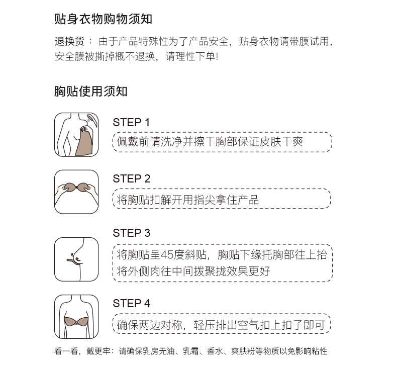 提示!由于胸贴是贴身物品,暂不支持7天无理由退换货