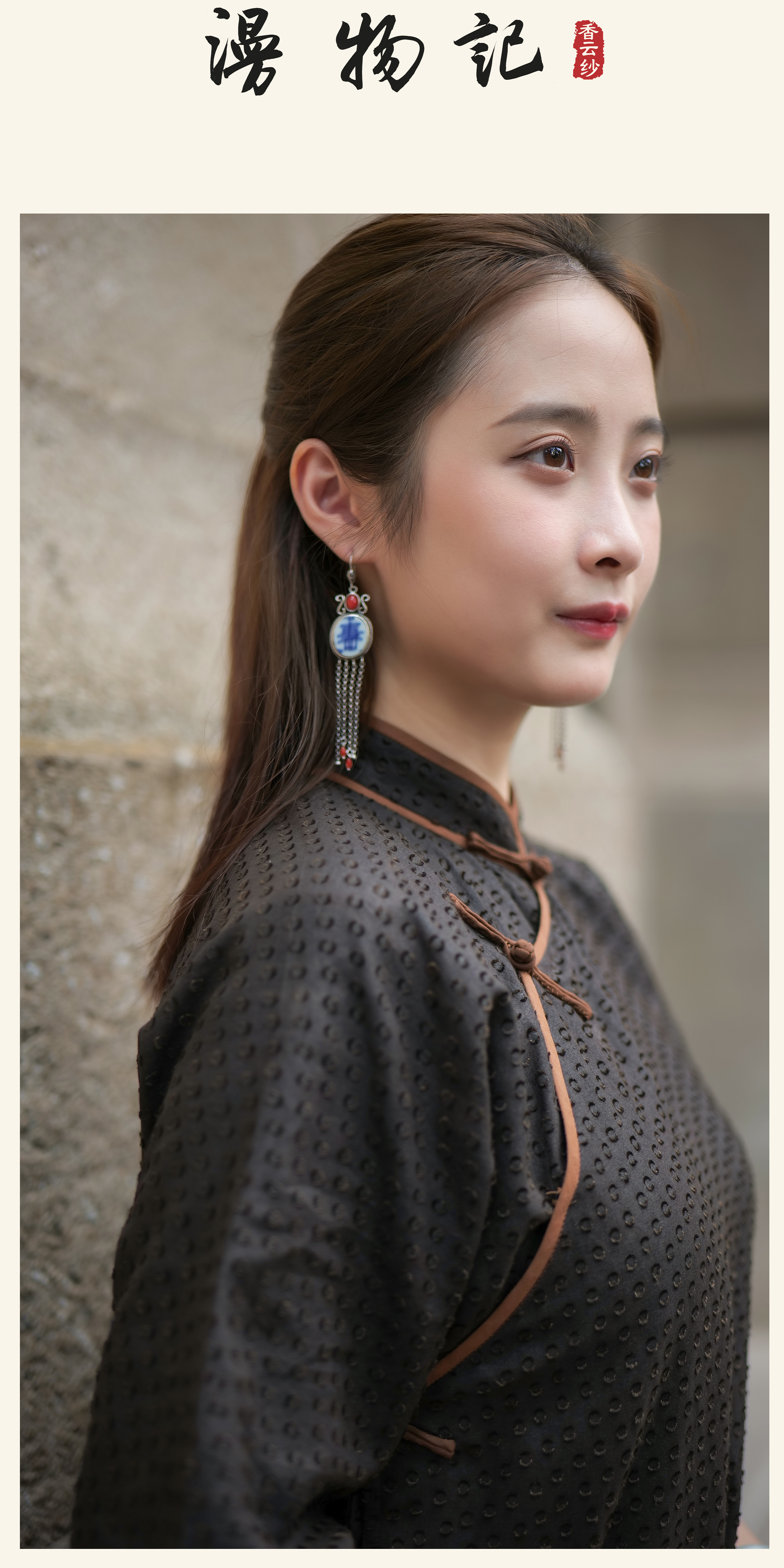 漫物记菱花喇叭袖连肩旗袍XYS-W248
