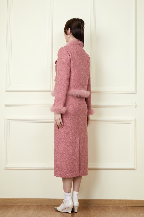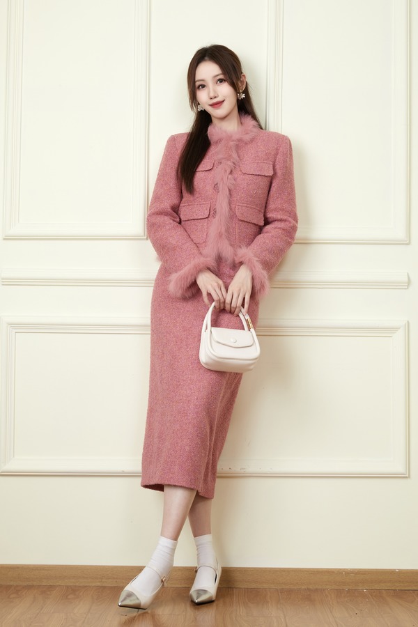 Le Malene 粉色小香风毛绒边羊毛羽绒套装 19817