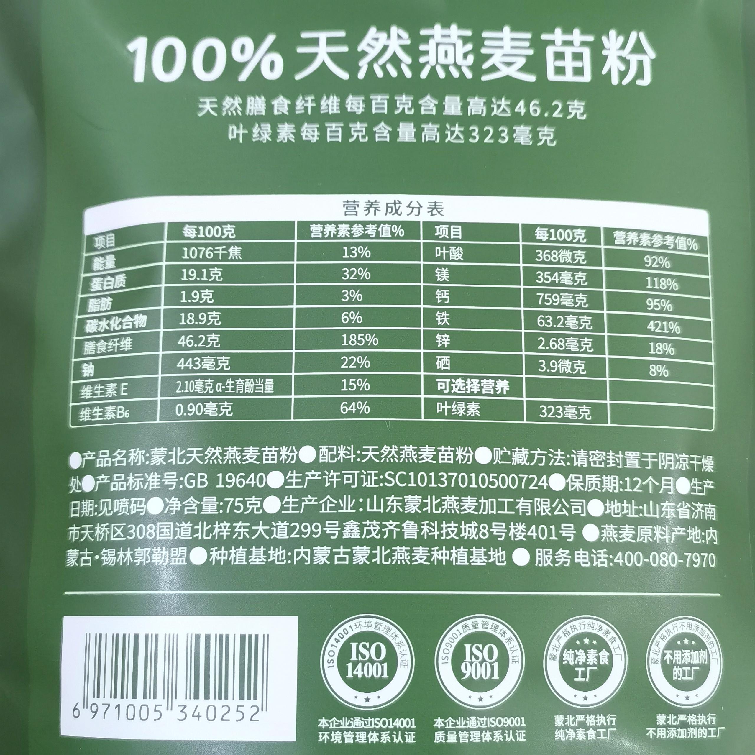 蒙北天然燕麦苗粉 饱腹营养冲饮独立小包装75g(25小包*3g)【京东快递送货上门】