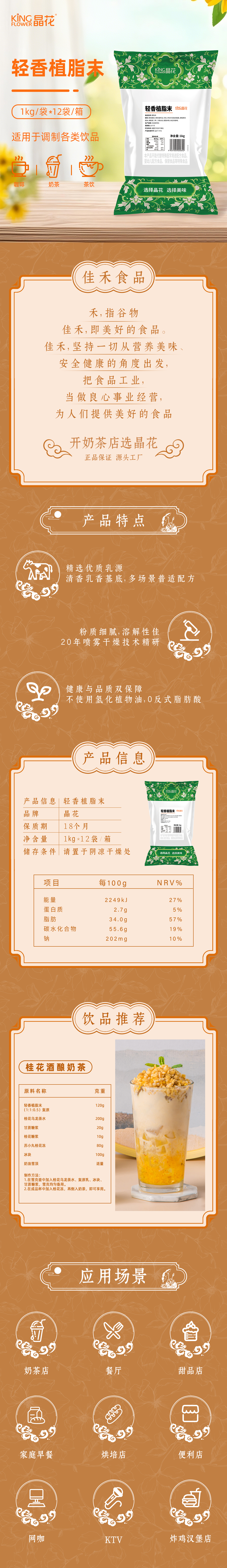 【晶花】轻香植脂末1kg/袋*12袋/箱(品牌直发)