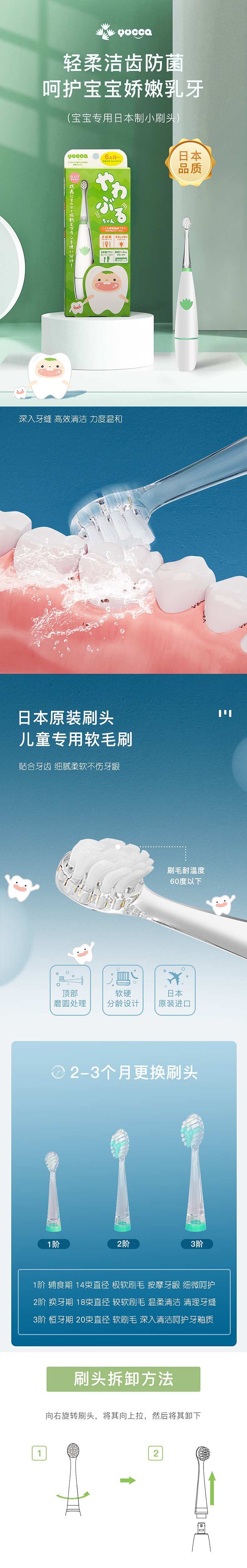 Yucca二阶电动牙刷刷头2支/板(适合1-4岁幼童)