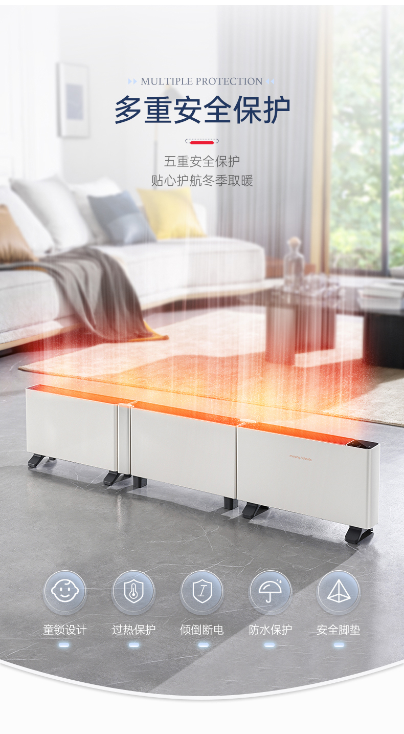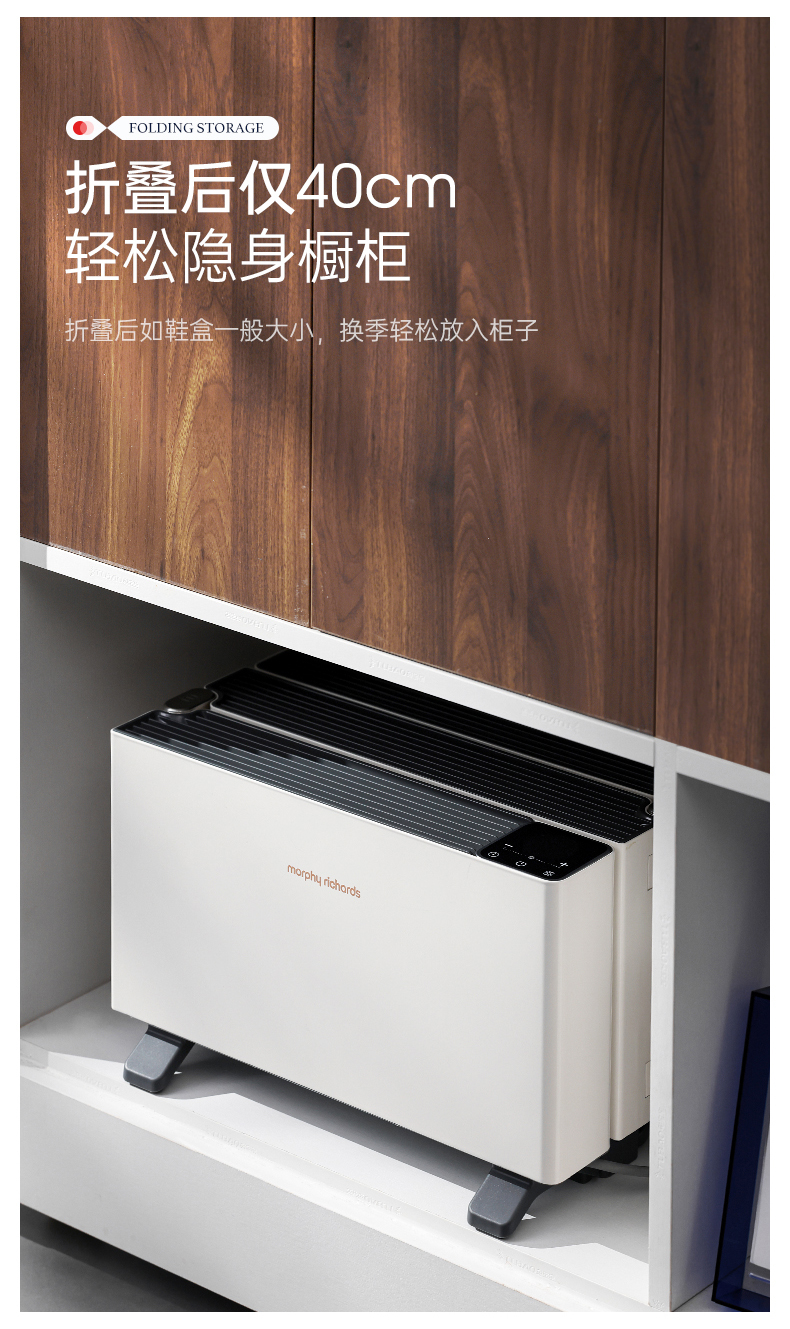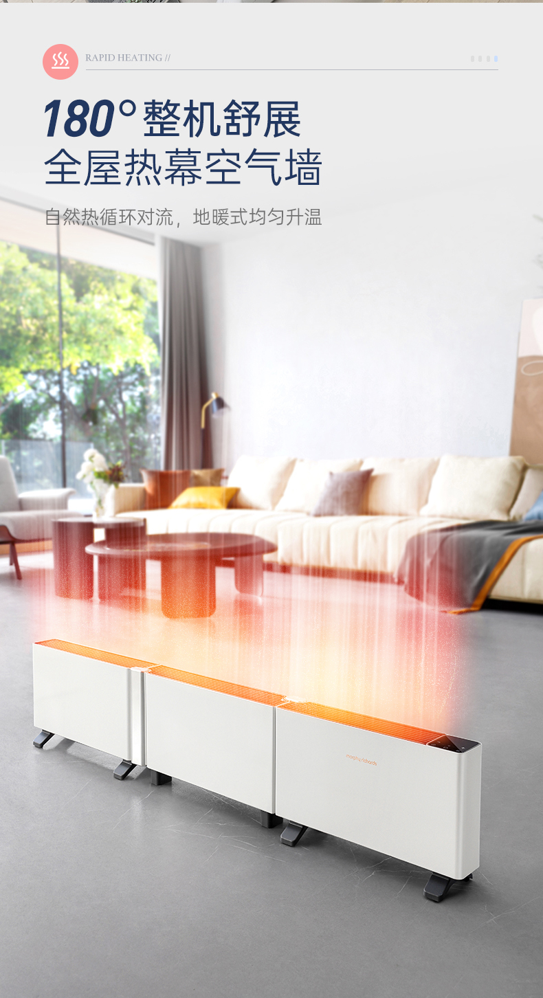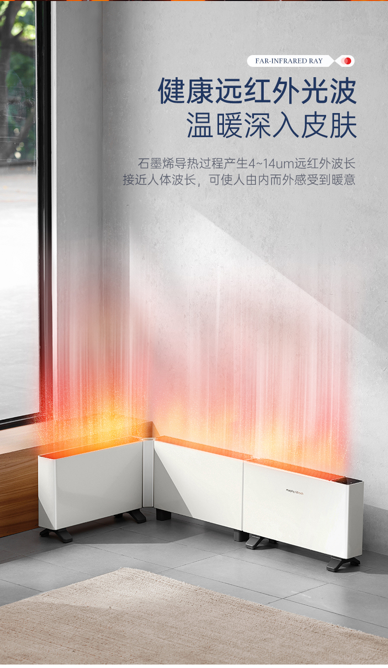 摩飞折叠踢脚线取暖器MR2028 家用石墨烯速热电暖器 智能变频易收纳超薄电暖气
