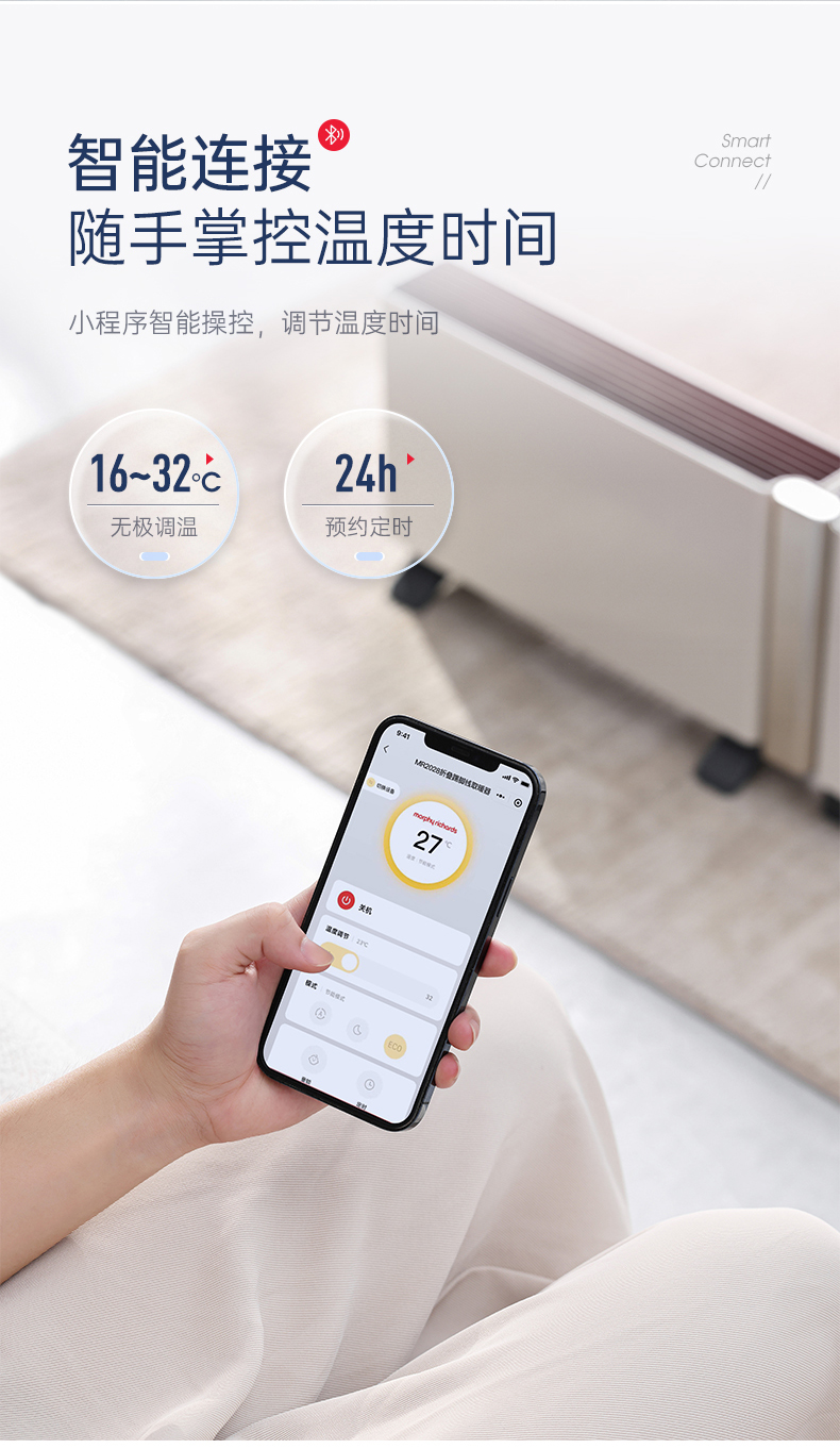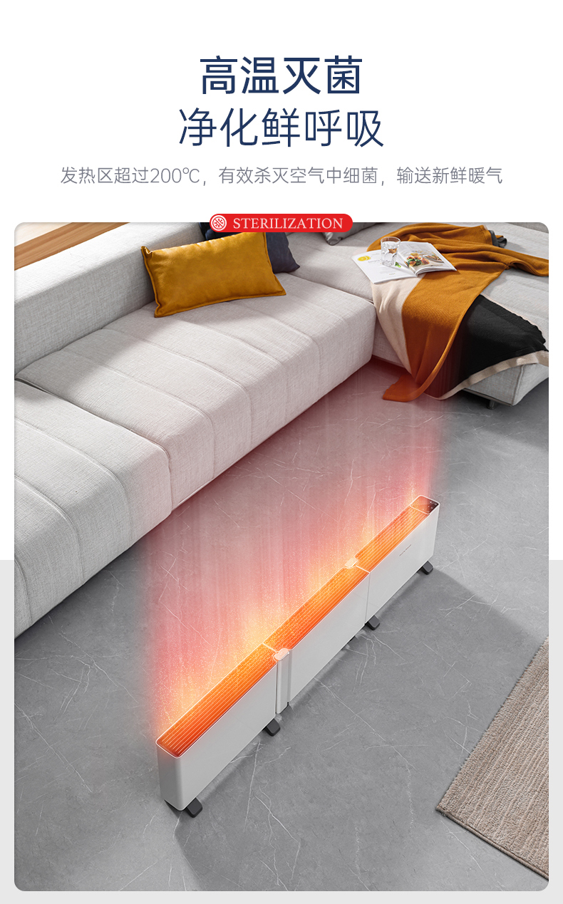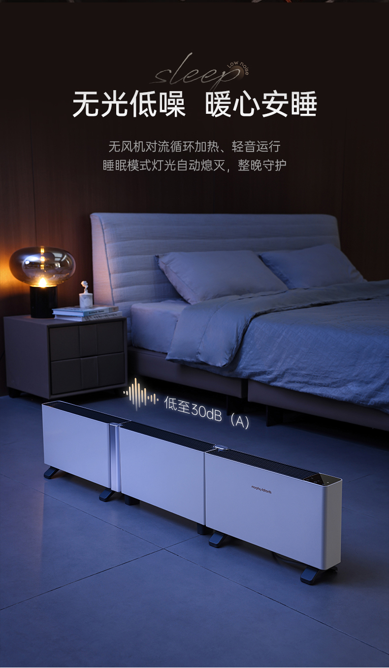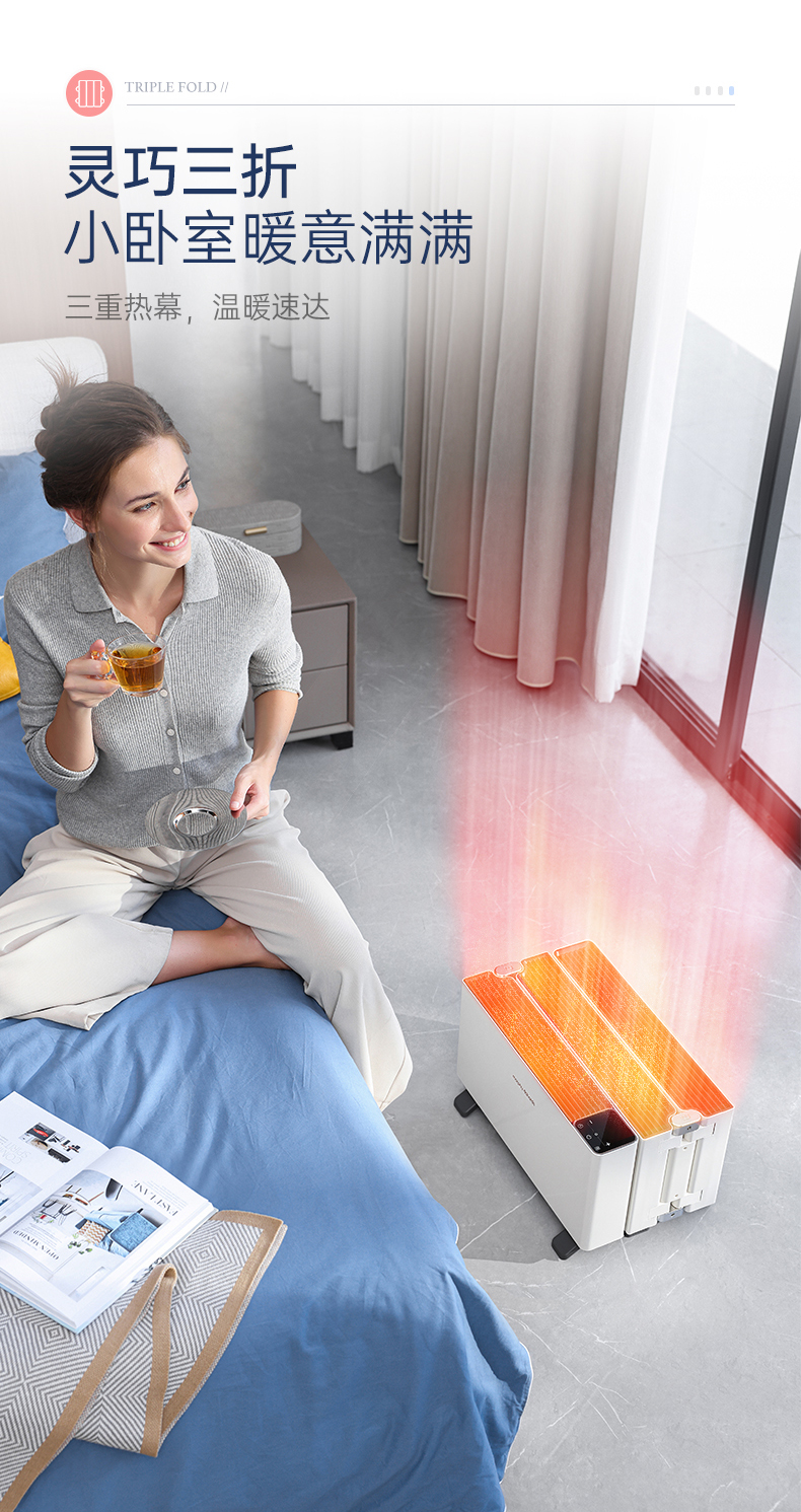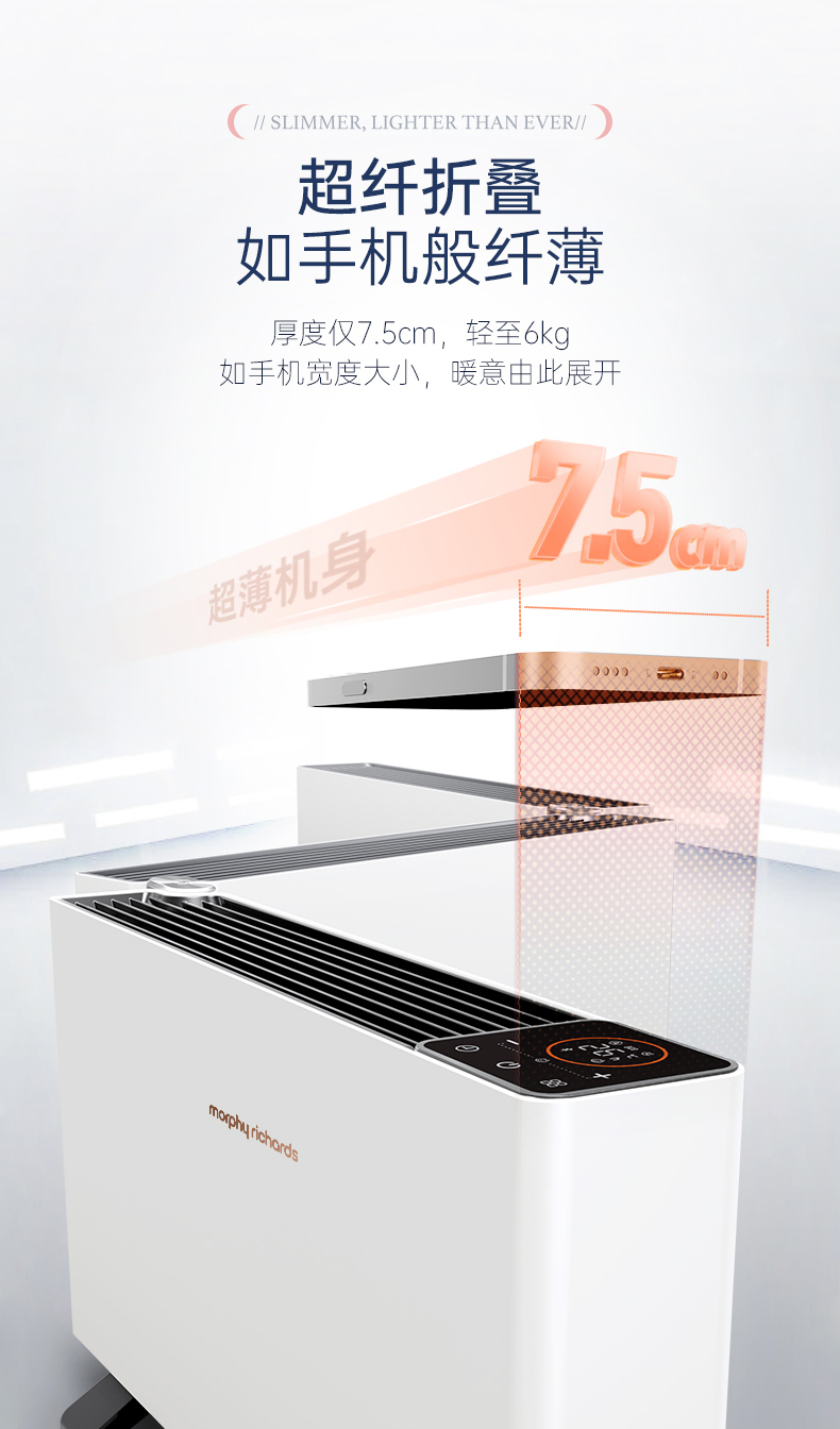 摩飞折叠踢脚线取暖器MR2028 家用石墨烯速热电暖器 智能变频易收纳超薄电暖气