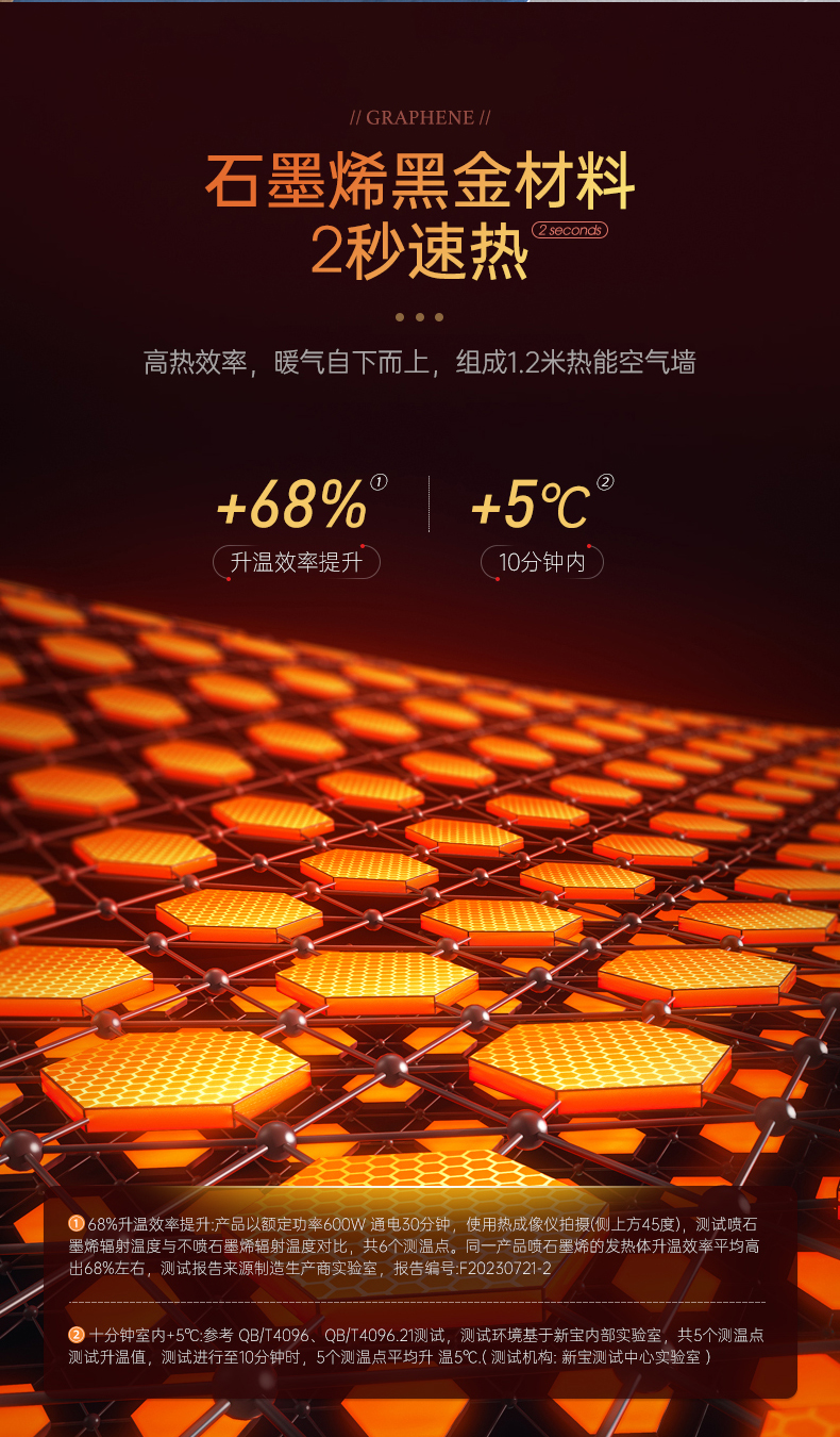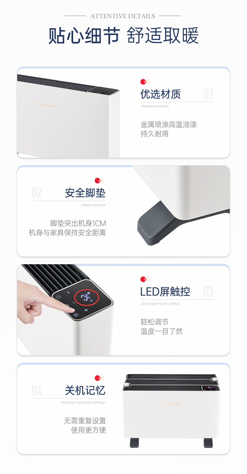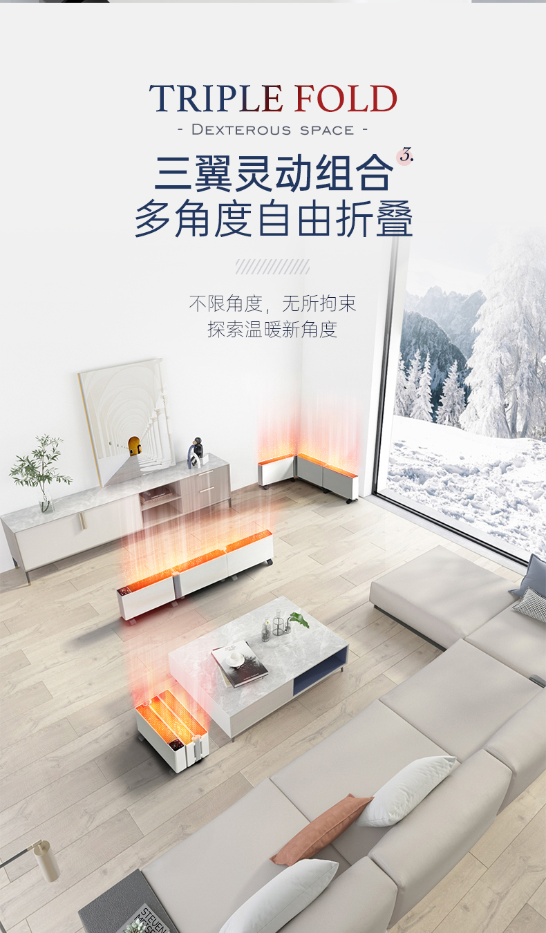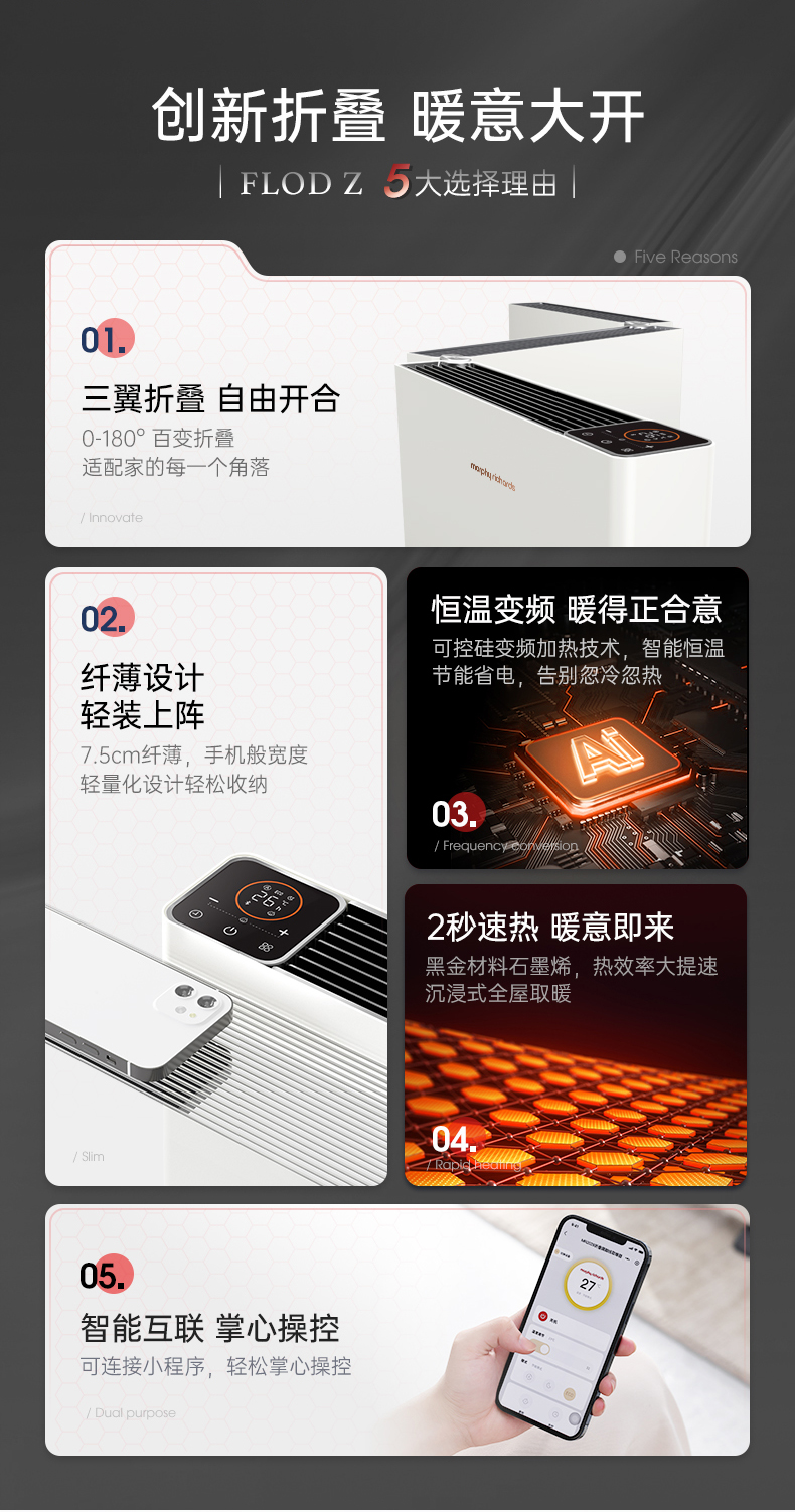 摩飞折叠踢脚线取暖器MR2028 家用石墨烯速热电暖器 智能变频易收纳超薄电暖气