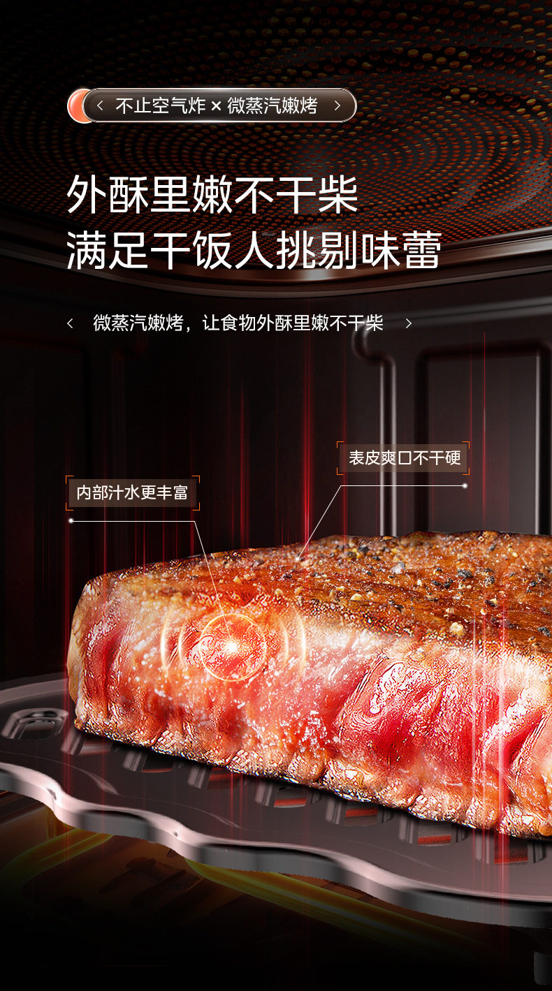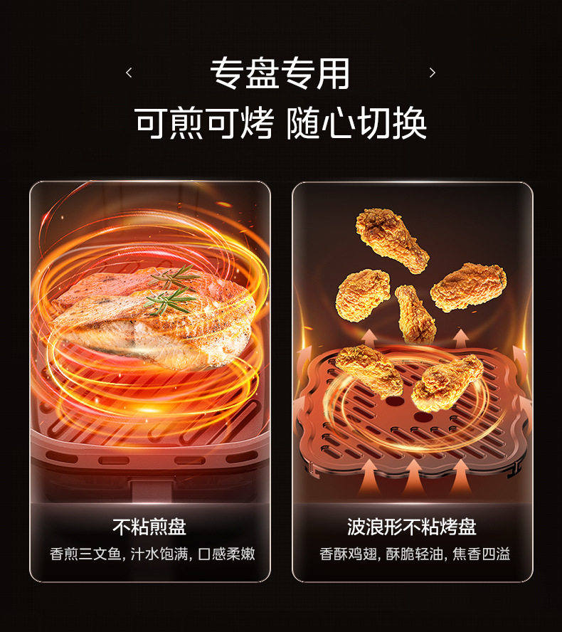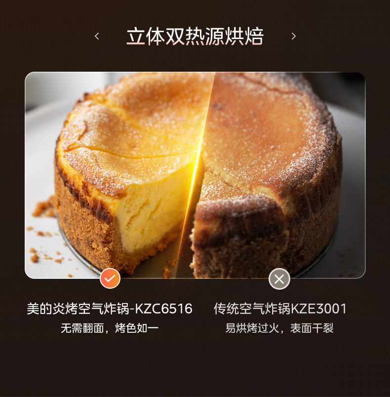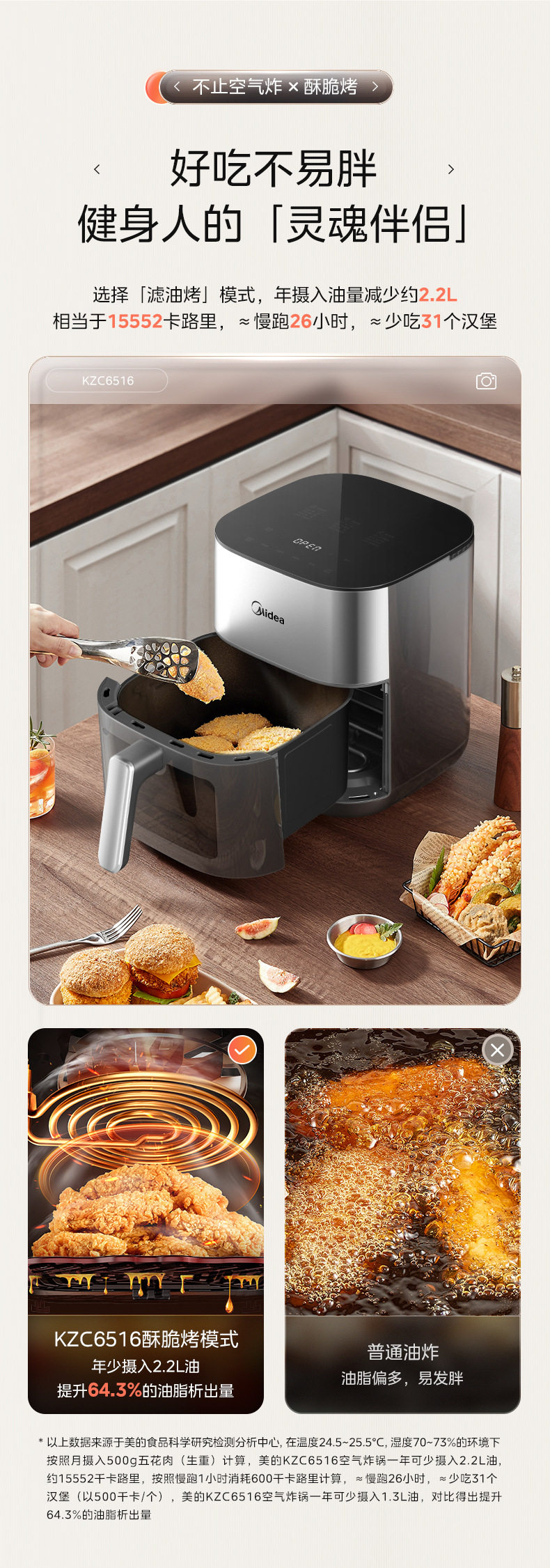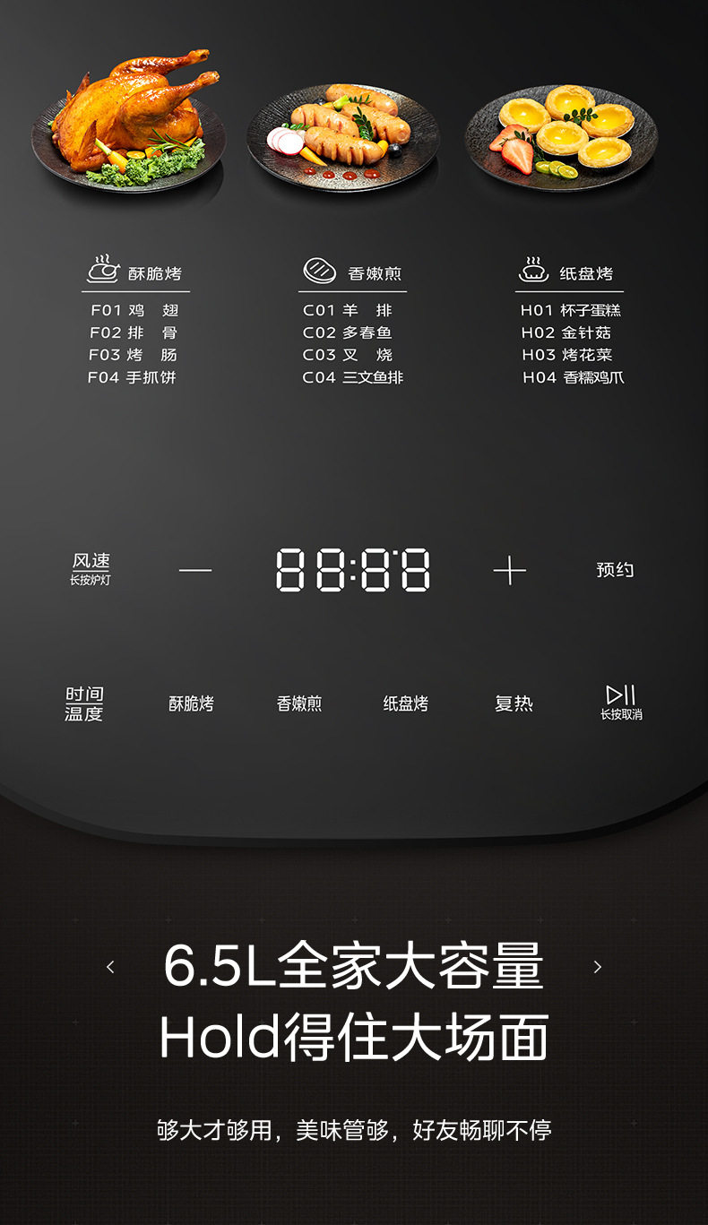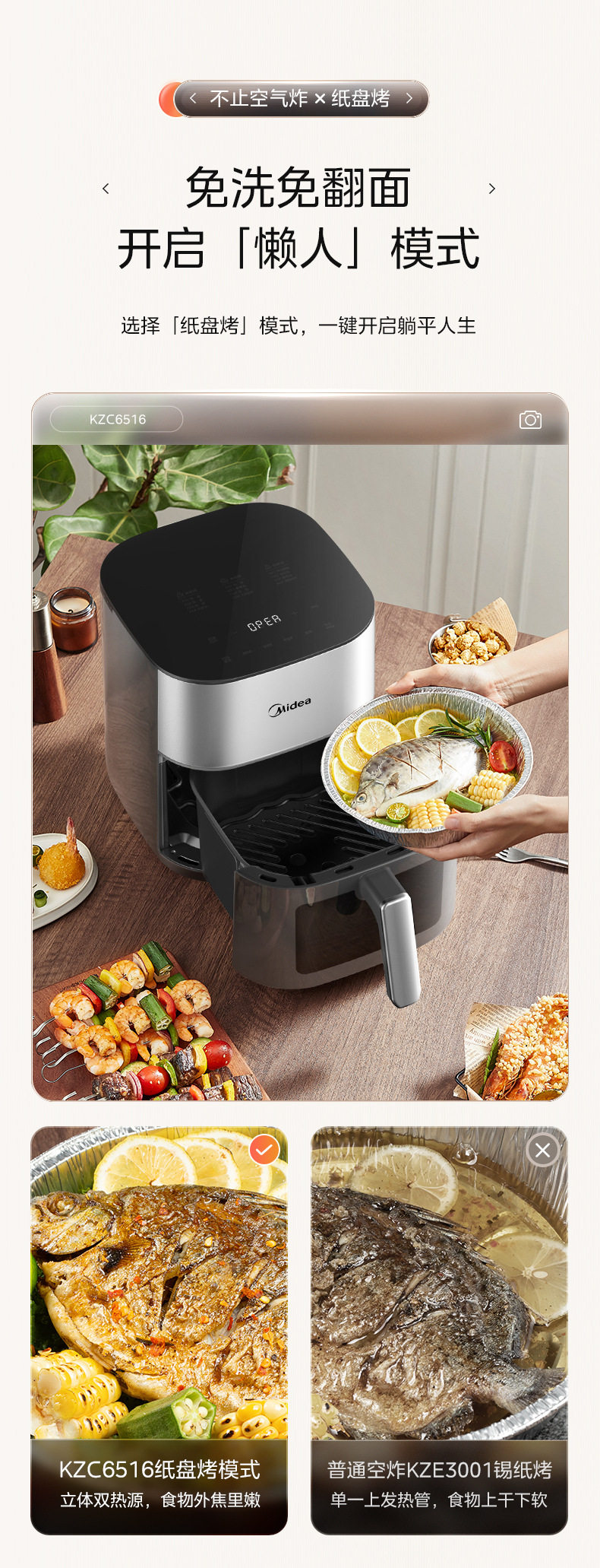 美的空气炸锅6.5L家用可视免翻面蒸汽多功能智能电炸锅MF-KZC6516
