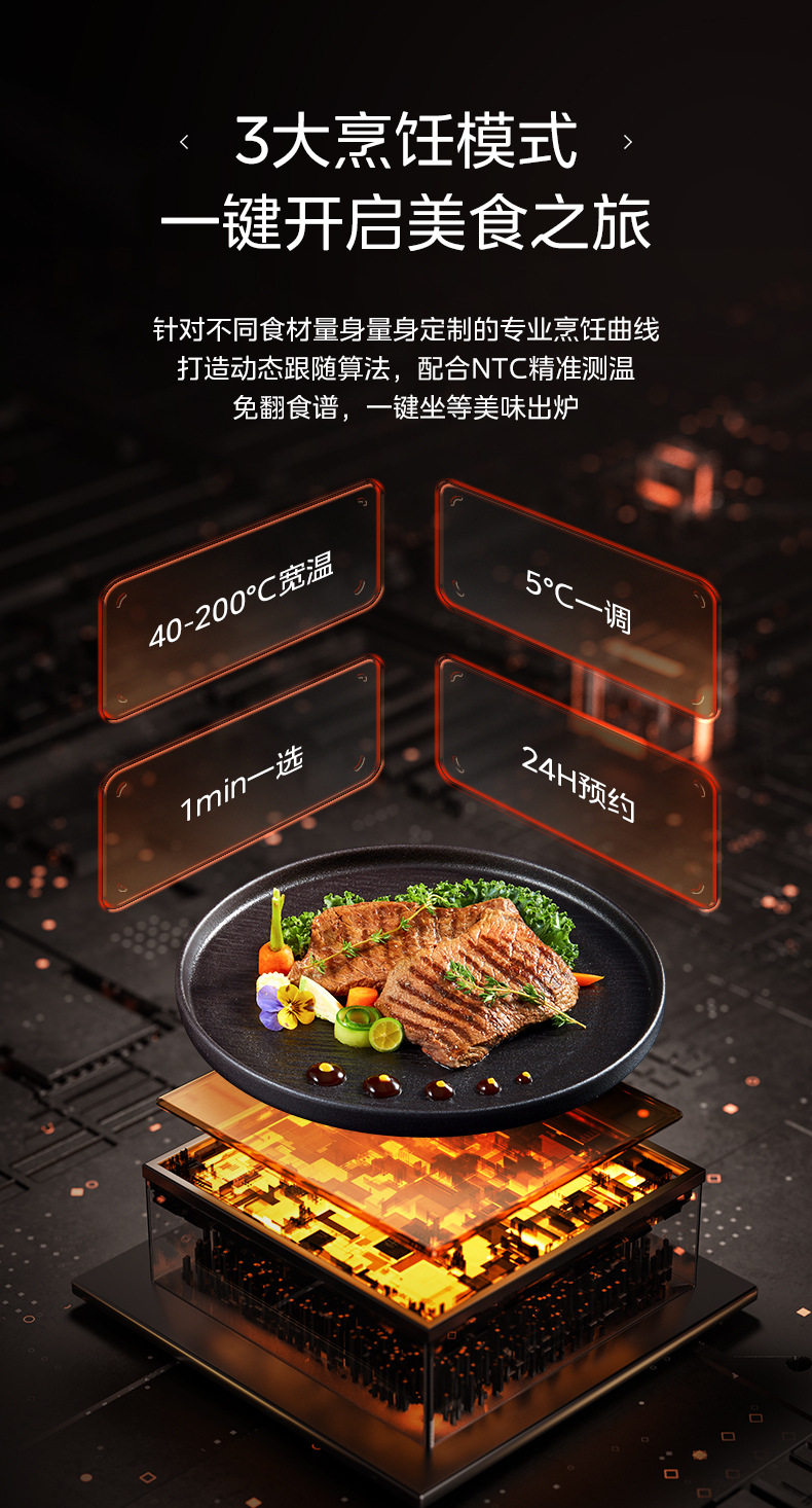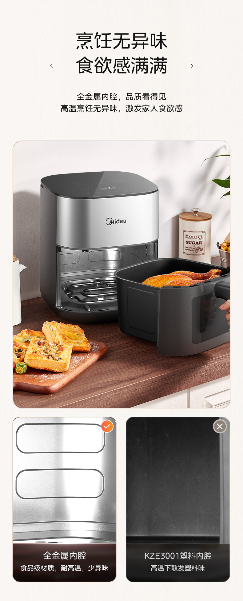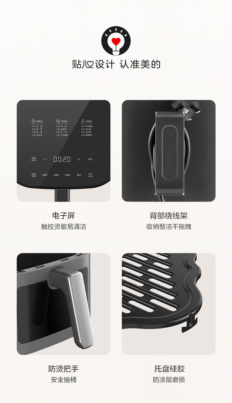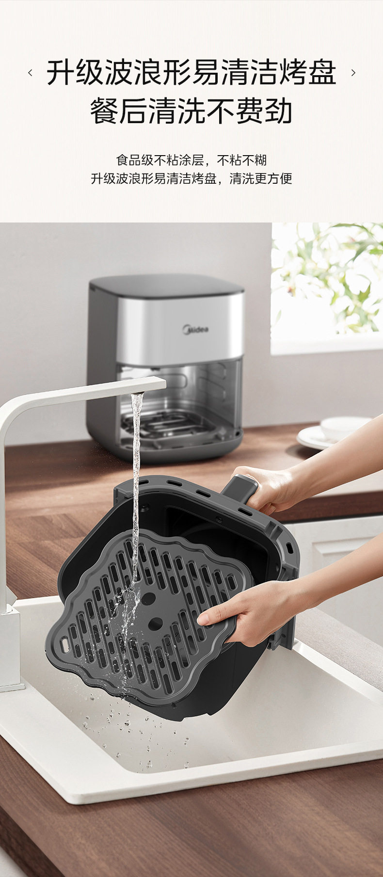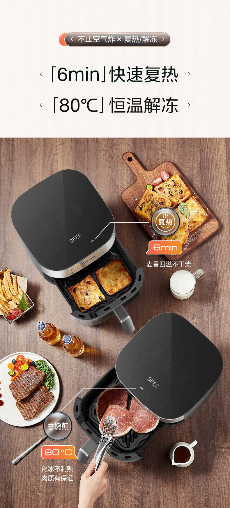 美的空气炸锅6.5L家用可视免翻面蒸汽多功能智能电炸锅MF-KZC6516