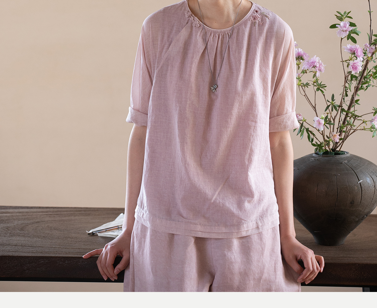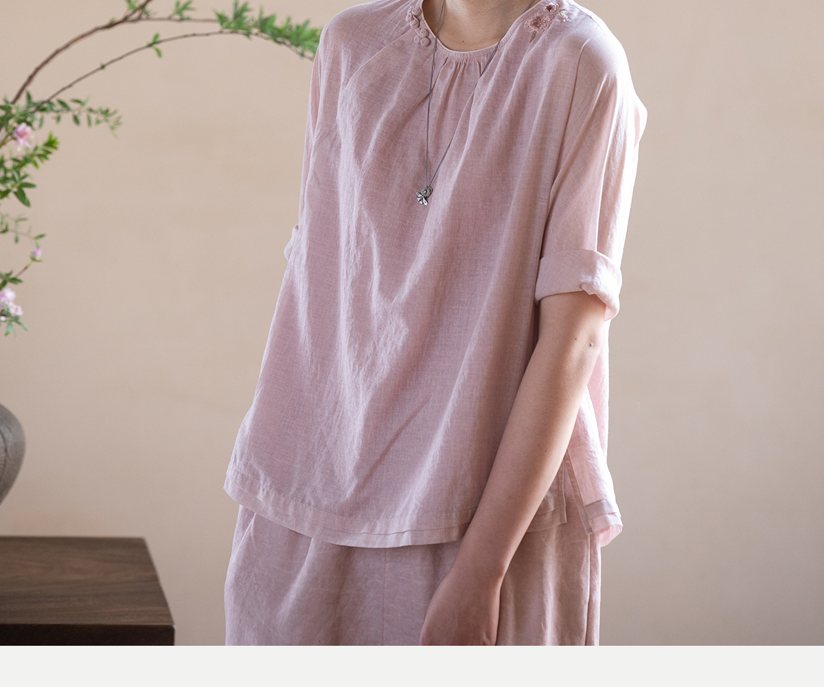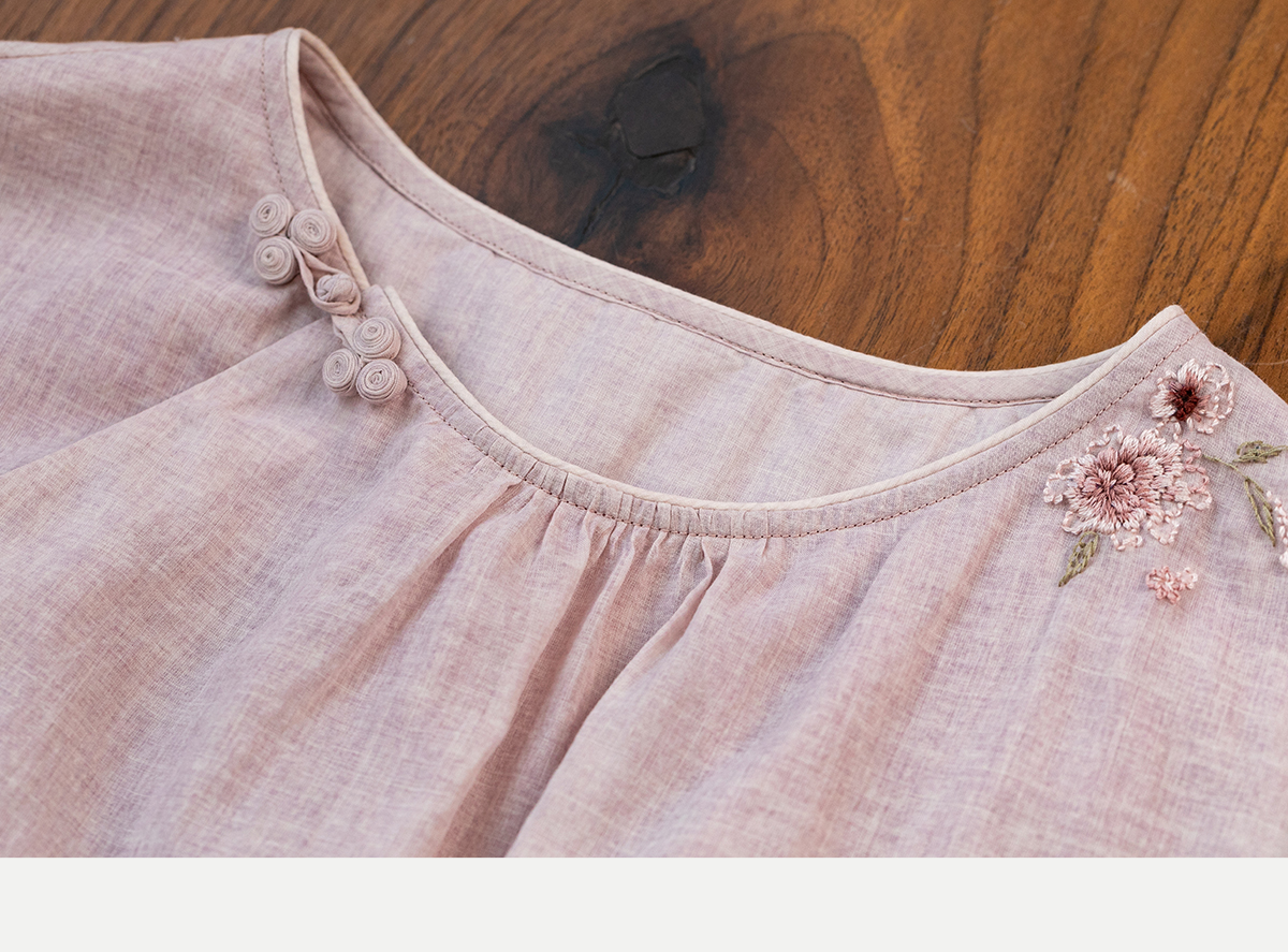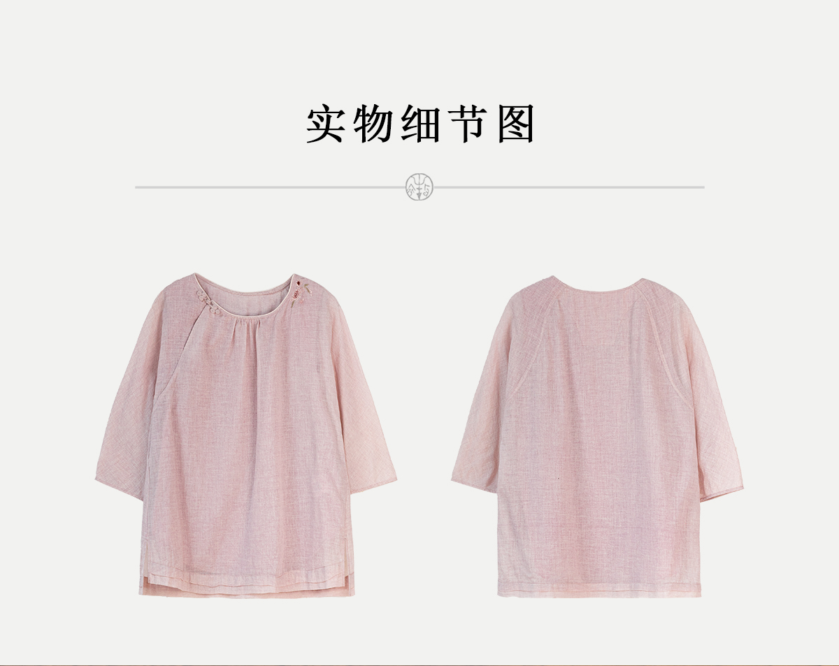 牧衣游原创100支精细新疆棉手工刺绣炒色套头衫轻薄复古上衣 梅酿