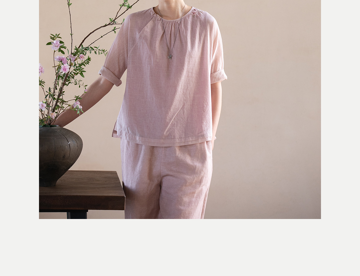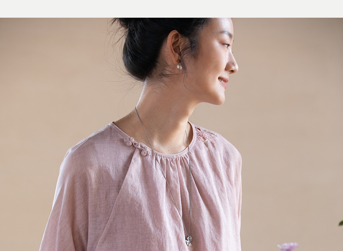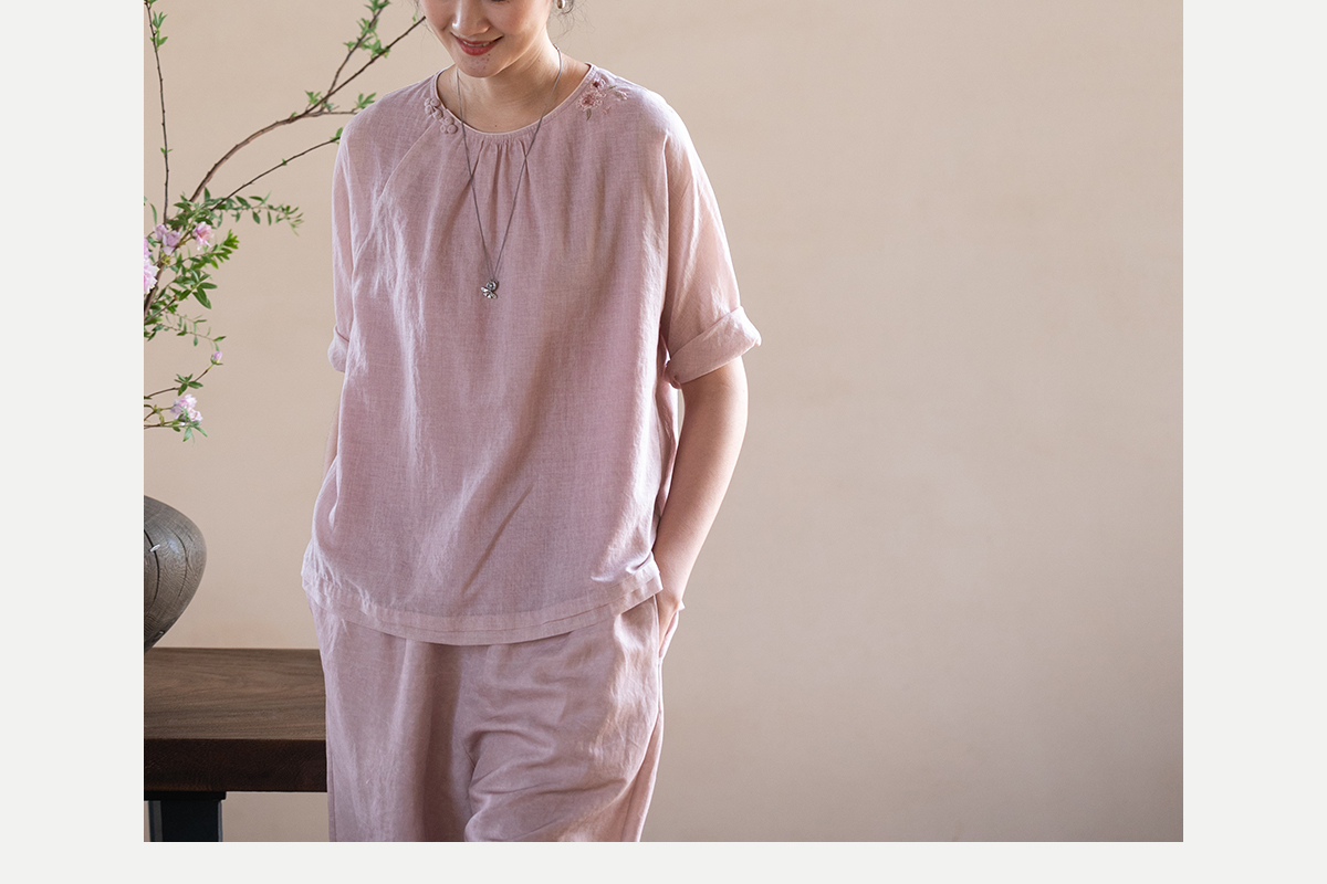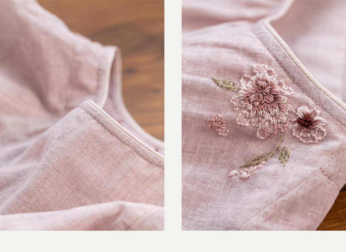 牧衣游原创100支精细新疆棉手工刺绣炒色套头衫轻薄复古上衣 梅酿