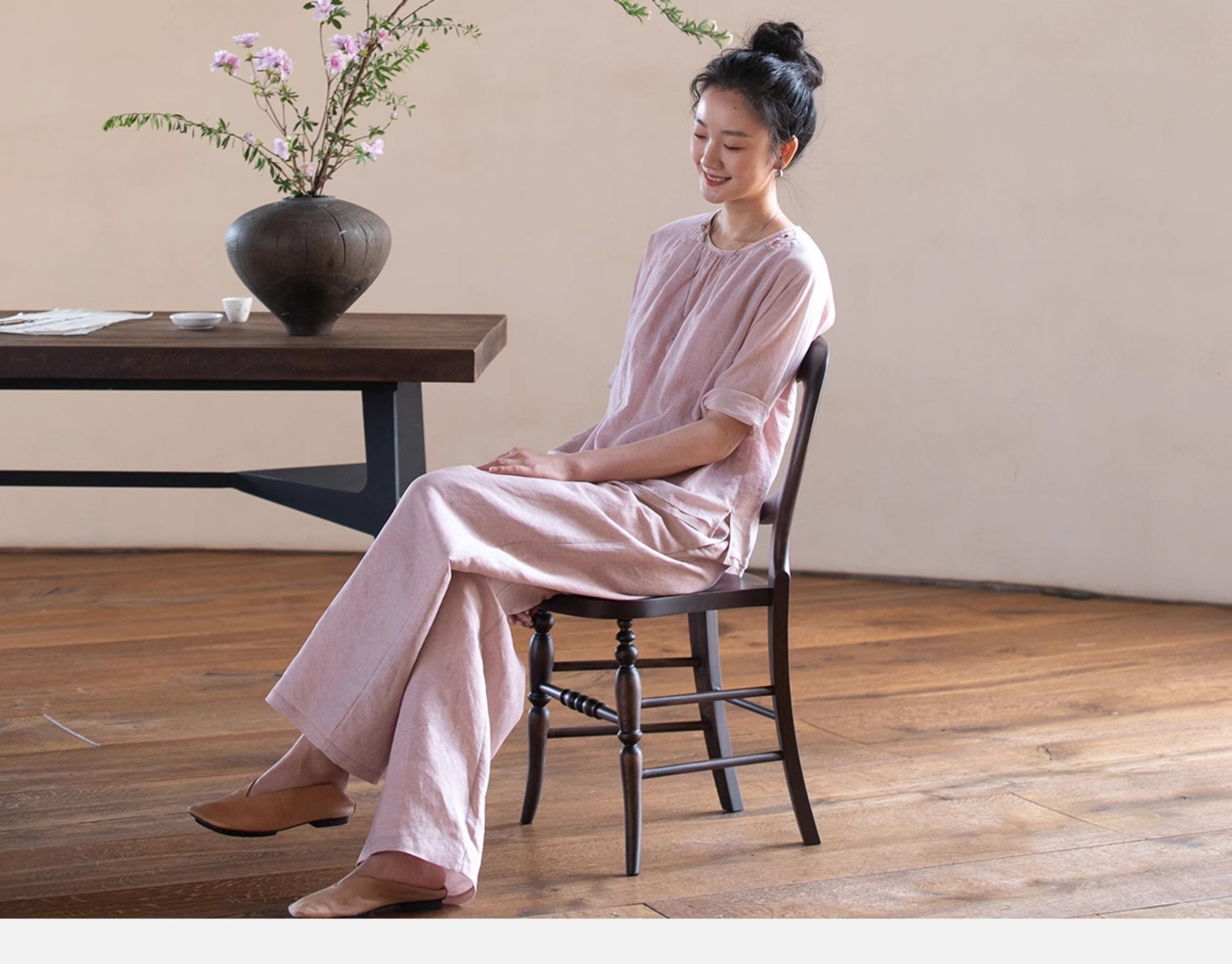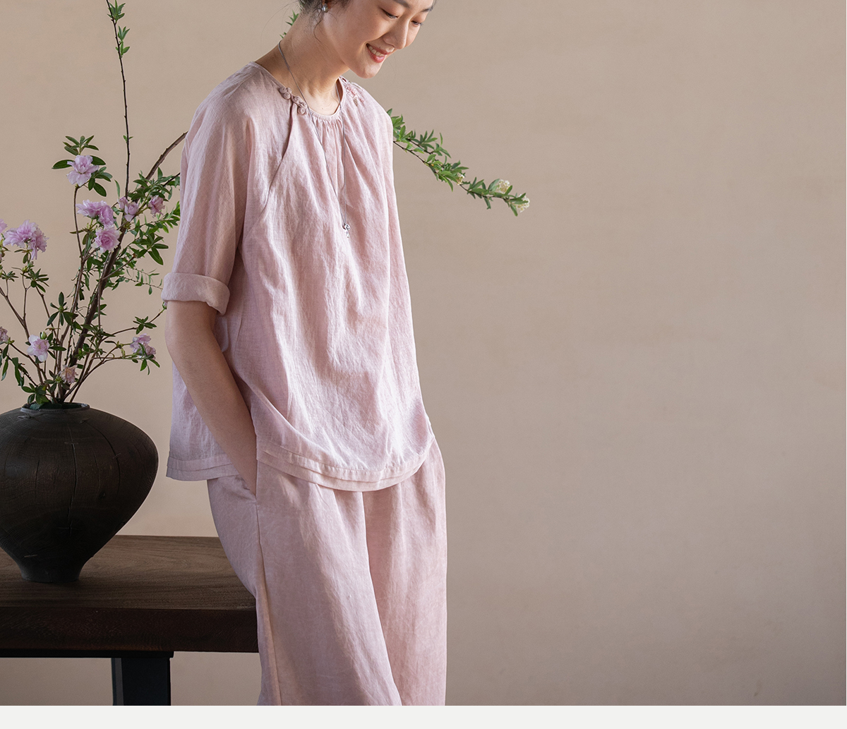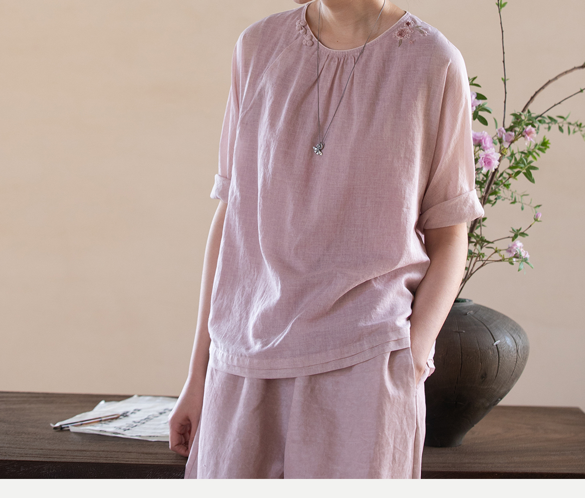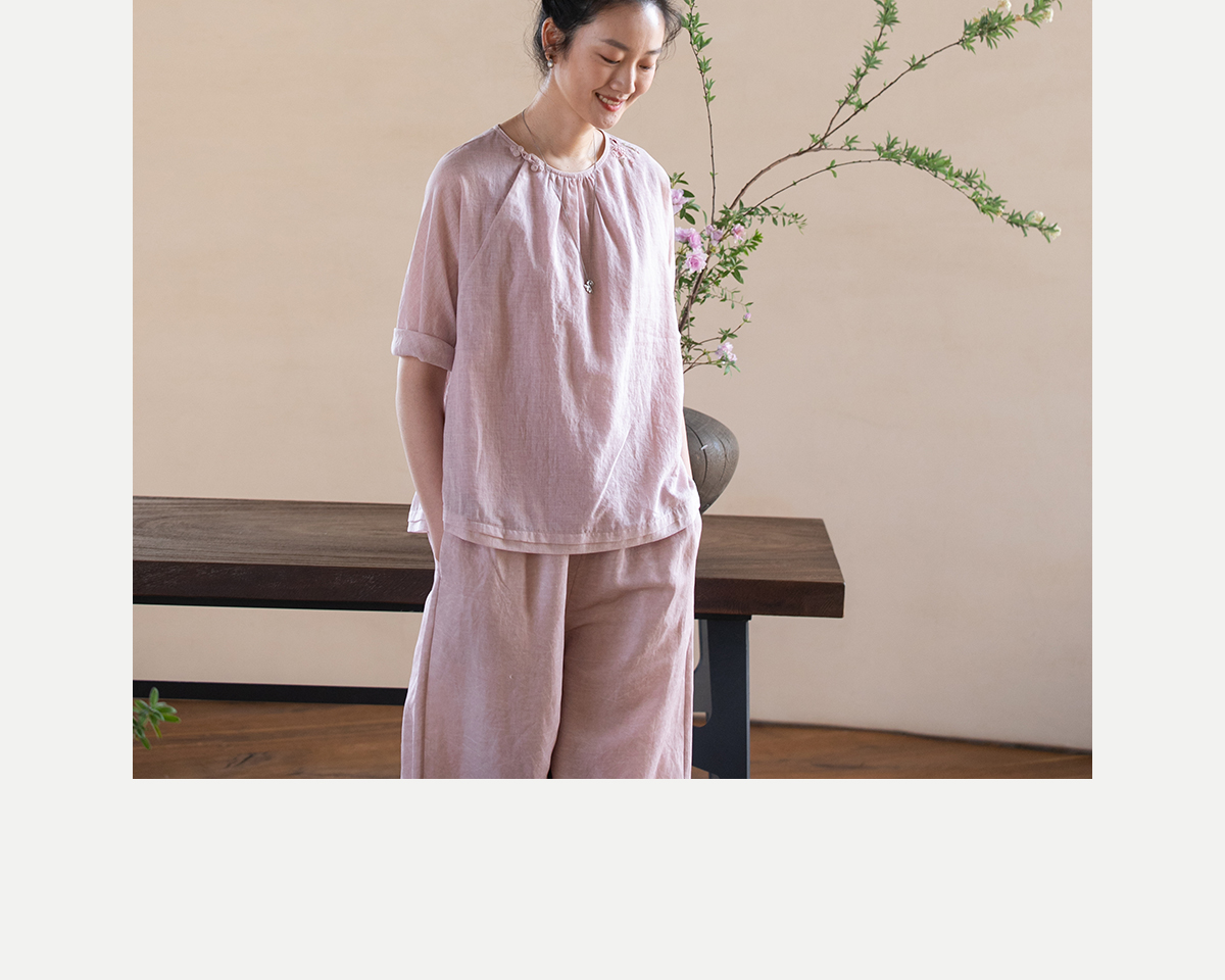 牧衣游原创100支精细新疆棉手工刺绣炒色套头衫轻薄复古上衣 梅酿