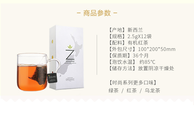 ZEALONG杰境 时尚系列原叶有机袋泡茶 红茶 2.5g*12袋/盒 内部独立包装新老交替 随机发货