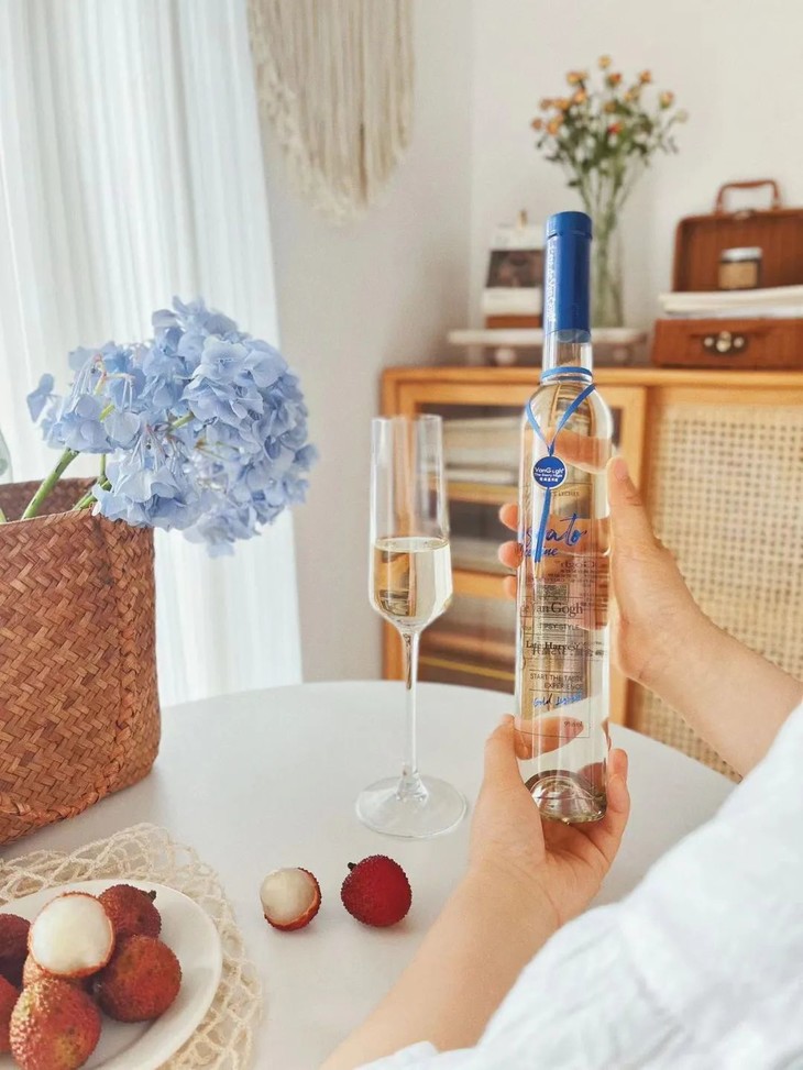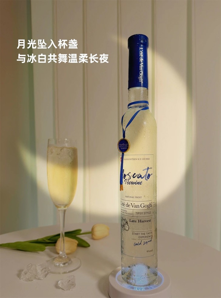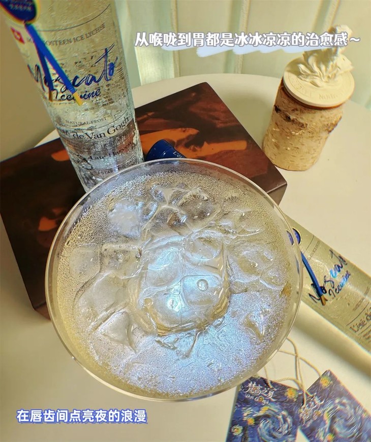 这瓶梵高之夏,不光是莫斯卡托超低度真冰酒,还加上了少女感满满的荔枝和山竹风味,连不懂酒的人,第一口都说: