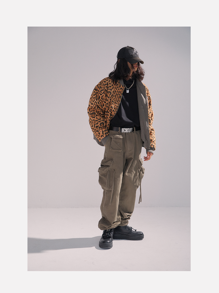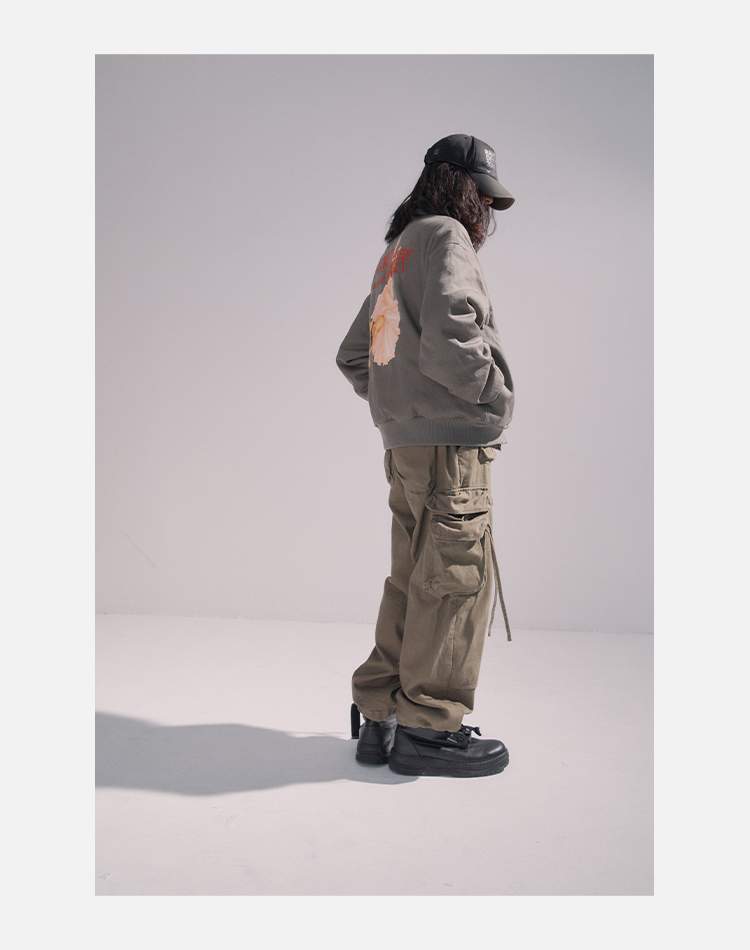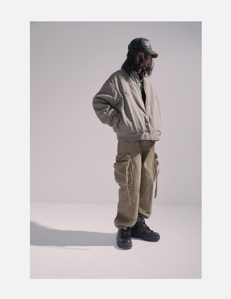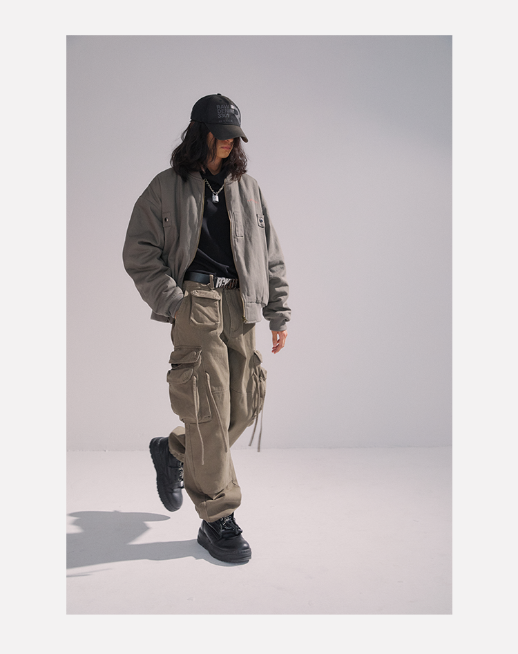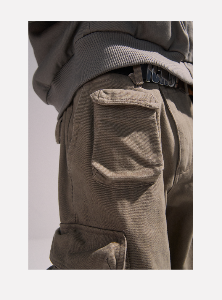 POH 古着感水洗重工直筒休闲裤男束脚长裤做旧朋克宽松多口袋军裤