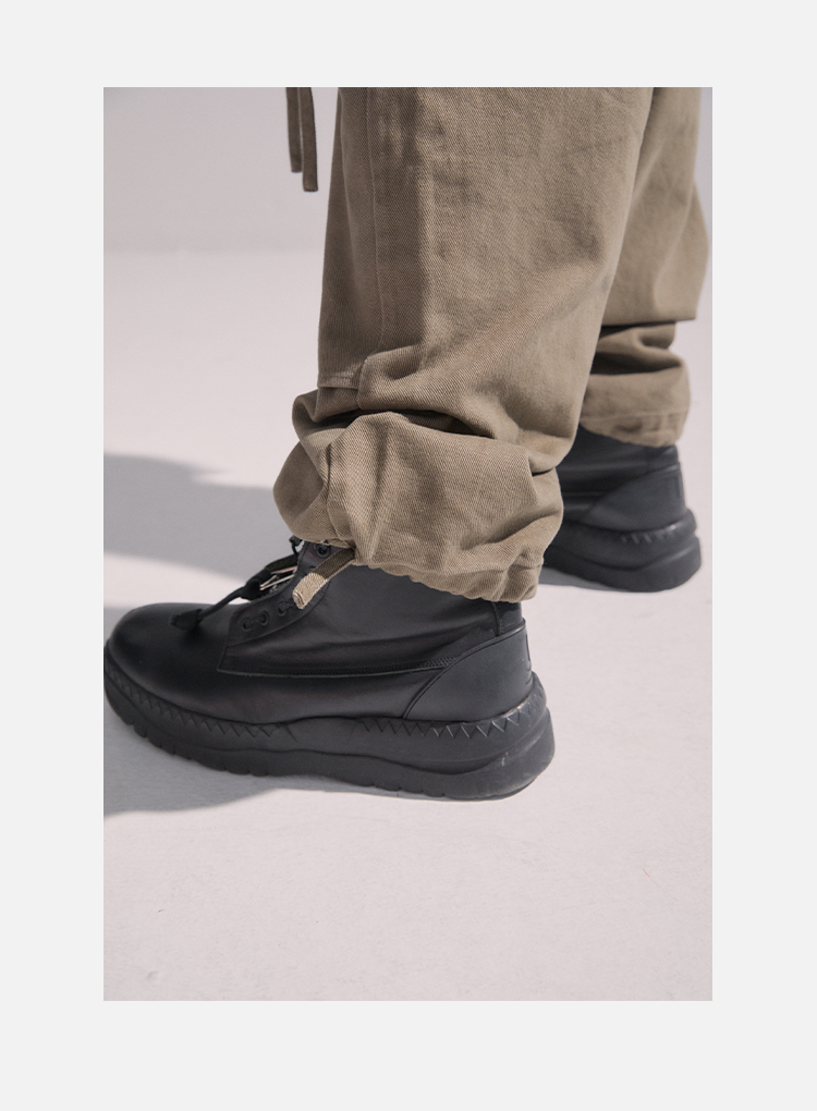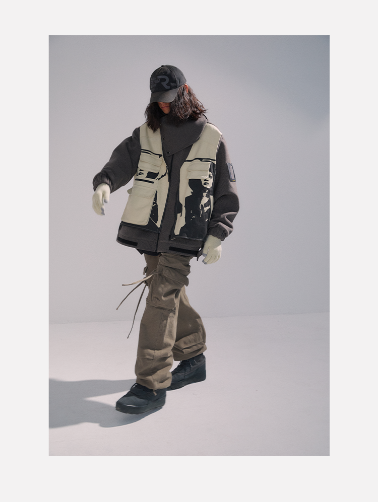 RELABEL 21AW异材质梭织拼接黑灰撞色oversize宽松卫衣外套