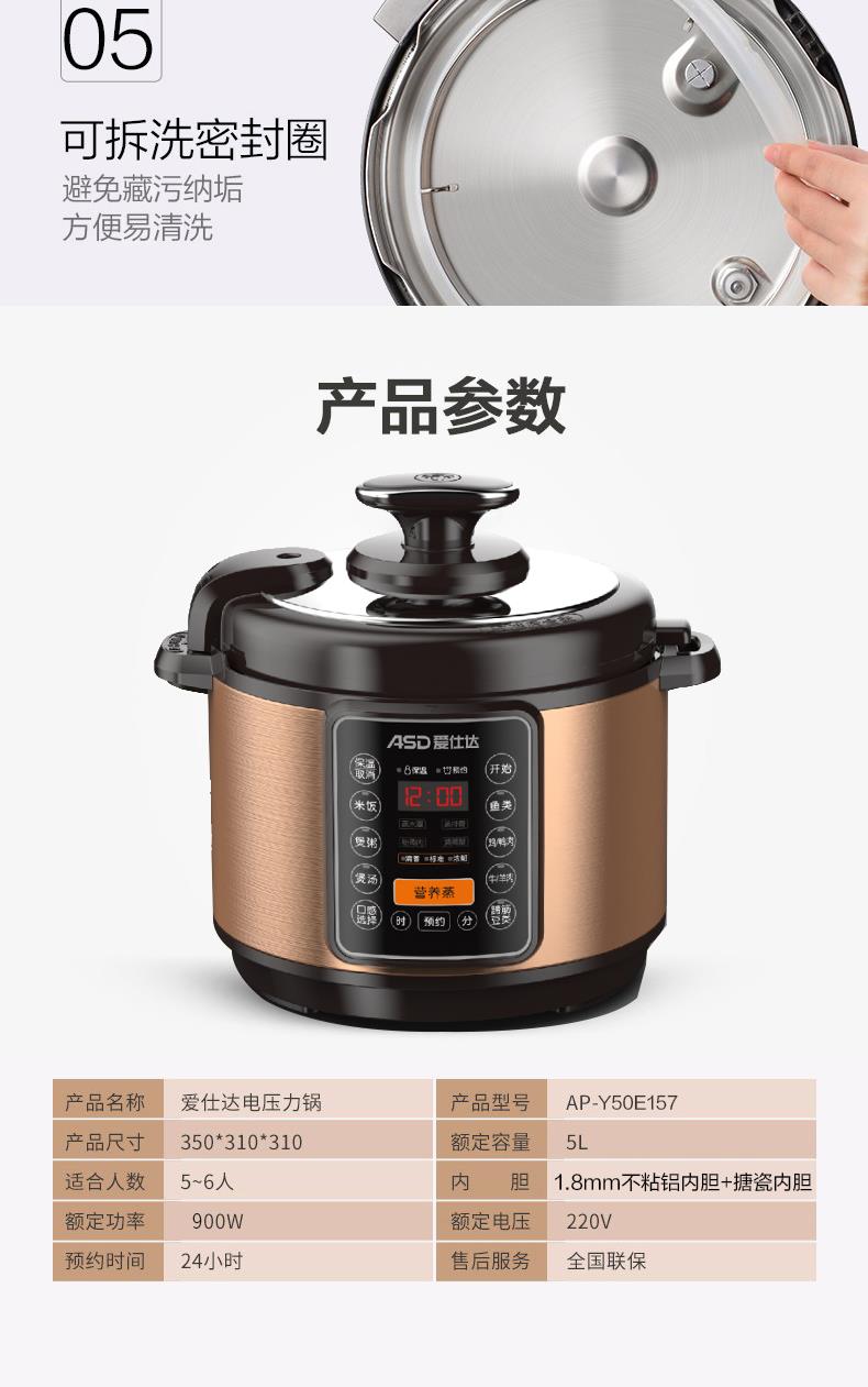 【自营】 爱仕达 快煮系列电压力锅 双内胆 5L