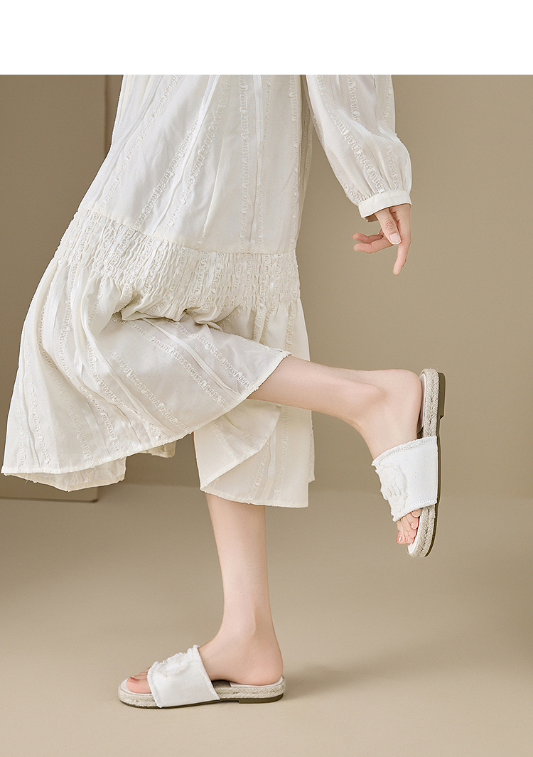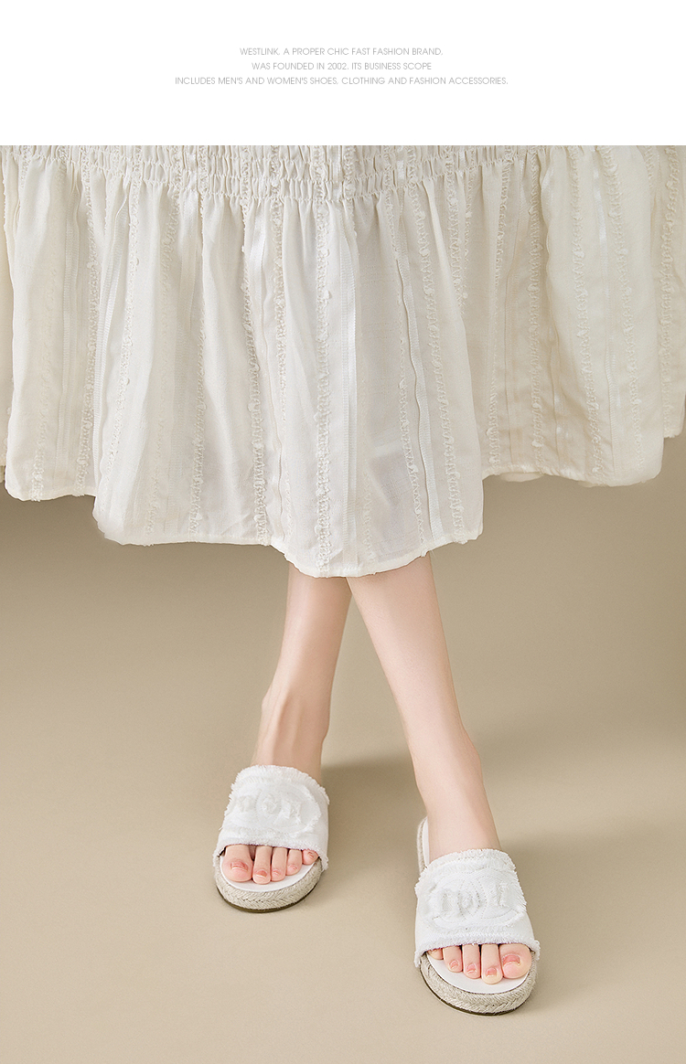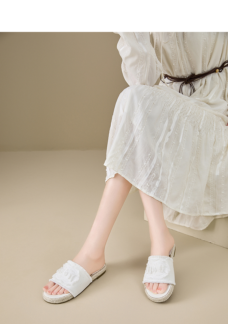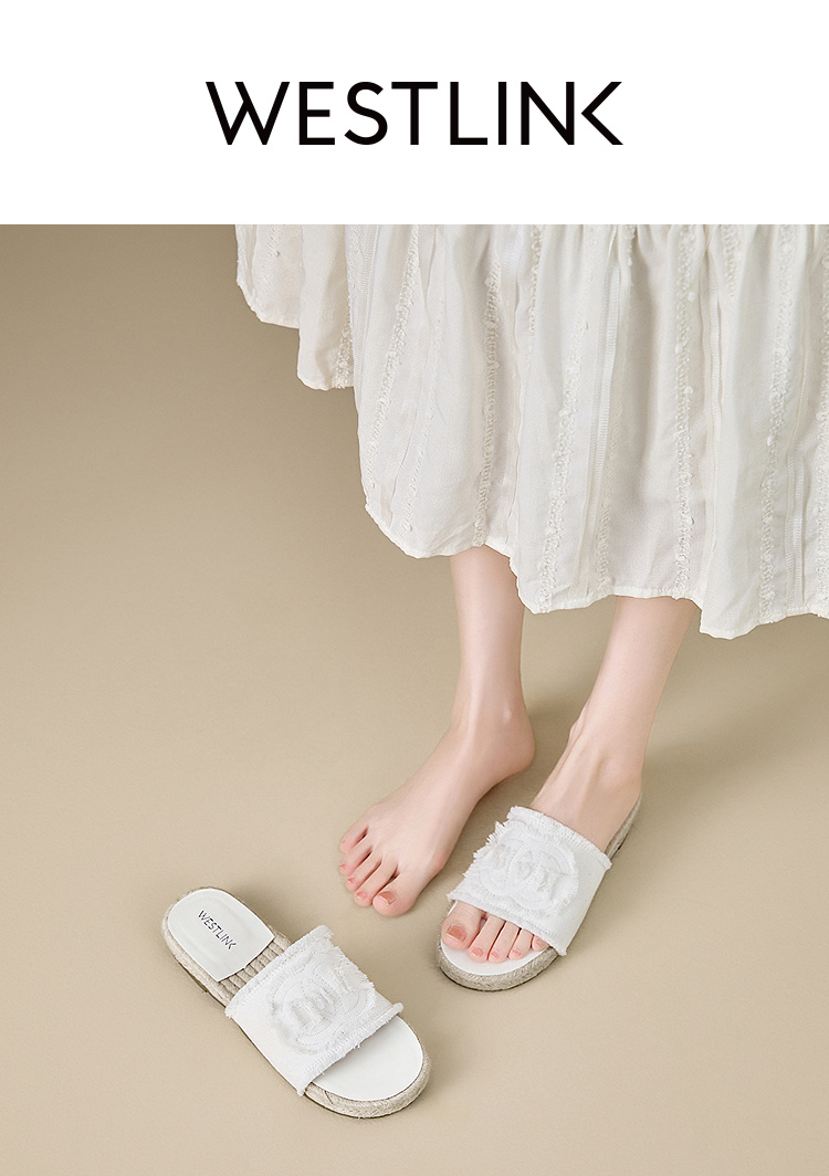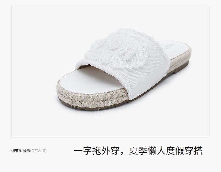 西遇平底凉拖女夏季外穿新款凉鞋民族风法式白色草编渔夫拖鞋V0056886