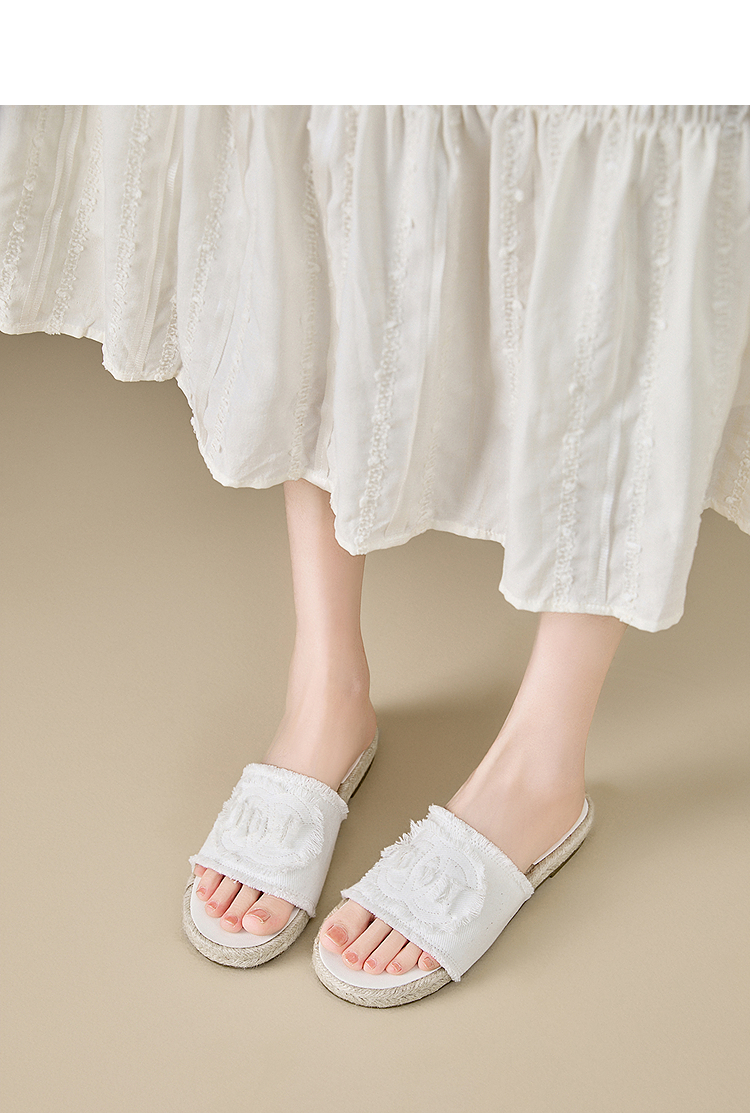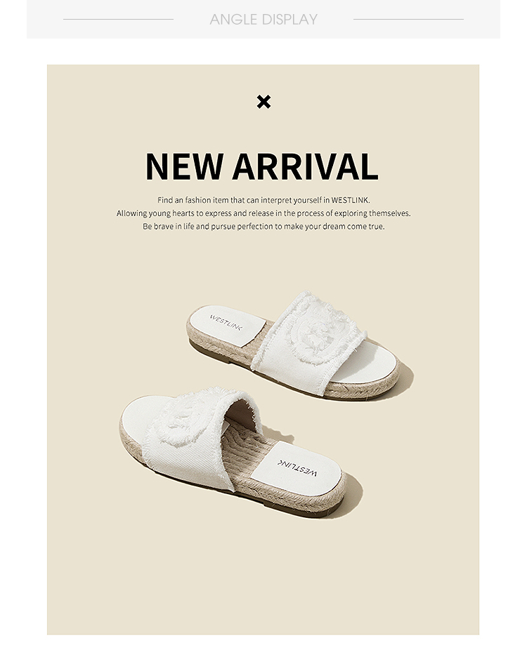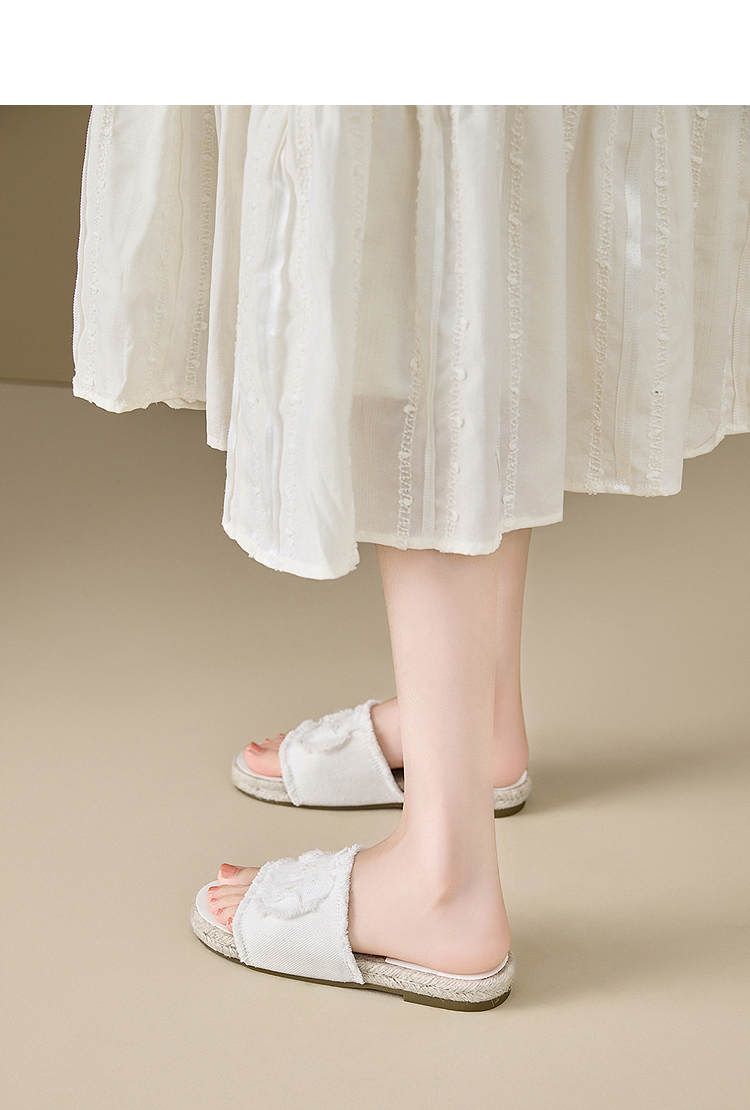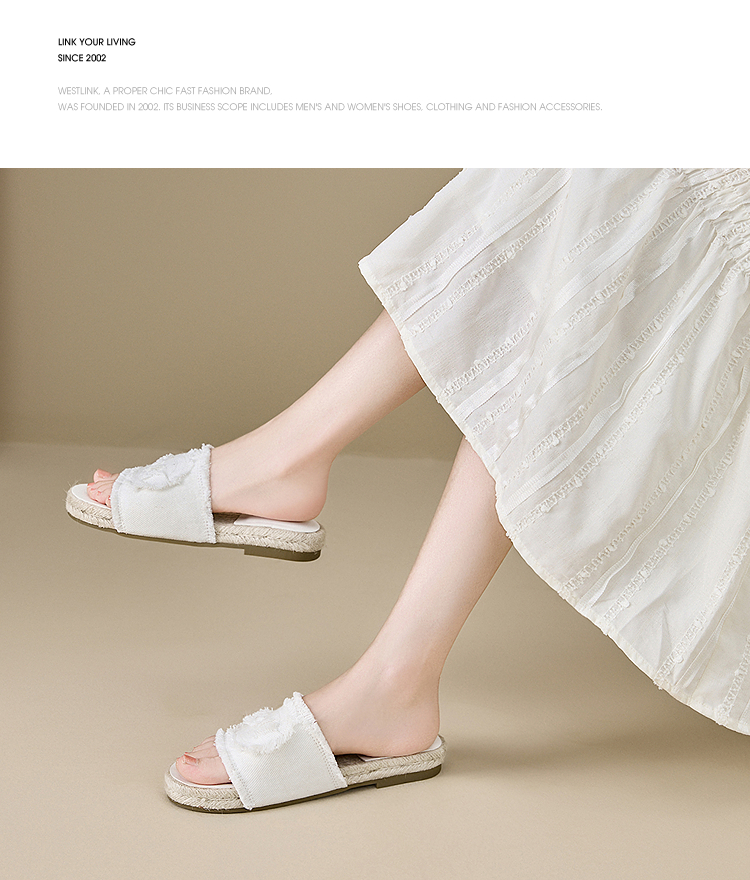 西遇平底凉拖女夏季外穿新款凉鞋民族风法式白色草编渔夫拖鞋V0056886