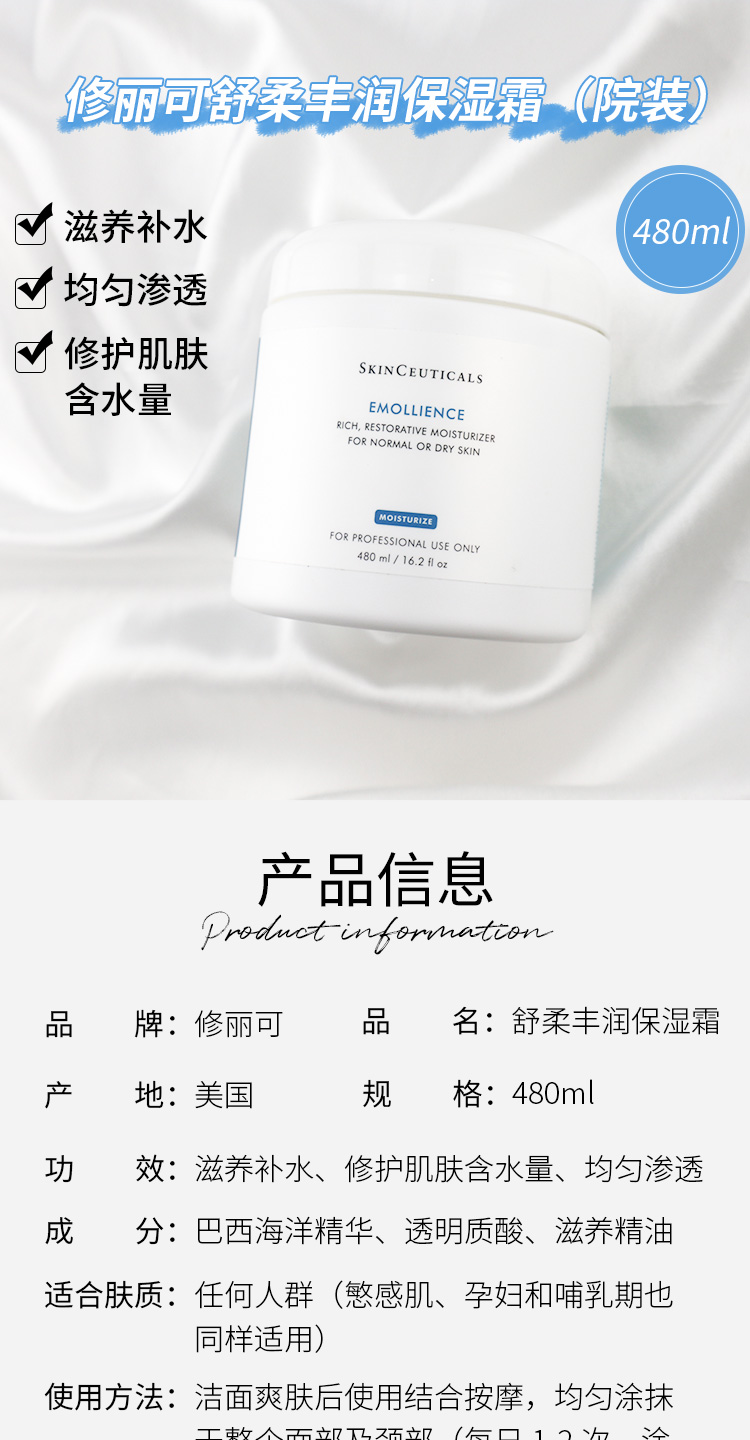 新品 修丽可舒柔丰润保湿露(院装 丰润霜)480ML