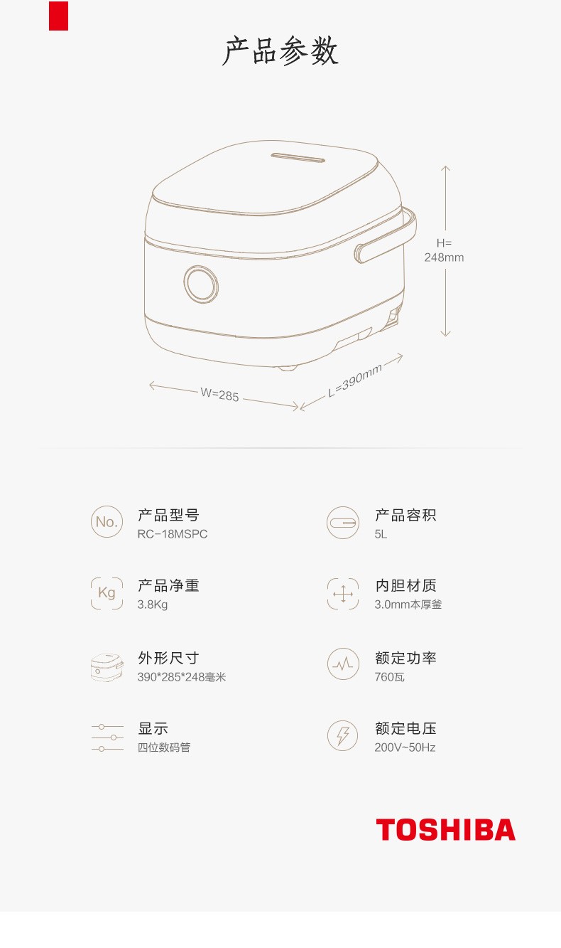 日本东芝RC-18MSPC智能电饭煲 小型迷你电饭锅多功能家用电饭煲日本智能5L