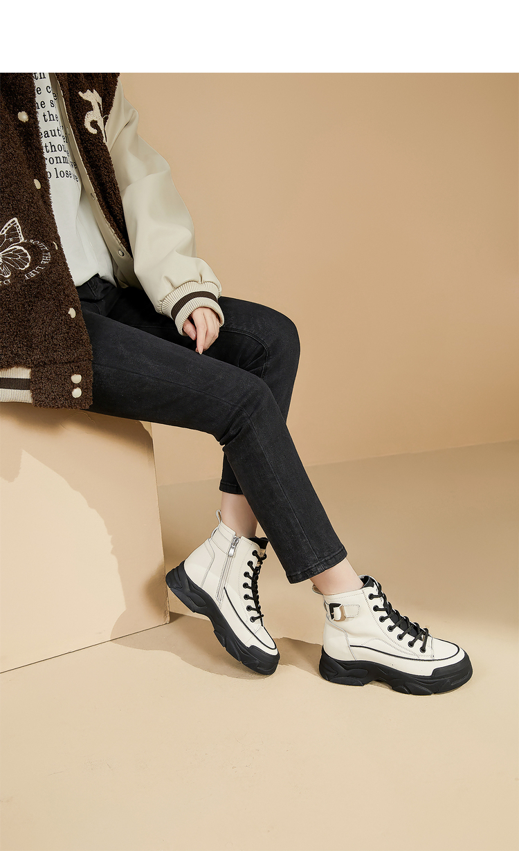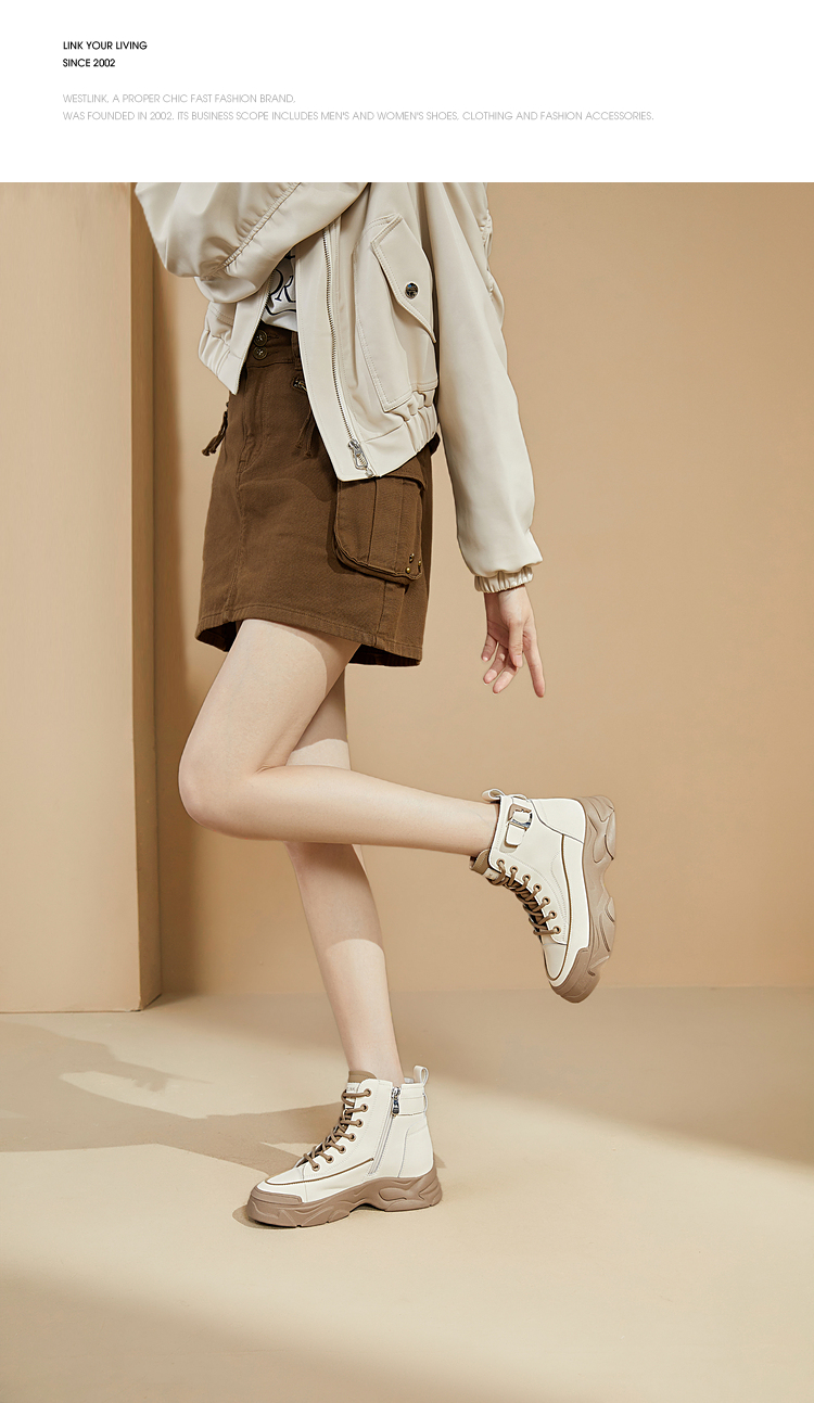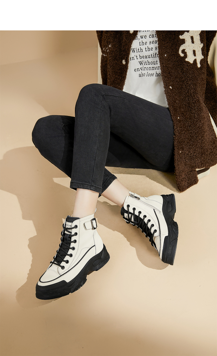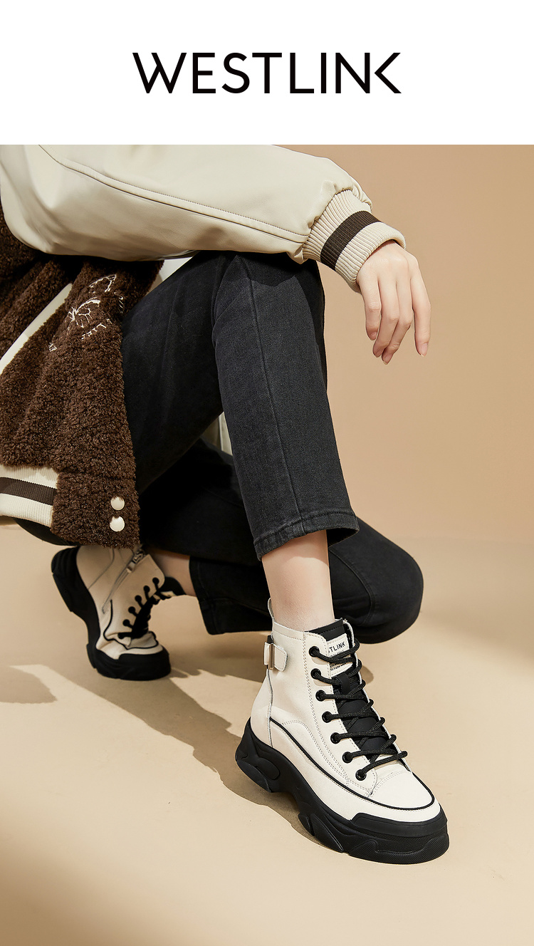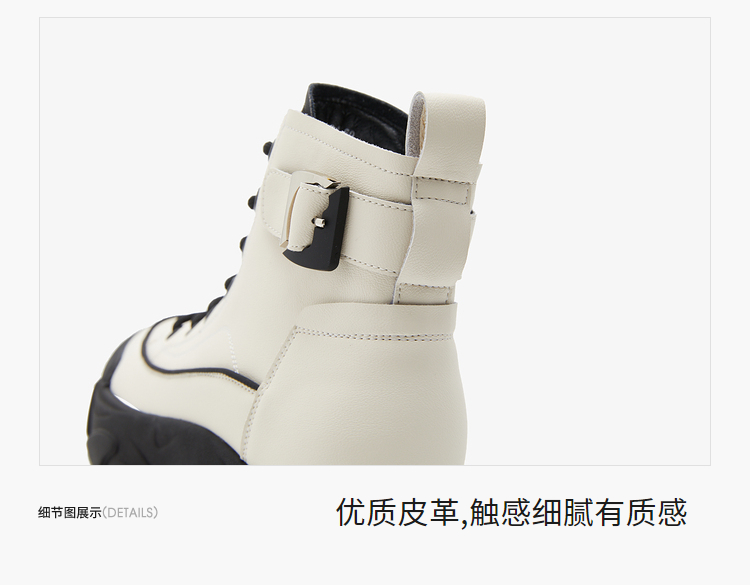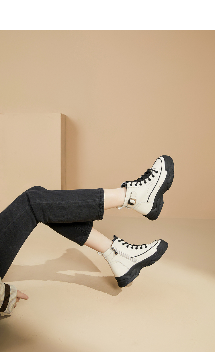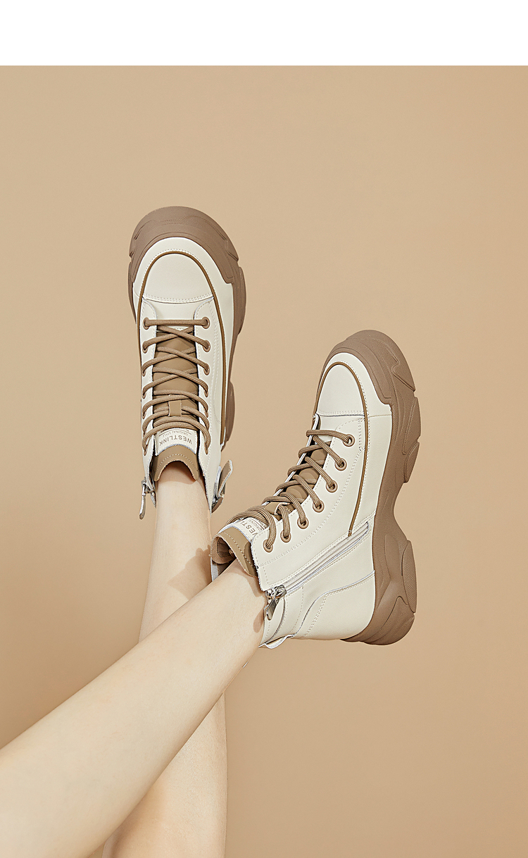 西遇白色马丁靴女新款秋冬休闲运动复古户外工装靴厚底短靴子V0034169